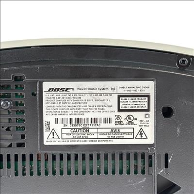 The Bose Wave Music System AWRCC1 is a compact home audio unit with a sleek, slot-loaded CD design and simple remote-controlled operation. It delivers clear, room-filling sound through its AM/FM, AUX, and CD playback options, and supports MP3 CDs for extended listening. The streamlined interface and elegant styling make it a refined addition to any space.
