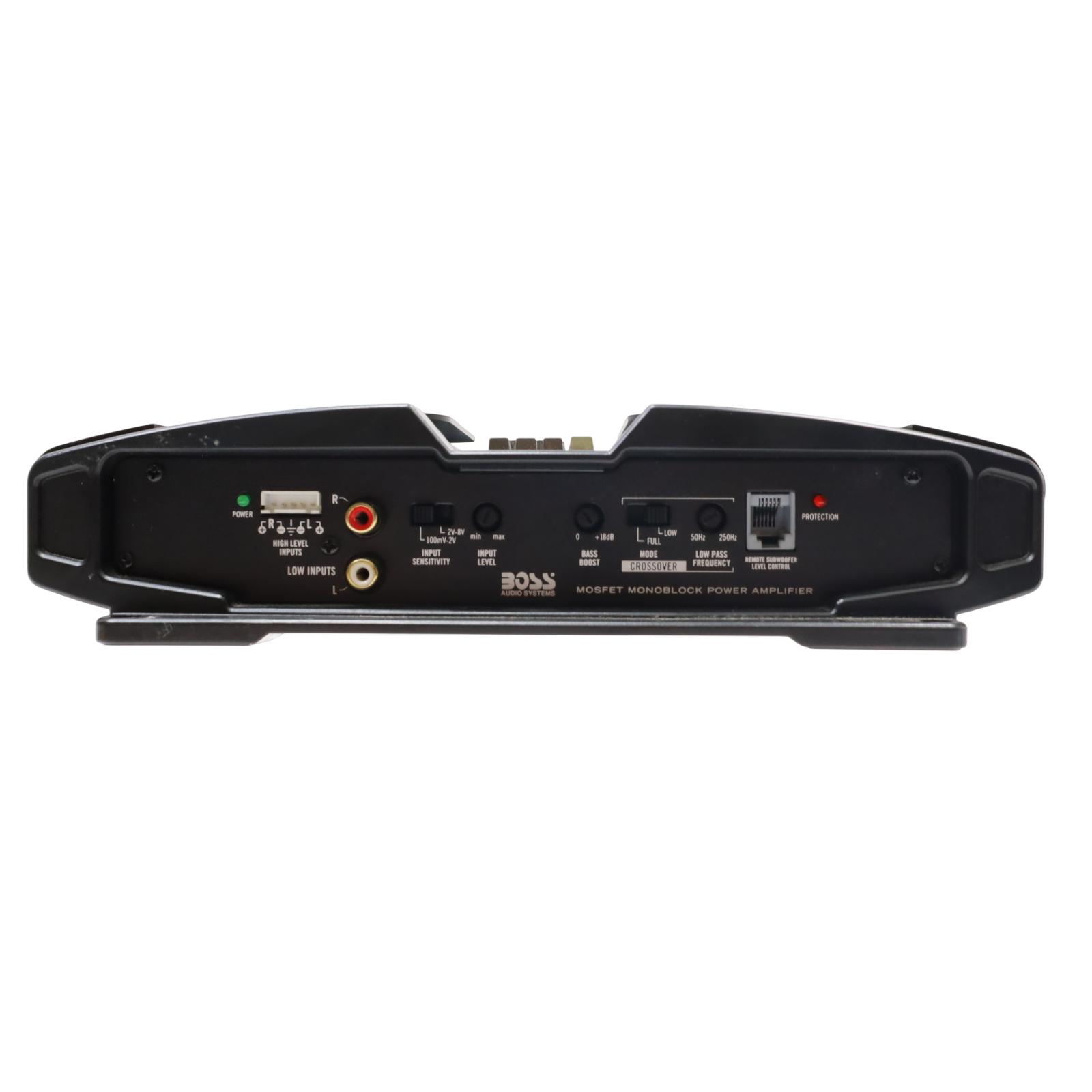 Delivers 1500 watts of maximum power in a single channel, with 1125 watts RMS at 2 ohms and 563 watts RMS at 4 ohms, making it suitable for driving subwoofers or speakers at low impedances. Designed as a Class A/B amplifier with a MOSFET power supply, it incorporates linear circuitry to reduce distortion while enhancing sound quality and output. The unit features both high-level (speaker-level) and low-level (RCA) inputs, enabling compatibility with factory or aftermarket audio sources. It supports 2-ohm stability, allowing for higher power output and volume. Additional controls include a variable low-pass crossover, adjustable bass boost, and switchable input sensitivity to match the output of connected source units. The amplifier’s design prioritizes signal amplification and efficient power delivery through MOSFET technology, which requires less current for operation.