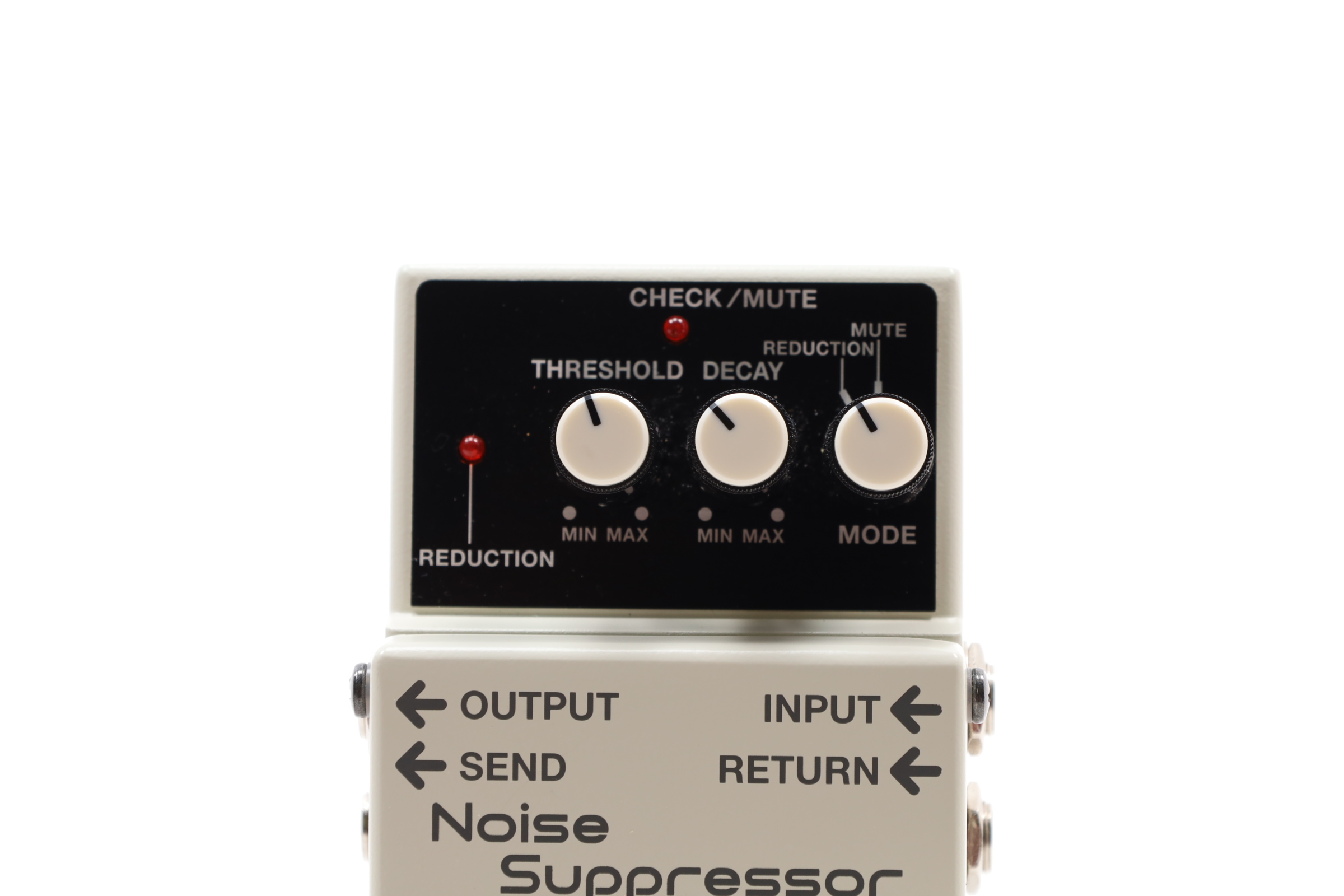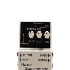 A compact device designed to eliminate noise and hum in guitar and bass effects and amplifier setups. It features a unique noise detection circuit that preserves the natural attack and envelope of an instrument's sound. Users can shape the elimination or suppression of noise using the threshold and decay knobs provided on the pedal. This noise suppressor pedal includes two instrument inputs and two 1/4" outputs, allowing for versatile connections and setup options.