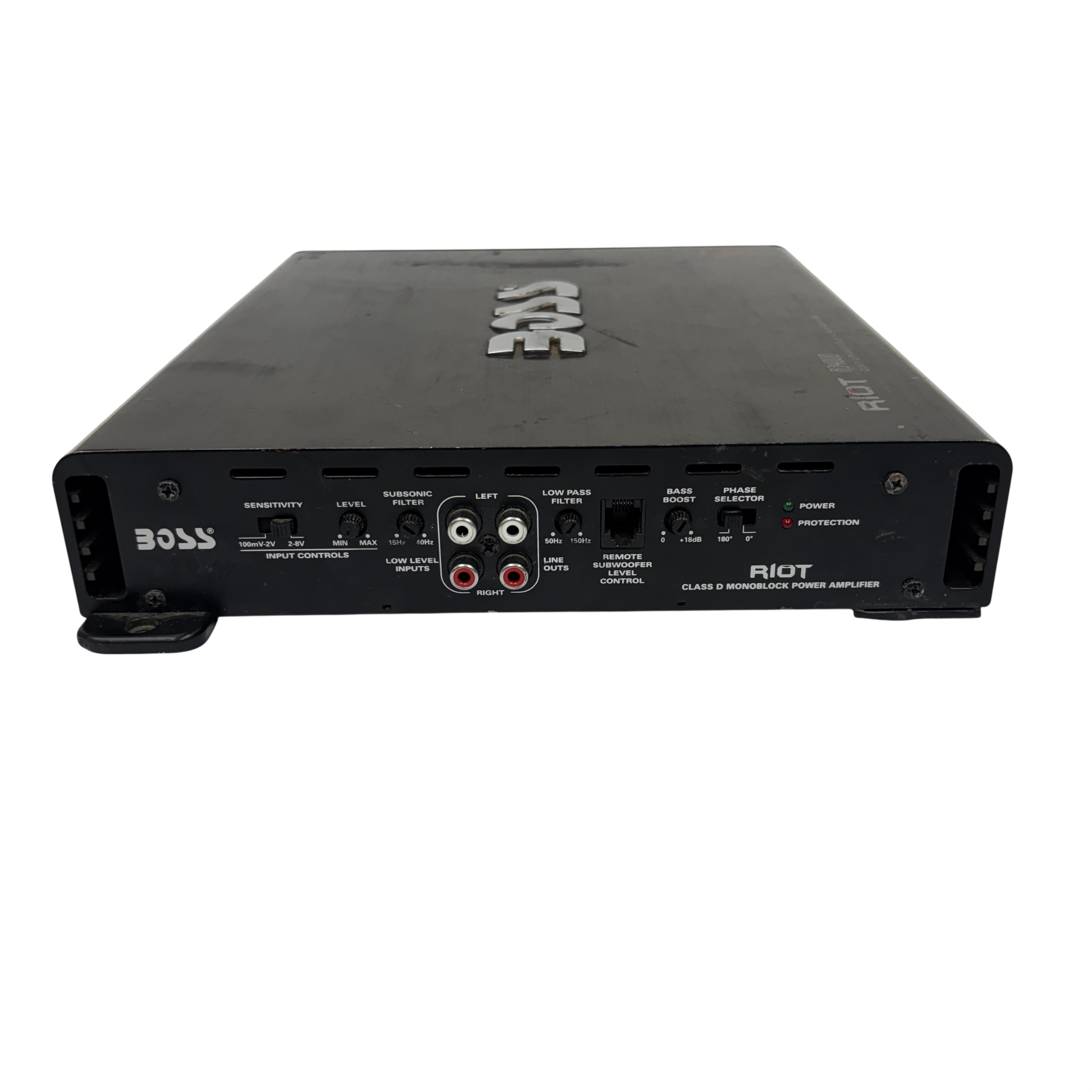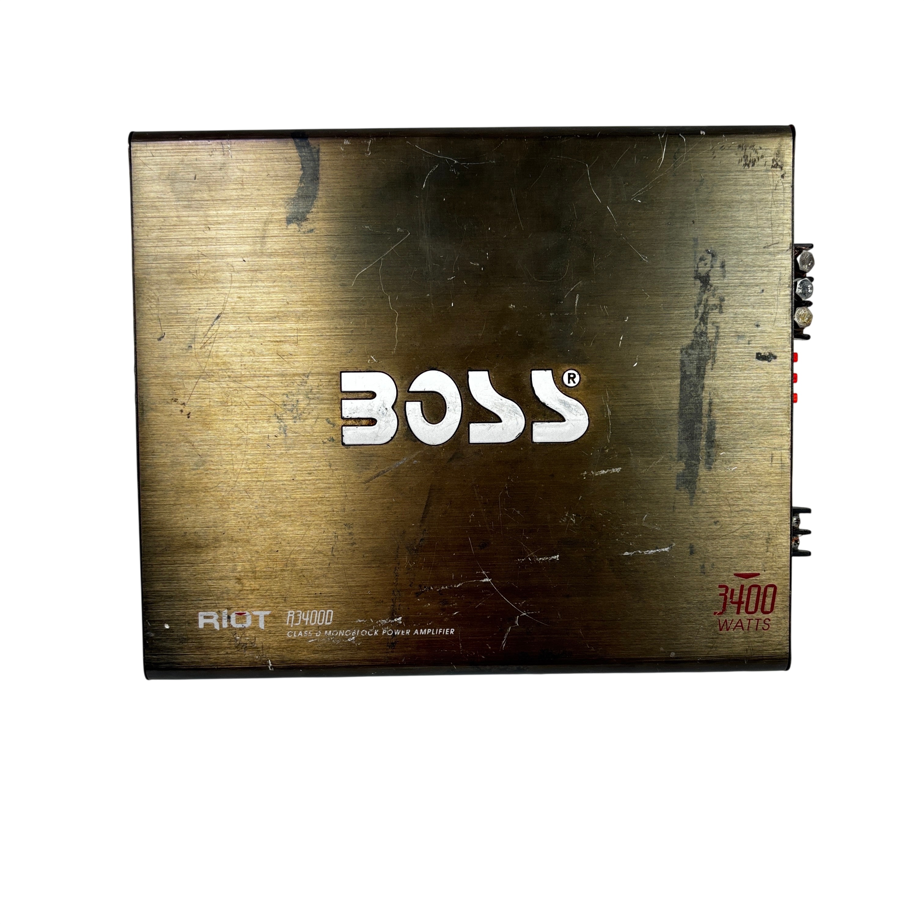 The Boss Riot R3400D Class D Monoblock Power Amplifier delivers a powerful 3400 watts of peak power, making it an ideal choice for car audio enthusiasts seeking high-performance amplification. This amplifier features advanced controls including bridged mode, bass boost, phase selector, and a remote subwoofer level control for precise sound customization. With RCA inputs and outputs, subsonic and low pass filters, and robust power connections, the R3400D ensures clean, efficient power delivery in a compact metal chassis measuring approximately 2 inches in height, 10 inches in width, and 12 inches in length. Perfect for driving subwoofers with clarity and punch, this amplifier is a solid addition to any car audio system.