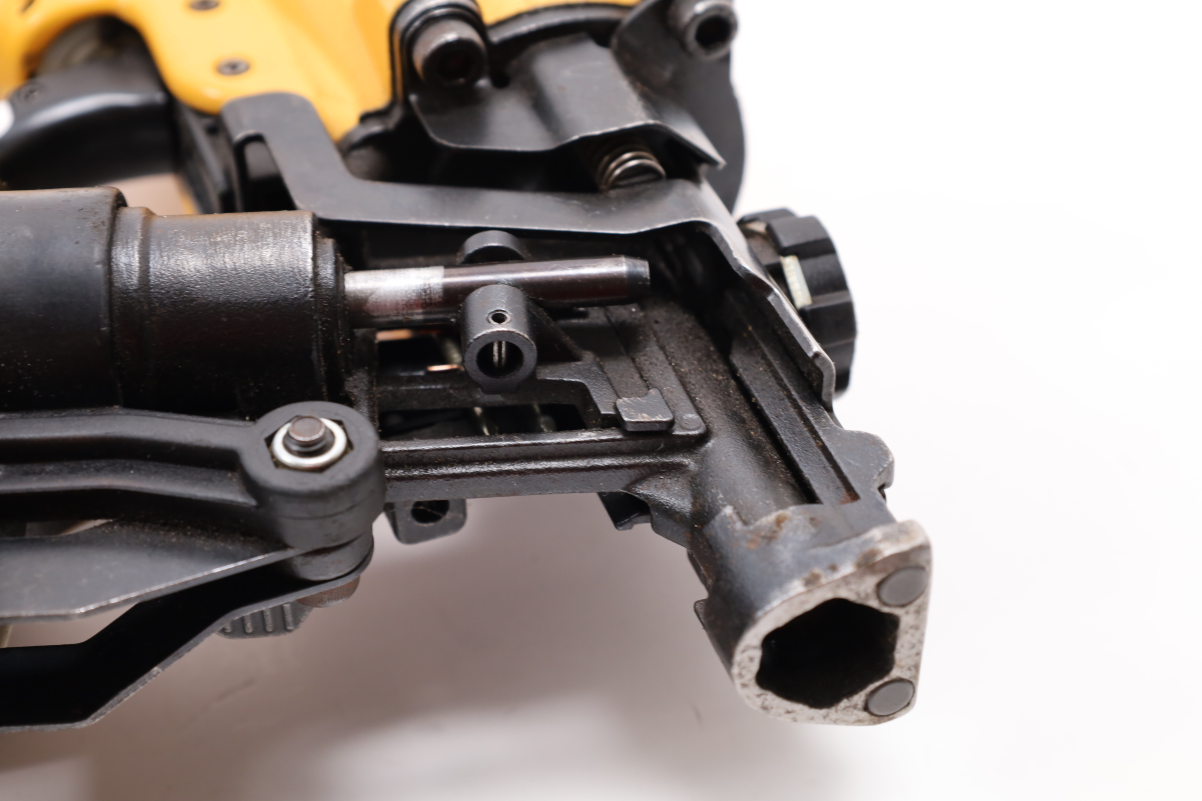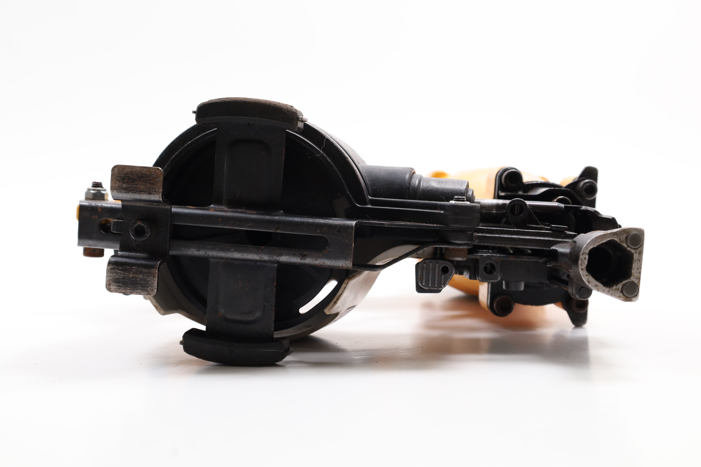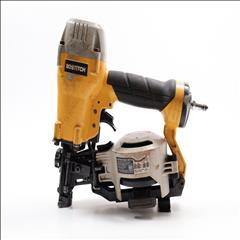 Designed to drive 3/4-inch to 1-3/4-inch coil roofing nails. It features an upgraded engine and feed system that enhances drive quality, nail handling, and overall performance. The nailer also includes a dual door magazine that can be closed in multiple ways, an oversized tool-free depth adjustment wheel for proper nail setting, and carbide nose inserts to protect the nose from wear. The redesigned grip handle offers a better feel, and the overall design emphasizes improved durability and user comfort.