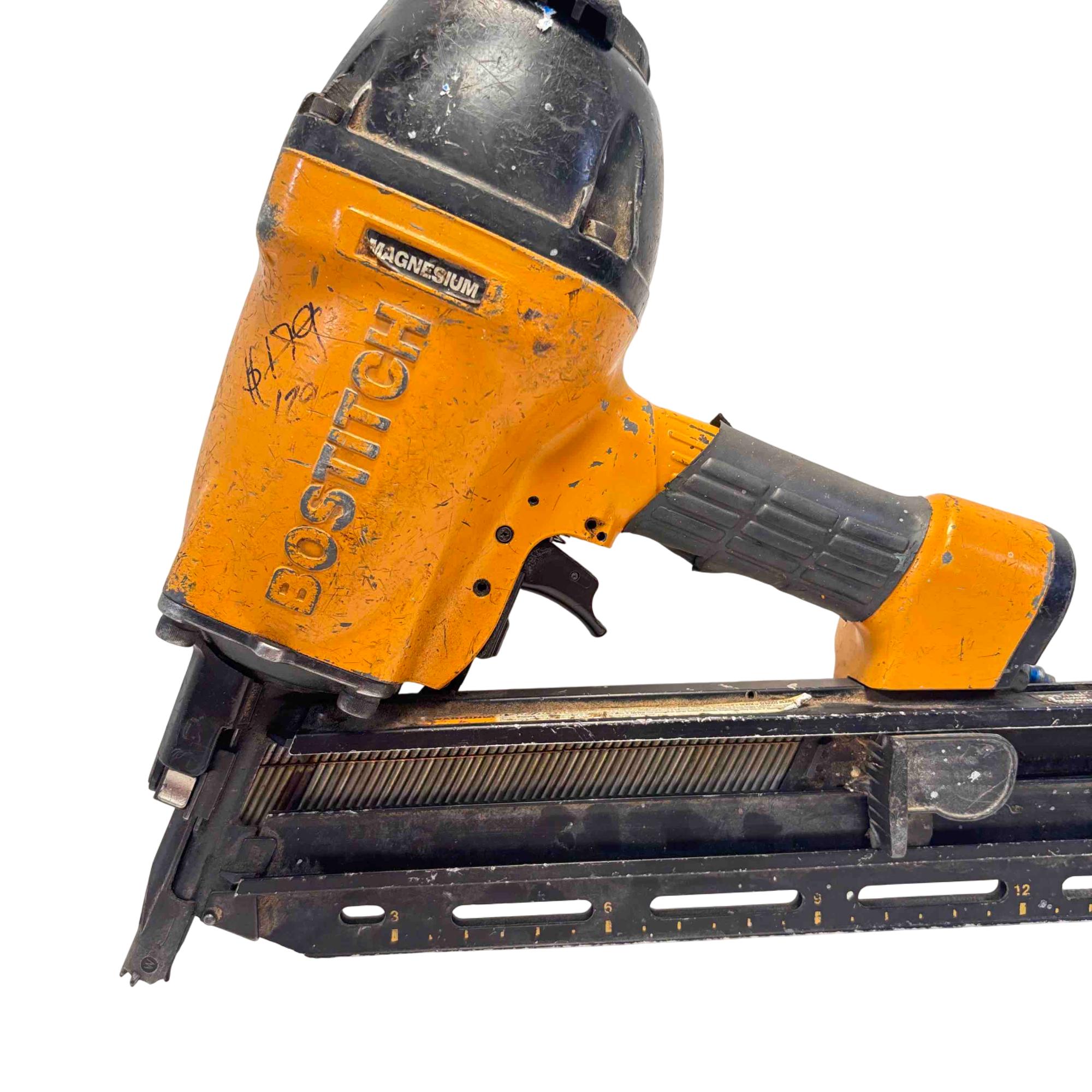 Get the job done right with the Bostitch F28WW Framing Nailer, a durable and lightweight power tool featuring a robust magnesium body. Perfect for heavy-duty construction or home improvement, this nailer delivers consistent power and reliability for framing, subflooring, and sheathing jobs. Its high-capacity magazine and ergonomic design allow you to work longer with increased comfort and efficiency.