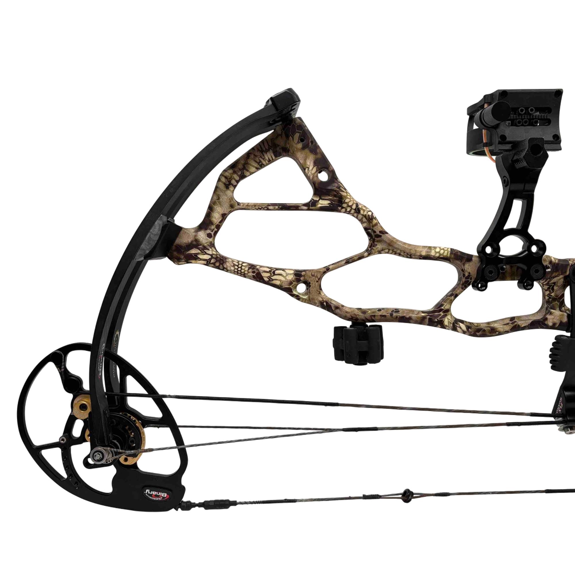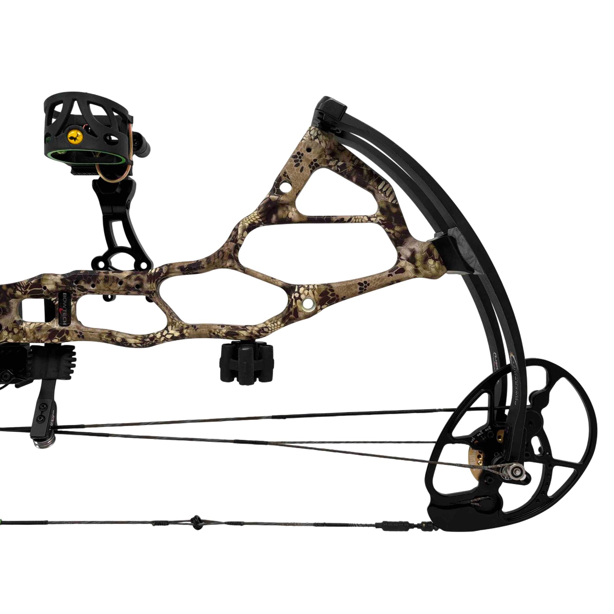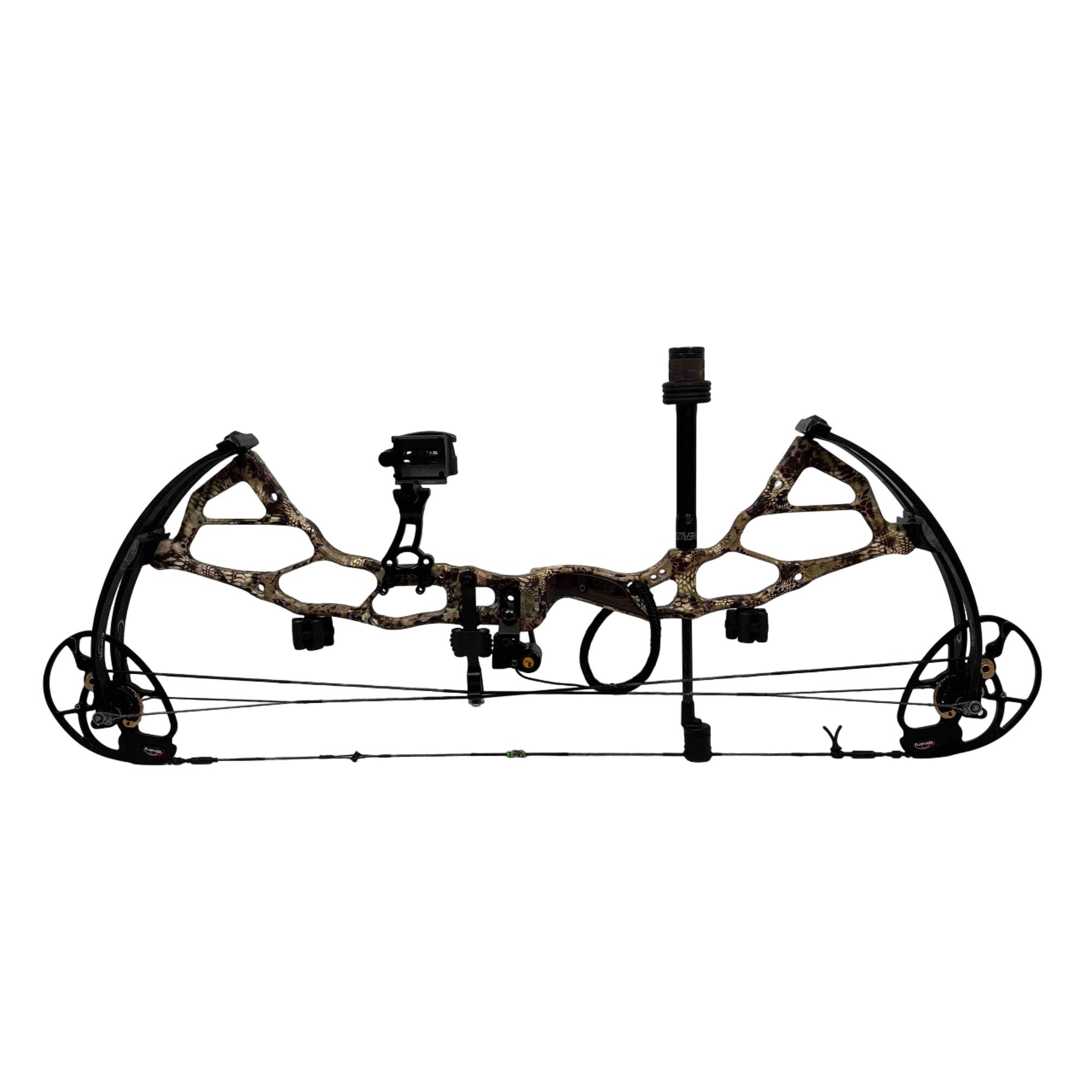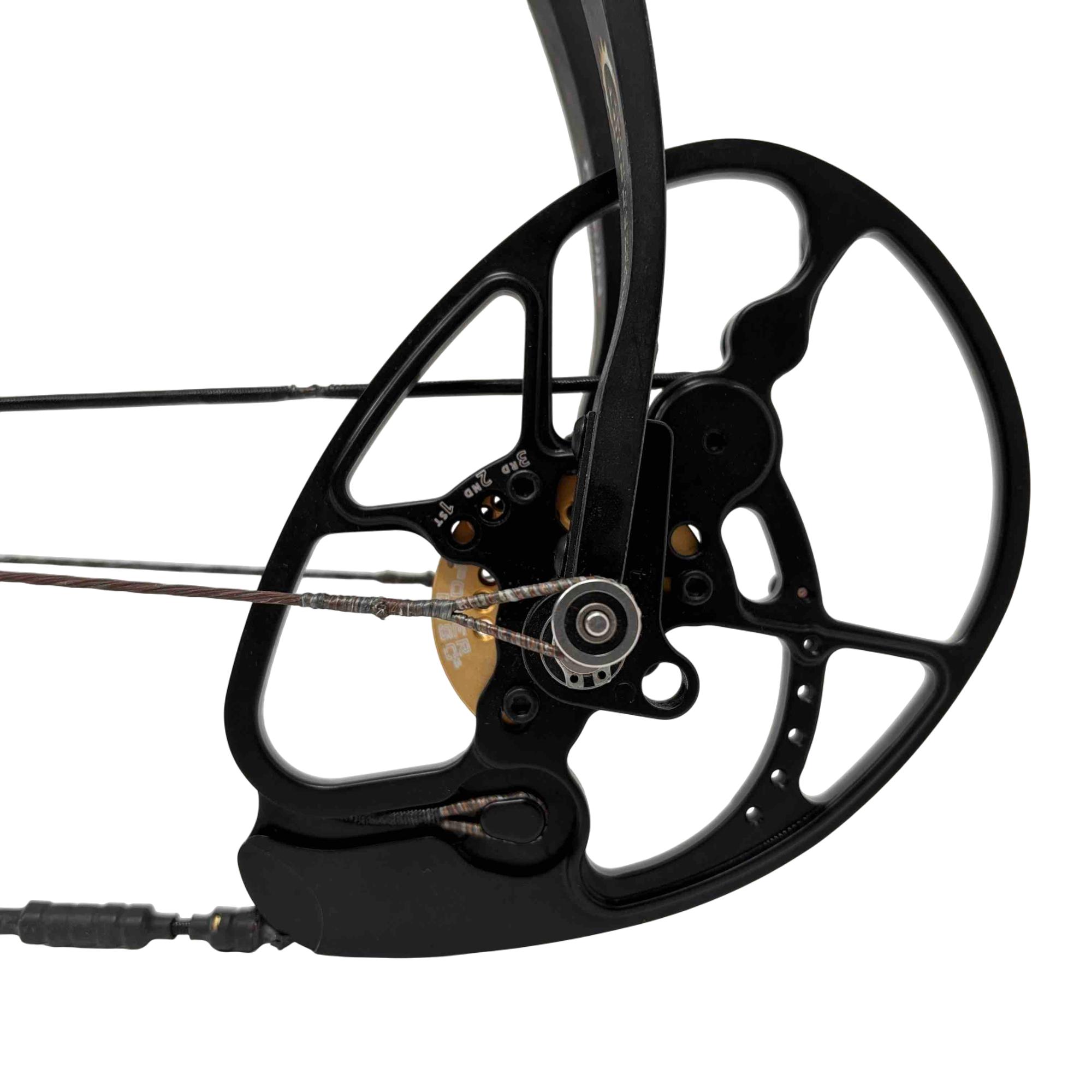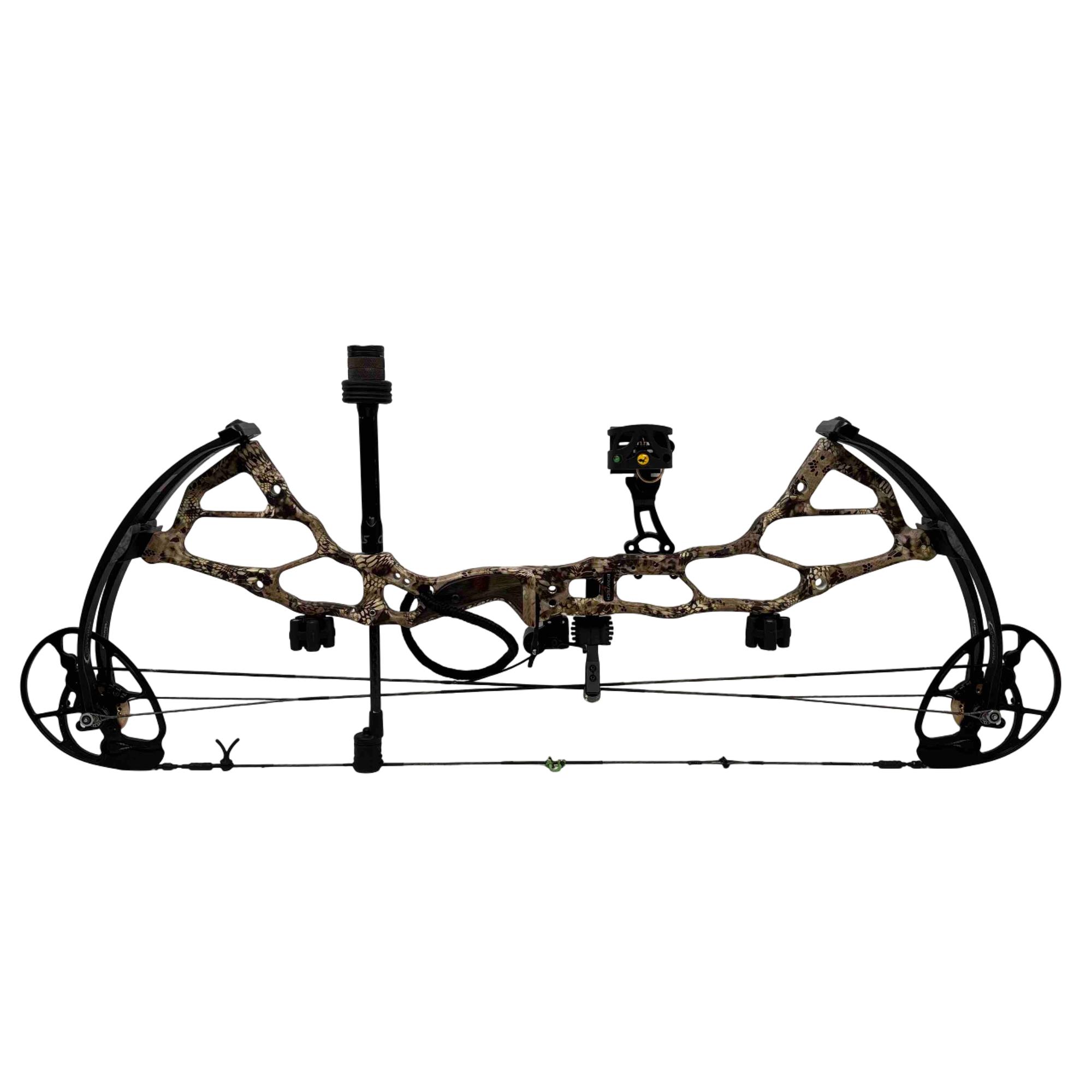 A compact, high-performance right-handed compound bow designed for hunting. It features a 26" draw length, 70-pound draw weight, and a 28" cam system capable of achieving an IBO speed of 333 FPS. The bow measures 31" axle-to-axle, has a 6" brace height, and weighs 4.1 pounds. It offers a draw length range of 25.5" to 28" and an adjustable draw weight of 50, 60, 70, or 80 pounds, with an 80% let-off for added comfort. Engineered with a skeletal riser for improved balance and stability, the BT-X delivers 86.2 foot-pounds of kinetic energy, making it a reliable and powerful option for hunters.