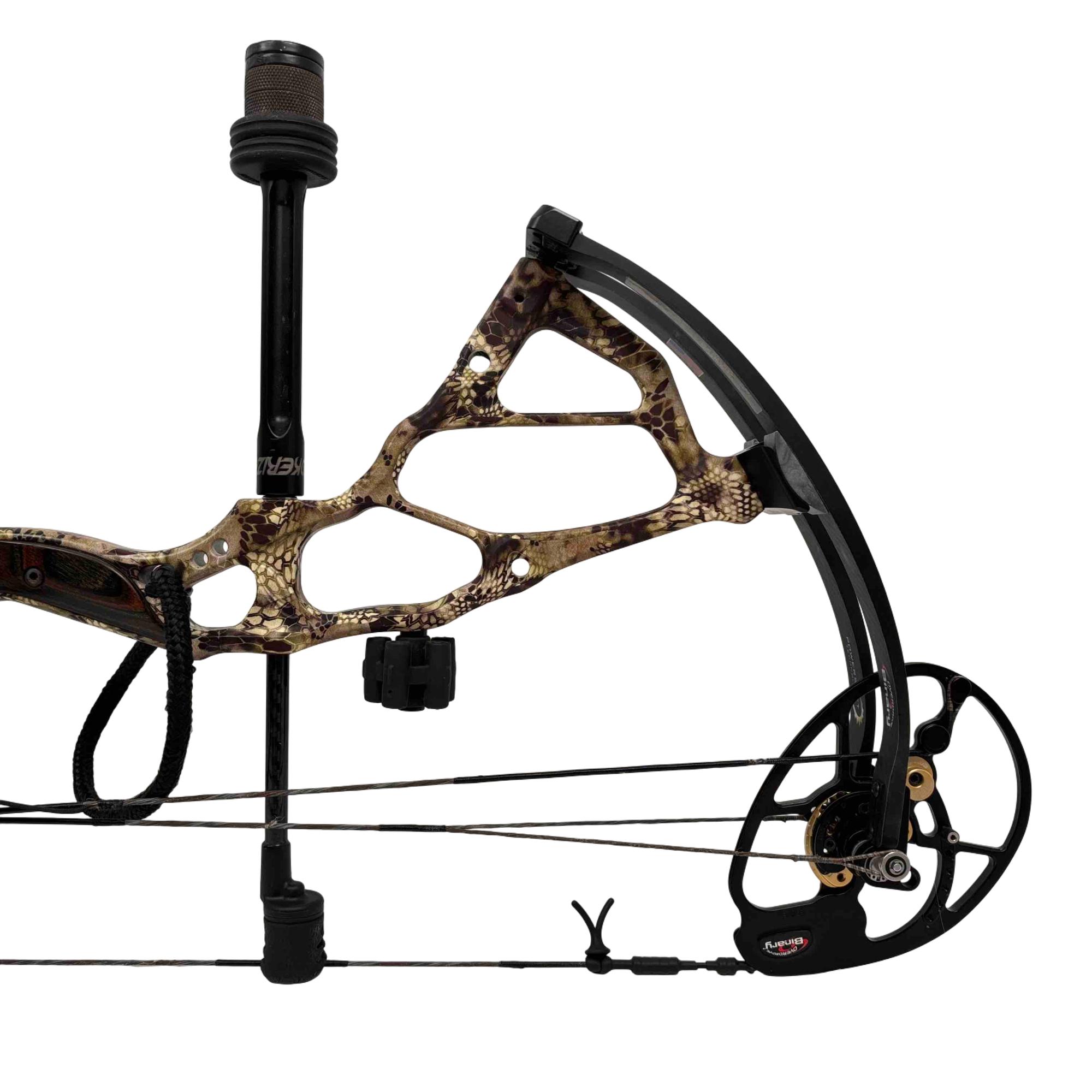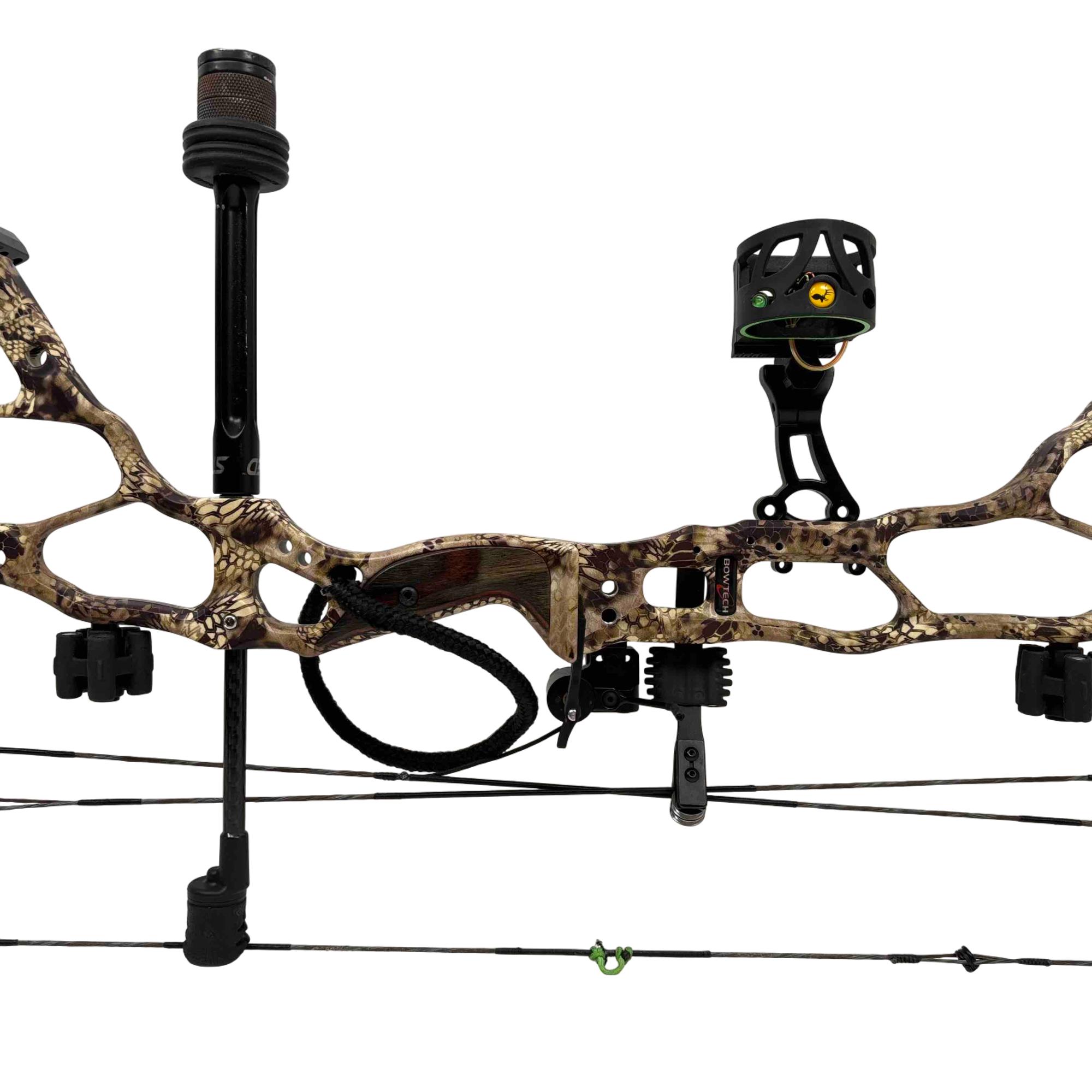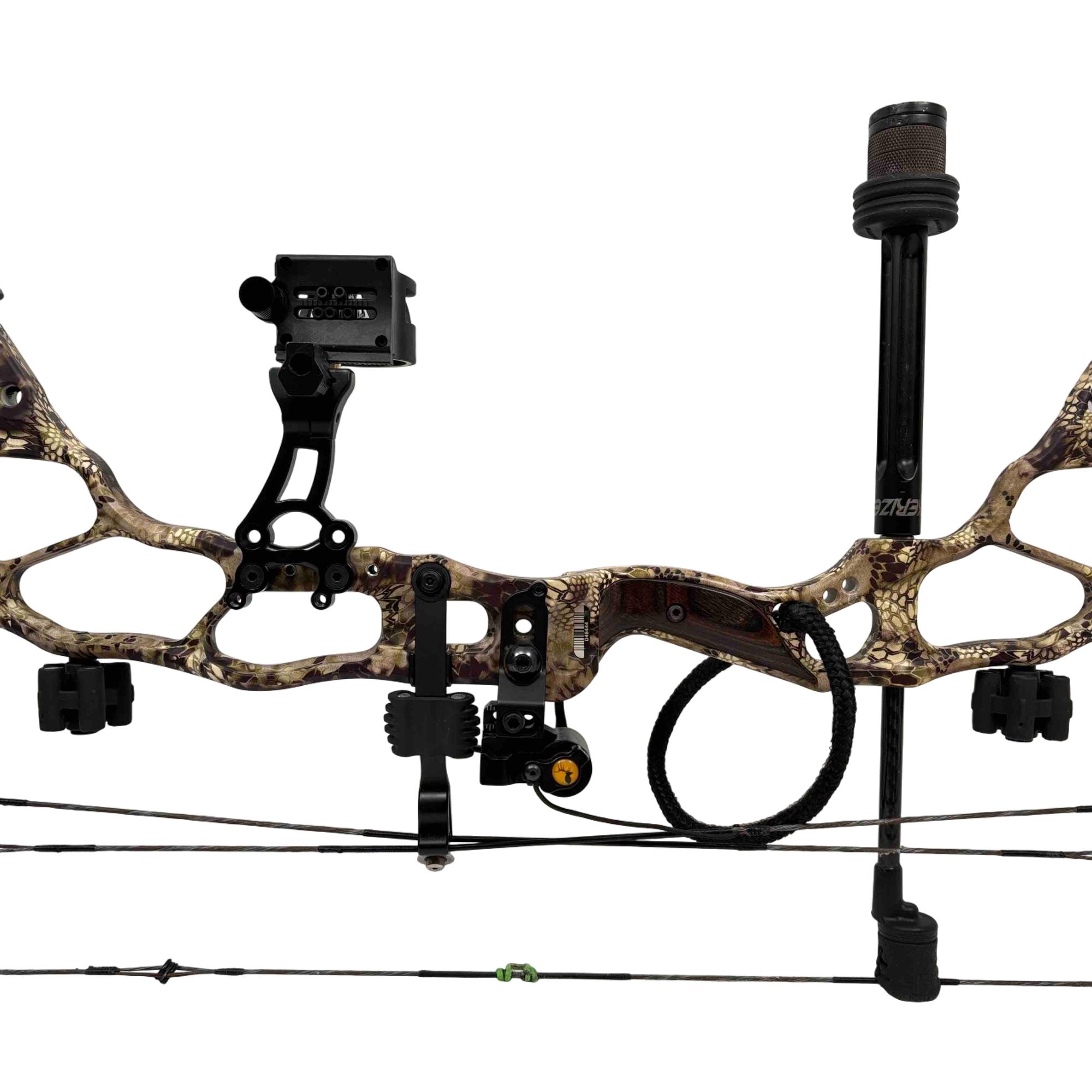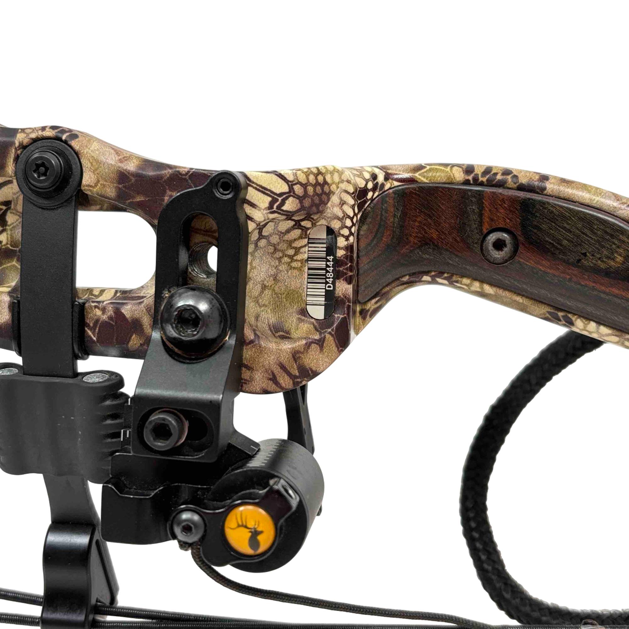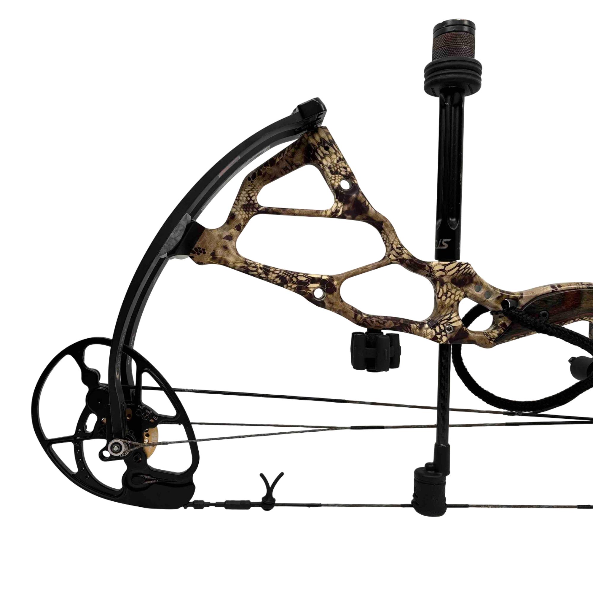 A compact, high-performance right-handed compound bow designed for hunting. It features a 26" draw length, 70-pound draw weight, and a 28" cam system capable of achieving an IBO speed of 333 FPS. The bow measures 31" axle-to-axle, has a 6" brace height, and weighs 4.1 pounds. It offers a draw length range of 25.5" to 28" and an adjustable draw weight of 50, 60, 70, or 80 pounds, with an 80% let-off for added comfort. Engineered with a skeletal riser for improved balance and stability, the BT-X delivers 86.2 foot-pounds of kinetic energy, making it a reliable and powerful option for hunters.