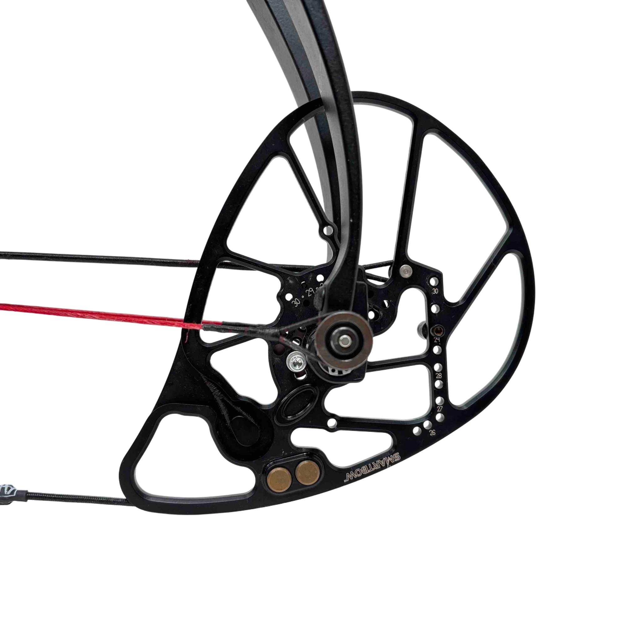 Features a 6-inch brace height, a 32-inch axle-to-axle length, and adjustable draw lengths ranging from 25.5 to 30 inches in half-inch increments. It offers a draw weight range of 40 to 70 pounds and achieves an IBO speed of up to 352 fps. The bow weighs 4.3 lbs and provides a let-off range between 80 and 86 percent. Designed with Bowtech's SmartBow Technology, it includes the OverDrive Binary Cam System, FlipDisk Technology for customizable draw cycles, and a CP Dual Lock riser for stability and alignment. The solid-carbon-core limbs and wide stance enhance durability, stability, and performance, while the FLX-Guard cable-containment system reduces torque for improved consistency. The modular Clutch grip allows for customization, and vibration dampening features further enhance balance and control.