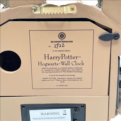 The Bradford Exchange Harry Potter Hogwarts Fully-Sculpted Illuminated Wall Clock features a detailed, three-dimensional design showcasing the iconic Hogwarts castle with intricate sculpting and vibrant colors. This collectible wall clock includes illuminated elements that highlight key features like the clock tower and surrounding figures, creating a magical centerpiece for any fans room or display. Expertly crafted to capture the essence of the legendary Harry Potter series, it combines artistic detail with functional timekeeping.