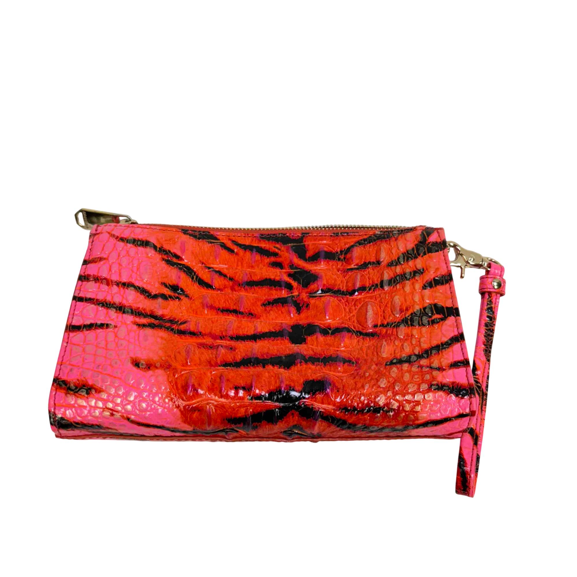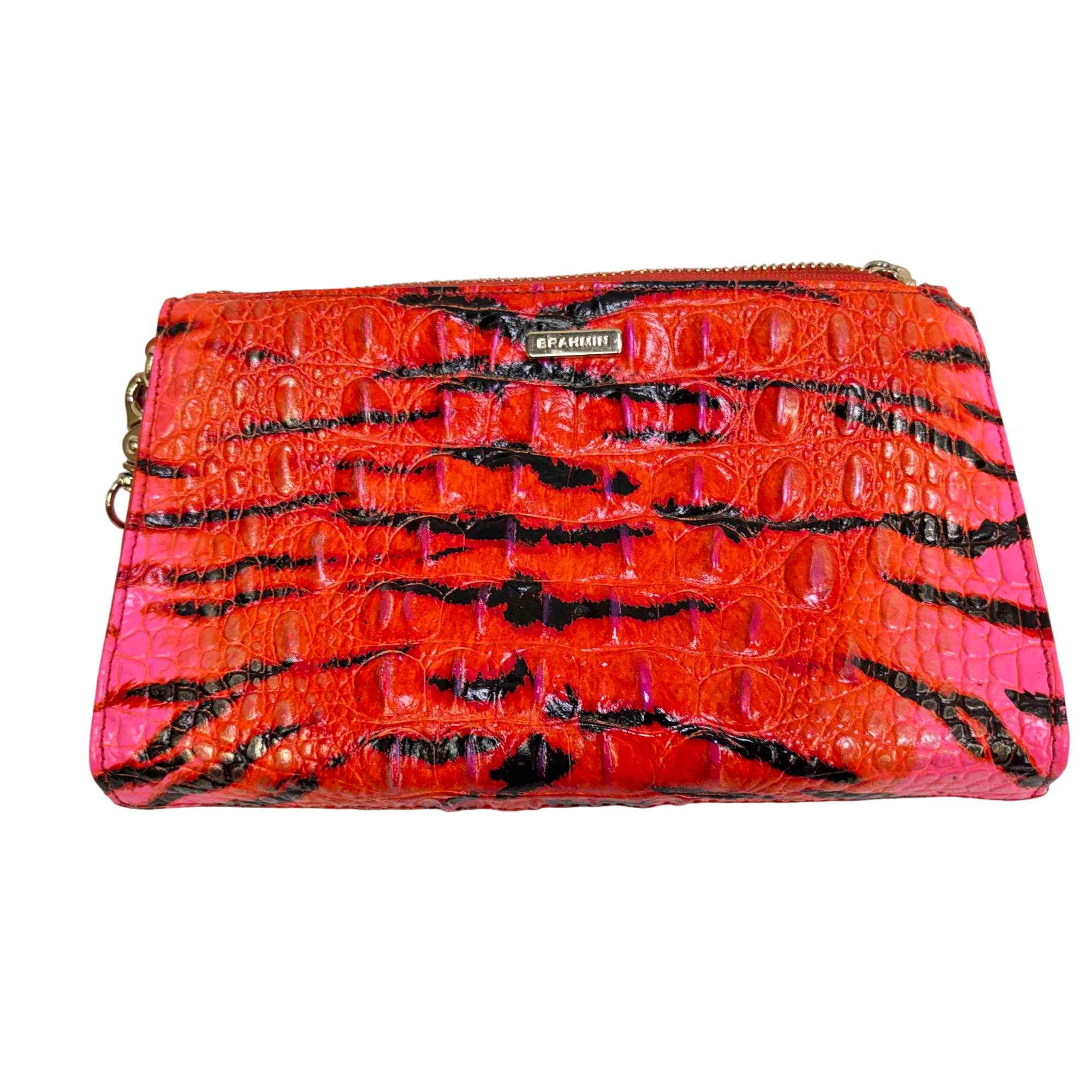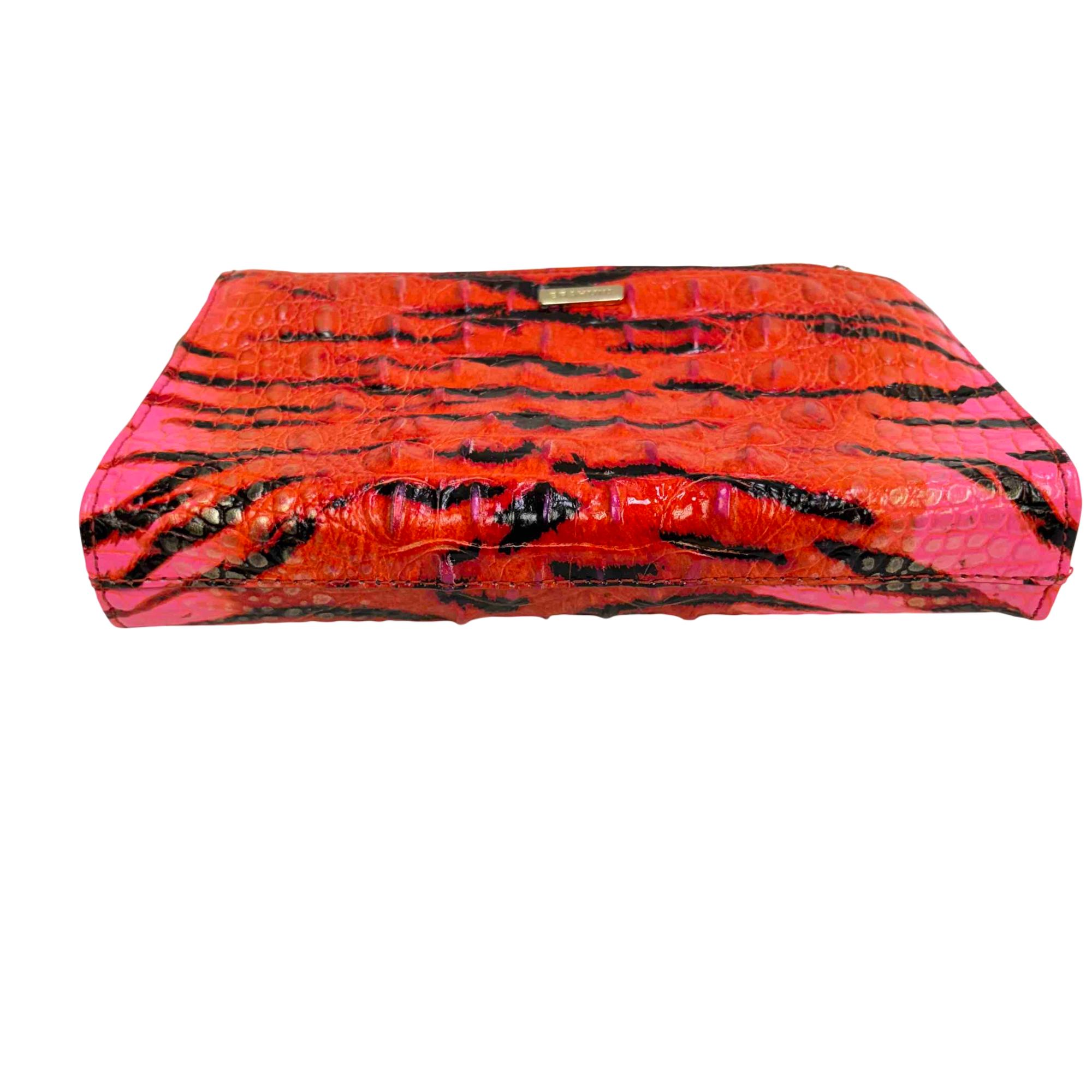 Elevate your fashion game with this stunning Brahmin Pink and Black Croc Embossed Leather Purse. This exquisitely crafted accessory combines vibrant pink and black hues in a chic crocodile pattern, perfect for making a bold style statement. Complete with a dust bag, its an ideal choice for both daily use and special occasions.