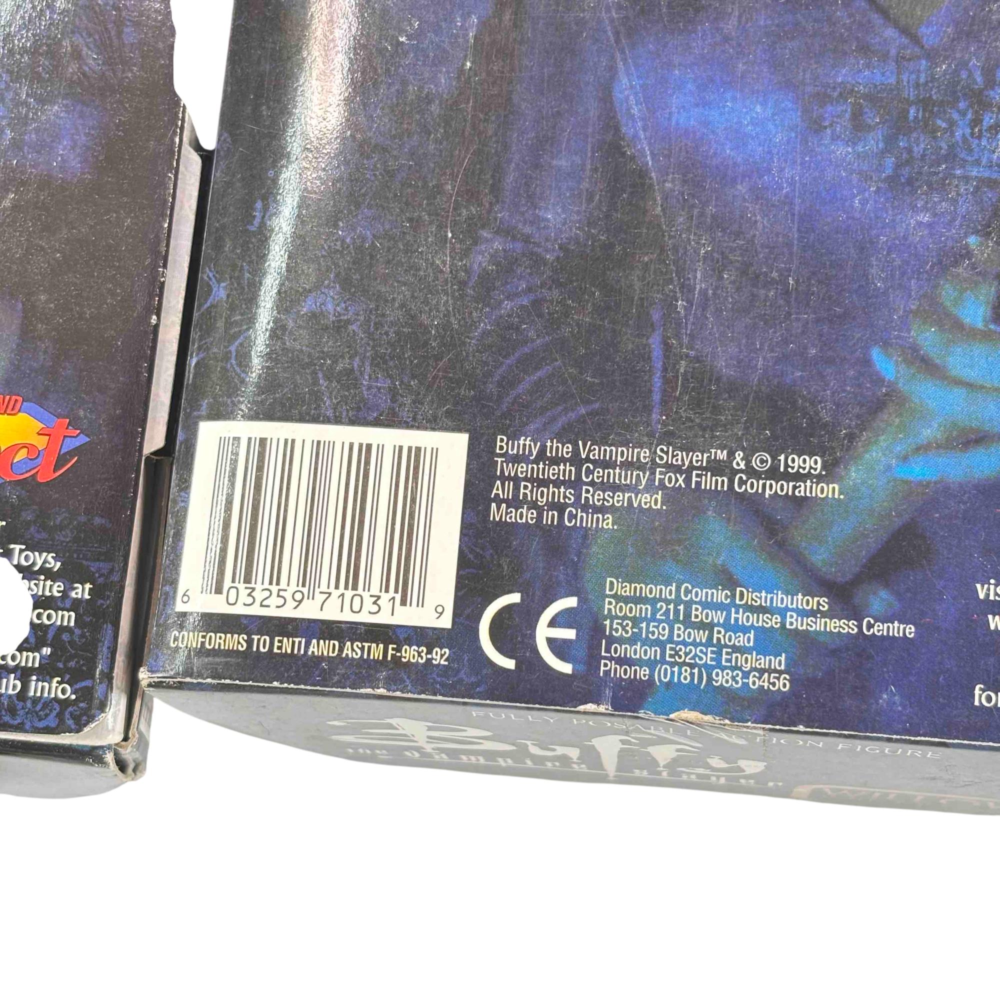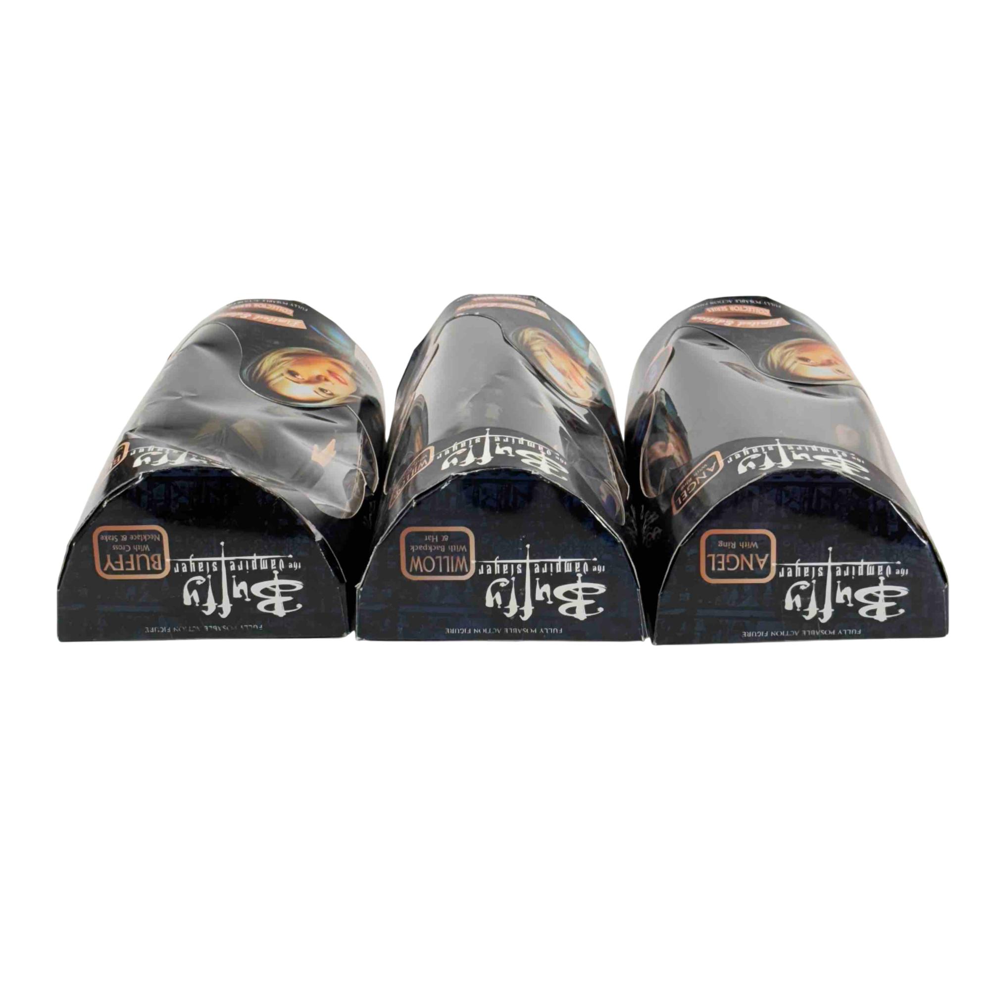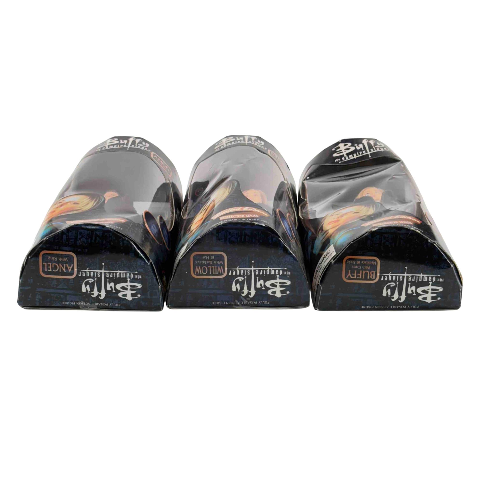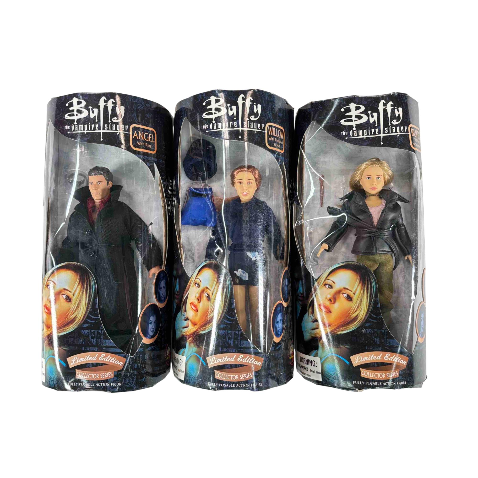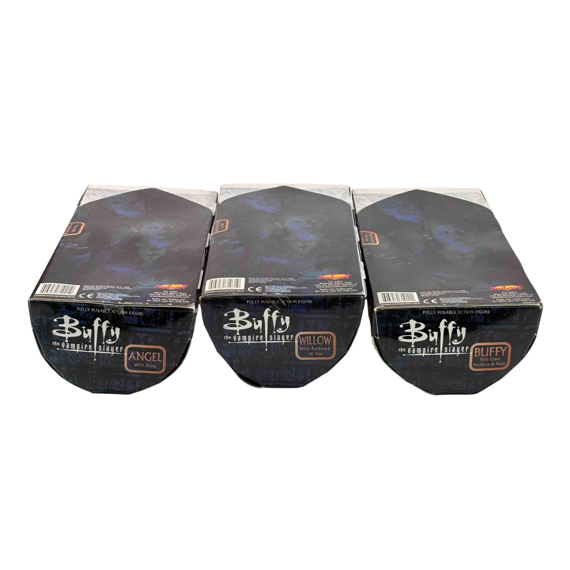 Own a piece of TV history with this set of three limited edition collector series action figures from Diamond Select! Featuring Buffy, Willow, and Angel—each in their iconic outfits and packaged with signature accessories—these fully posable figures are a must-have for Buffy the Vampire Slayer fans and collectors. The original packaging showcases authentic show branding and character details, making this set a standout display or treasured collectible.