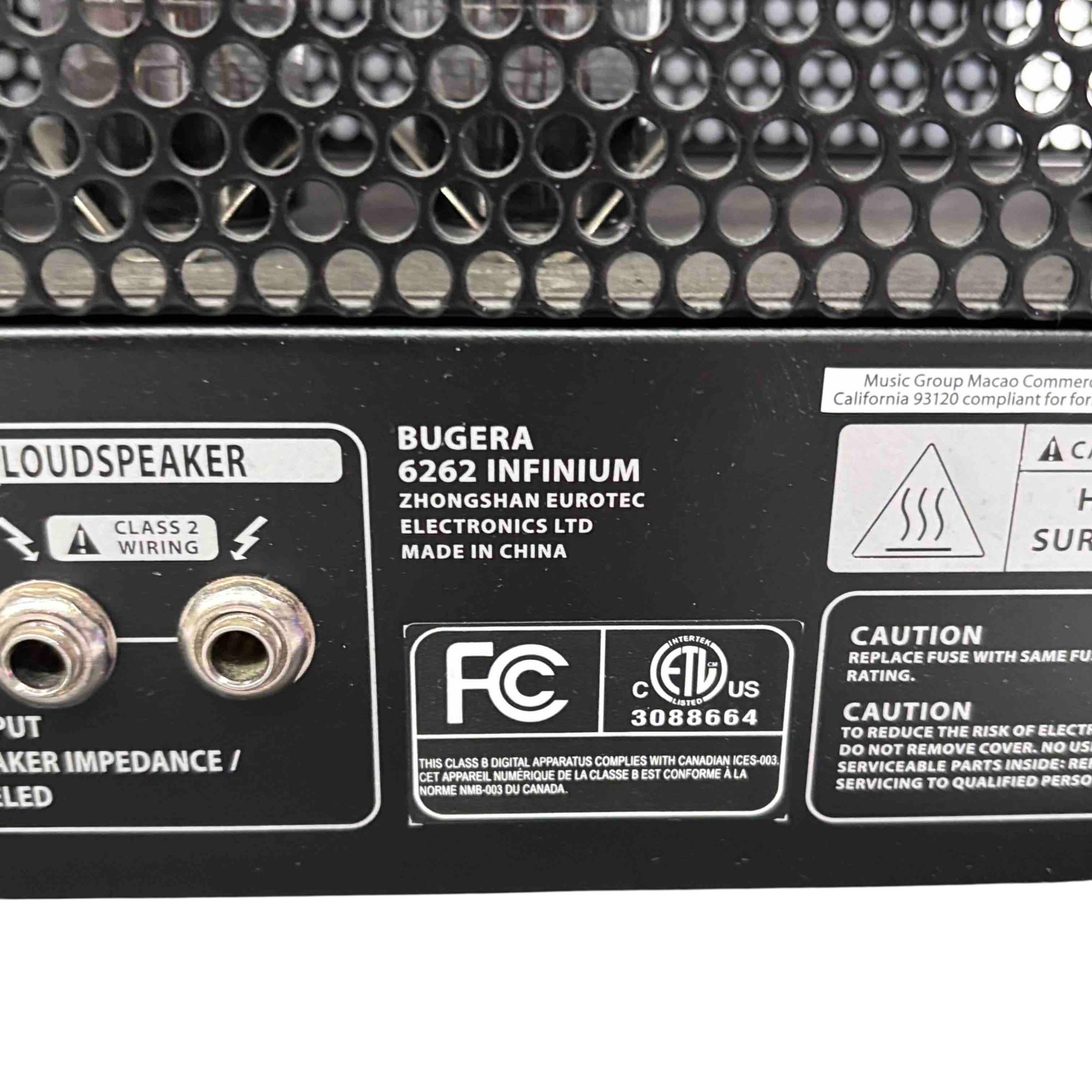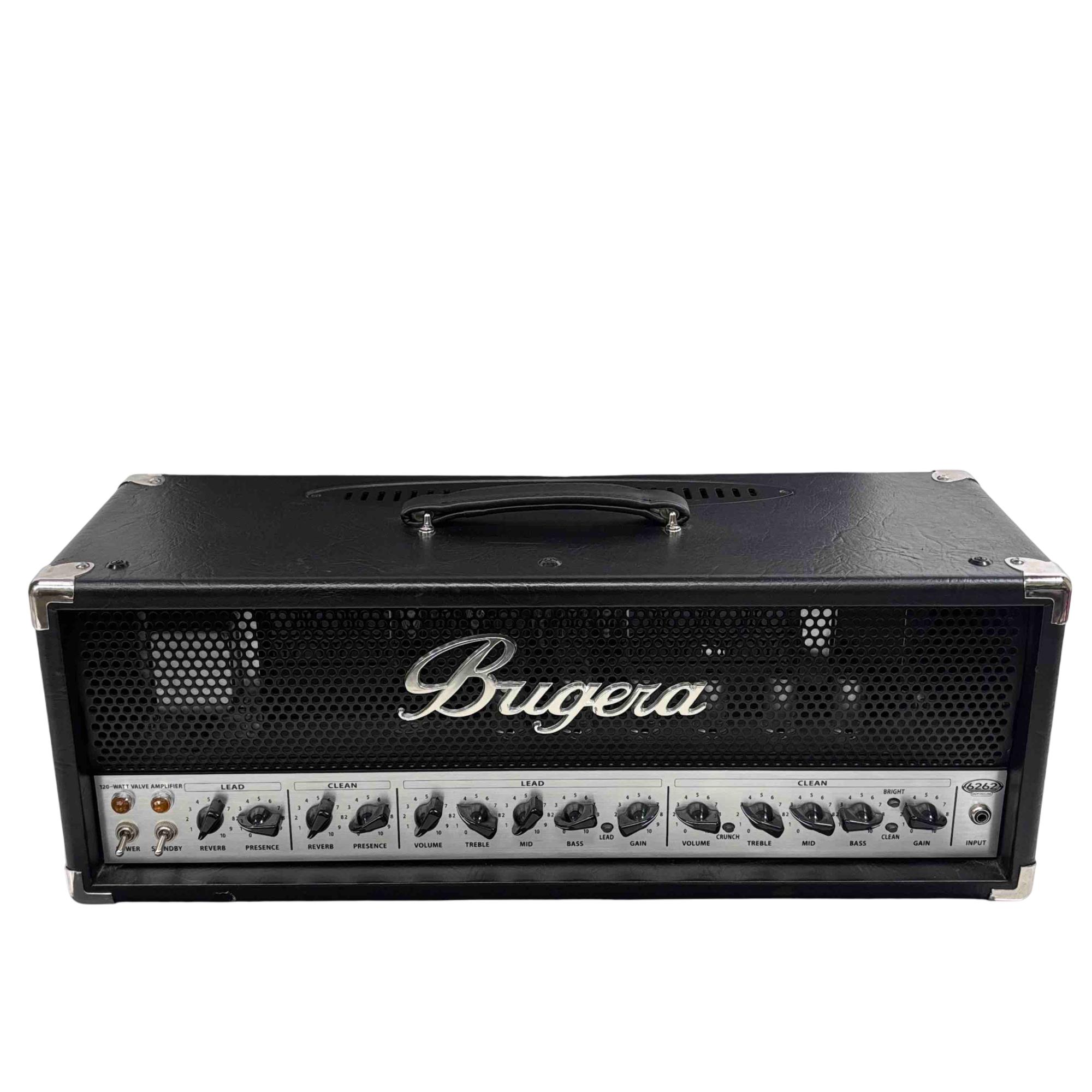 Bugera 6262 Infinium 120-Watt 2-Channel Tube Guitar Amplifier Head delivers powerful rock tone with versatile controls including gain, volume, treble, mid, bass, presence, and reverb. This black amplifier features a robust design with metal corners, a convenient handle, and the patented INFINIUM tube life multiplier for extended tube longevity. Ideal for guitarists seeking rich clean and crunchy sounds, it combines classic valve warmth with modern reliability.