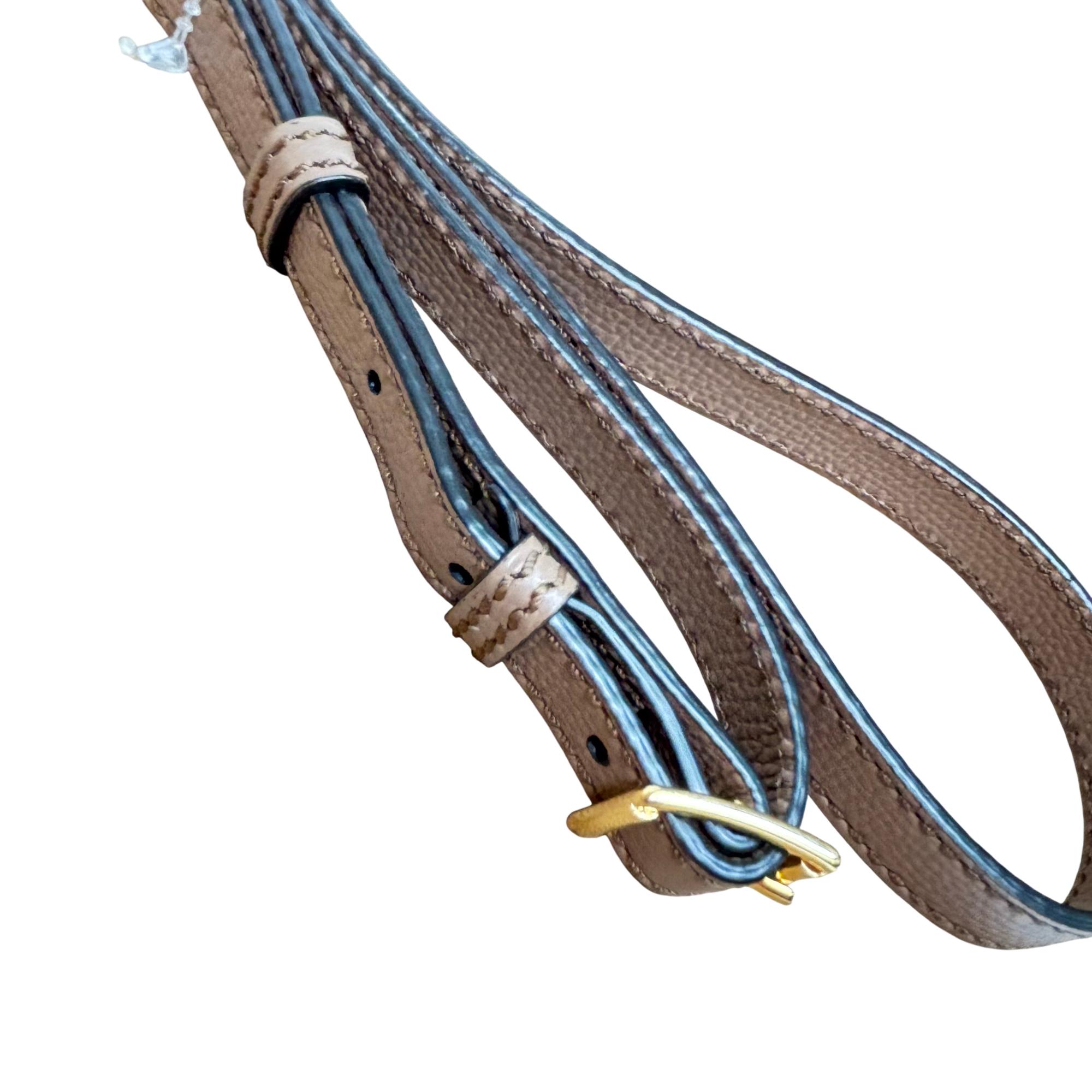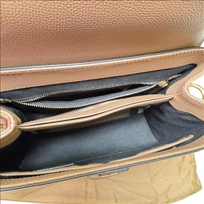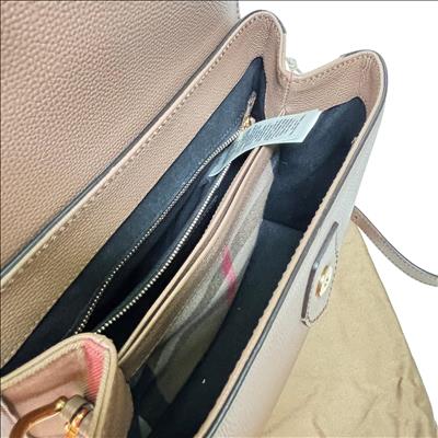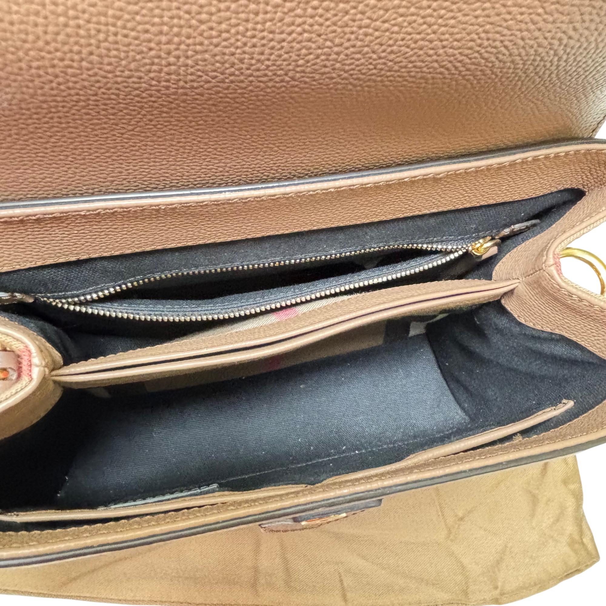 Burberry Camberley Tan Leather Shoulder Bag from London, England features a refined Tan leather surface with a sturdy strap and elegant gold and metal ring accents. This shoulder bag combines classic craftsmanship with modern design, making it a stylish and functional fashion accessory perfect for everyday use or special occasions.
