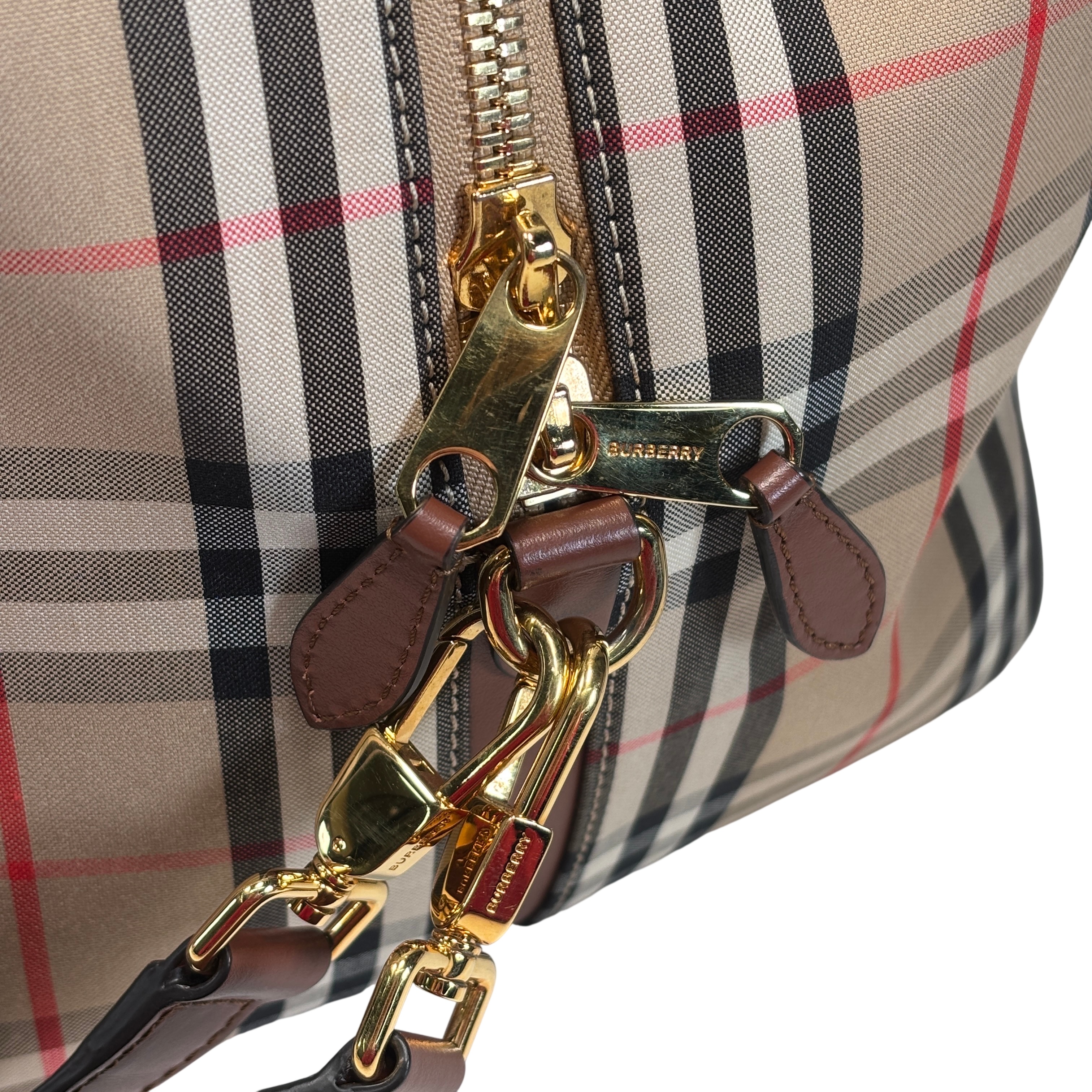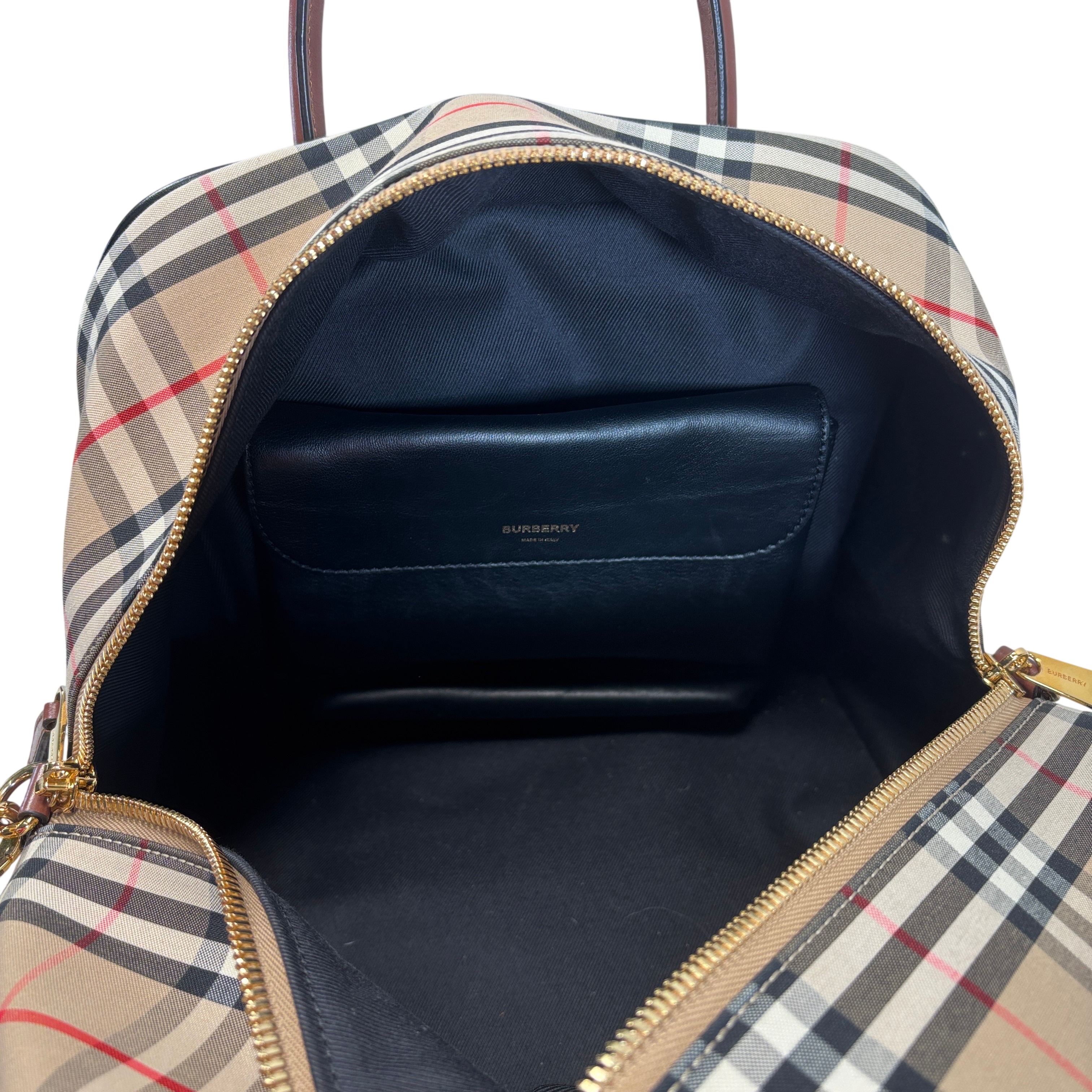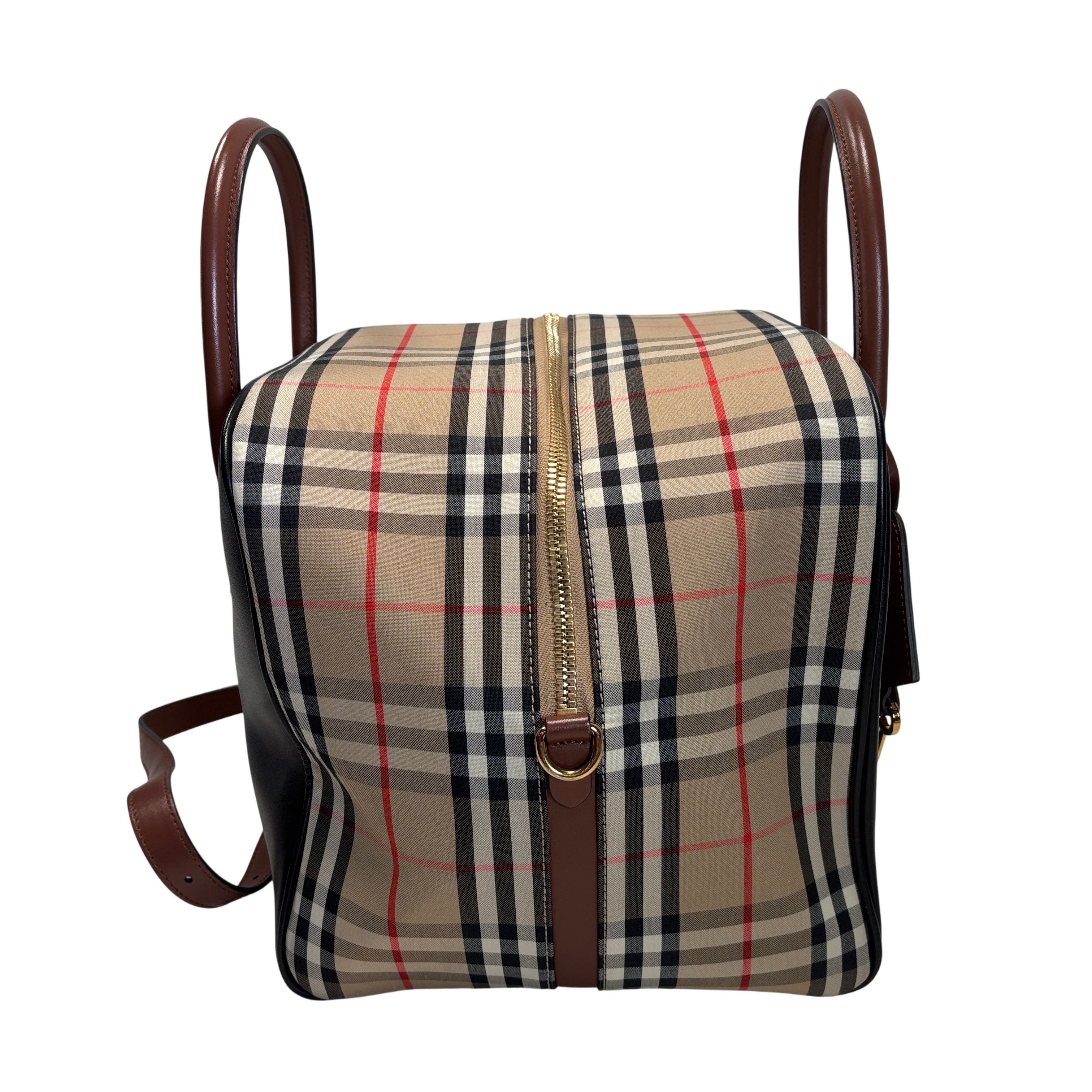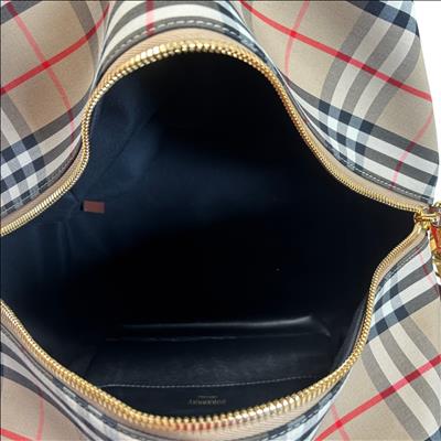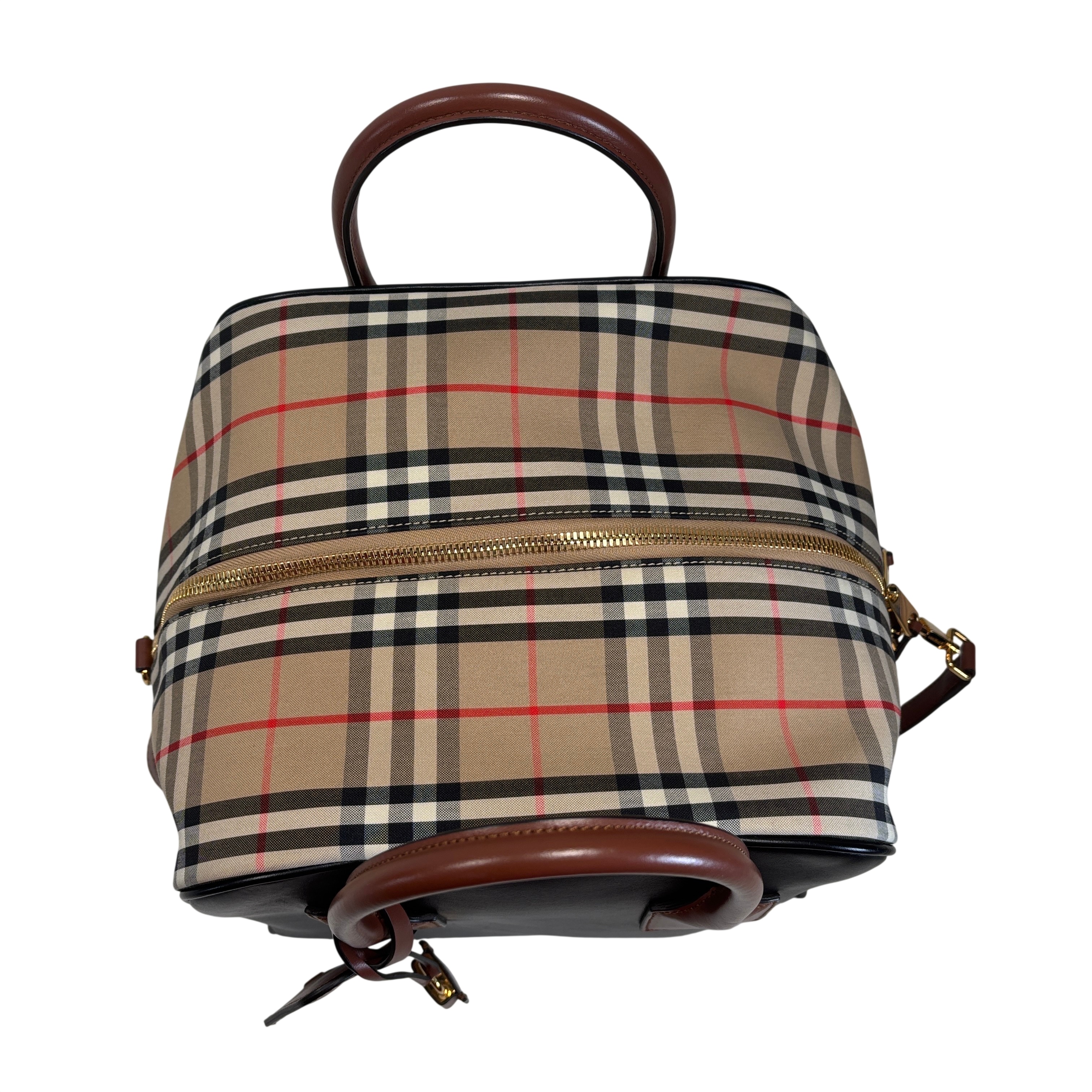 The Burberry Checkered Women's Satchel Bag BMUNL1497 features the iconic Burberry check pattern combined with smooth black leather front panel and brown leather handles. This stylish purse includes gold-tone hardware, branded zipper pulls, and an adjustable/removable shoulder strap for versatile carrying options. This authentic Burberry bag is perfect for everyday use or special occasions. The included Entrupy Certificate of Authenticity ensures the genuine quality and craftsmanship of this luxury item.