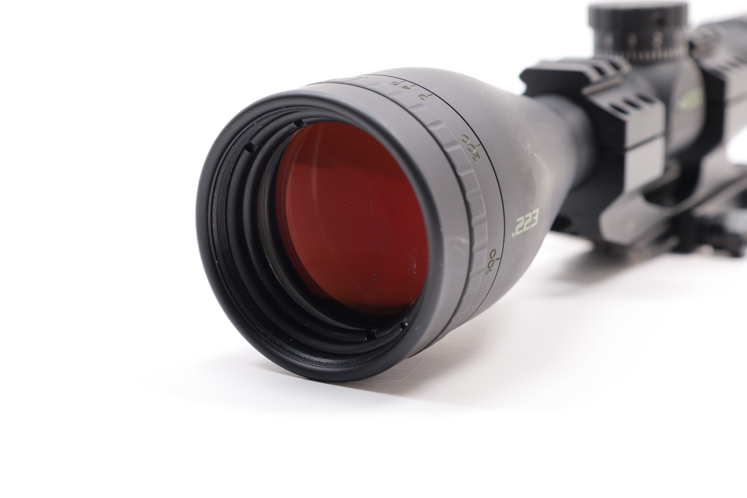 Designed for precise and reliable performance in tactical settings. It features a Ballistic Plex reticle, ideal for quick, measured holdover with popular tactical loads. The scope's multi-coated, index-matched lenses ensure minimal glare and optimal contrast, even in low-light conditions. Constructed with a durable matte black finish, it offers waterproof protection and weighs 18 ounces. The 1-inch tube diameter and steel-on-steel click adjustments provide consistent and repeatable accuracy.