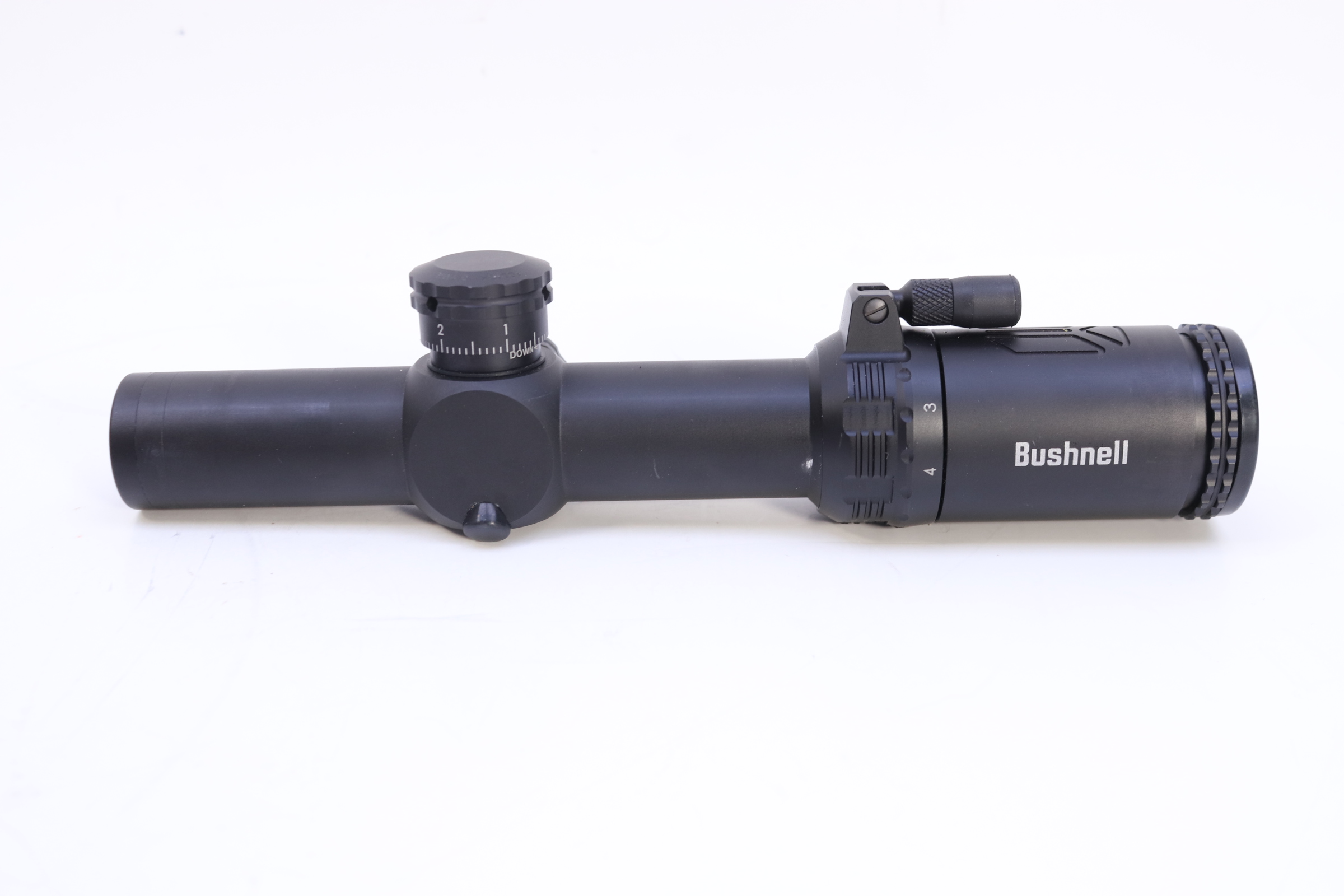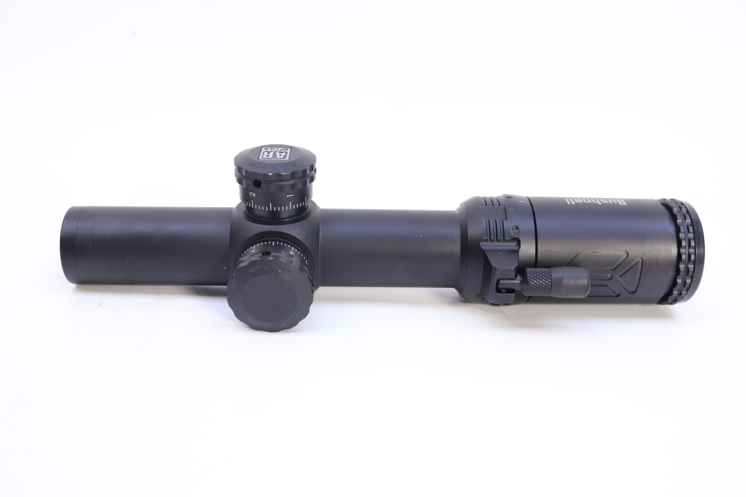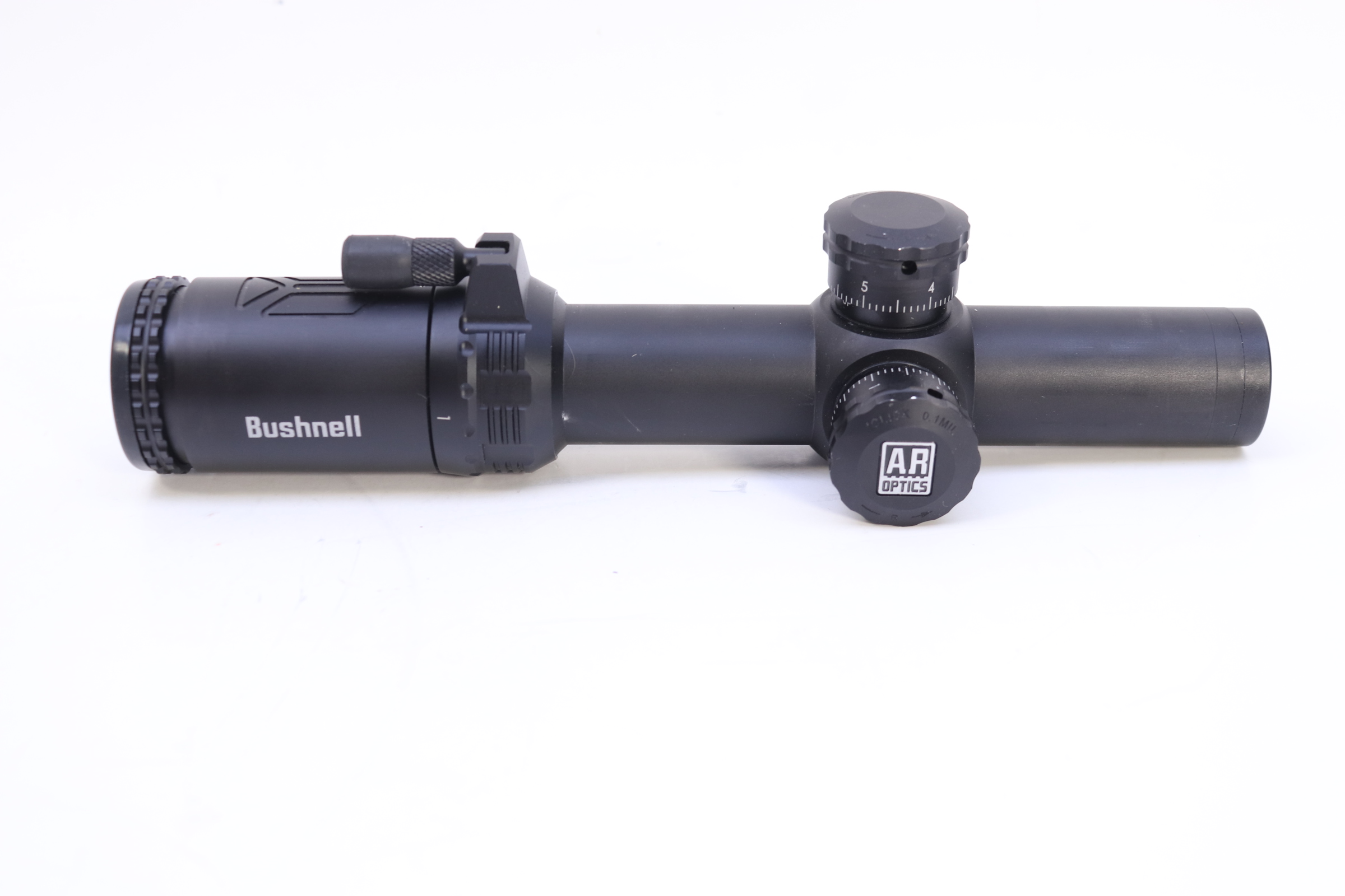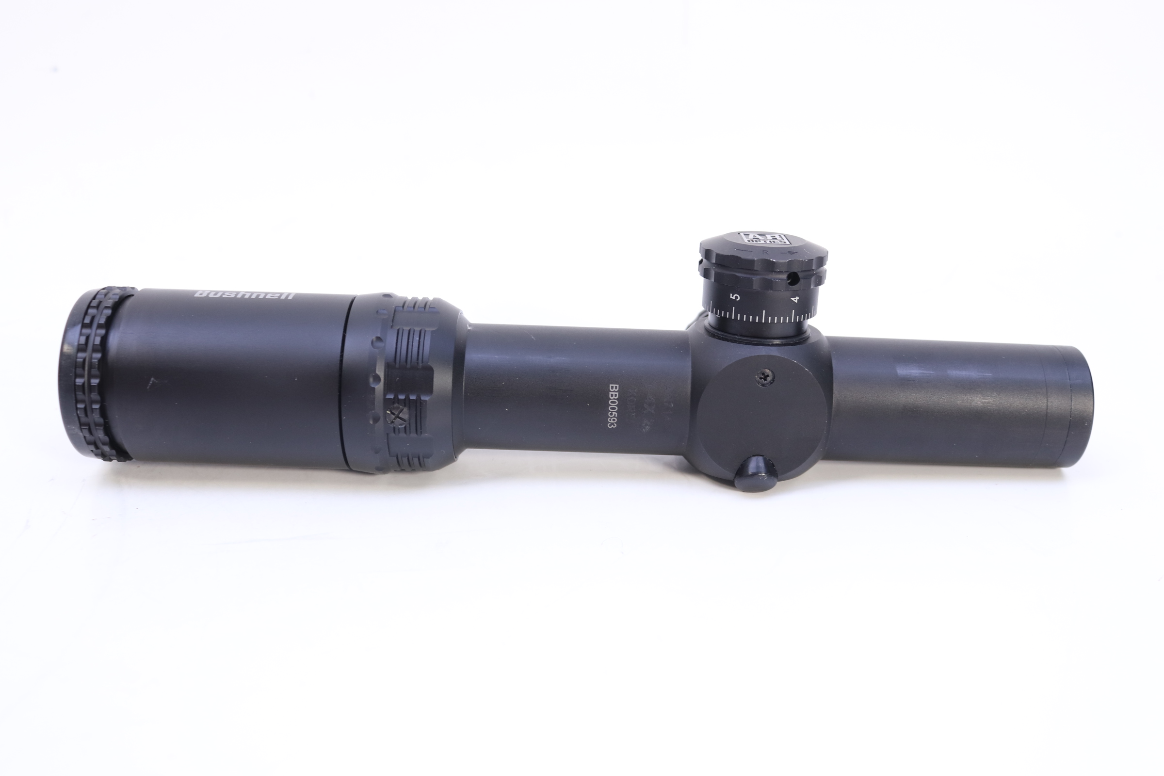 Built for fast target acquisition with modern sporting rifles, the Bushnell AR Optic 1-4x24 Riflescope features fully multi-coated elements for a bright, sharp image, a maximum 112' field of view, 1/10 MRAD impact point correction, and generous elevation and windage adjustment ranges. Its Drop Zone 223 reticle is calibrated for .223/5.56 ammunition with 55-62 grain bullets and has holdover marks out to 600 yards.