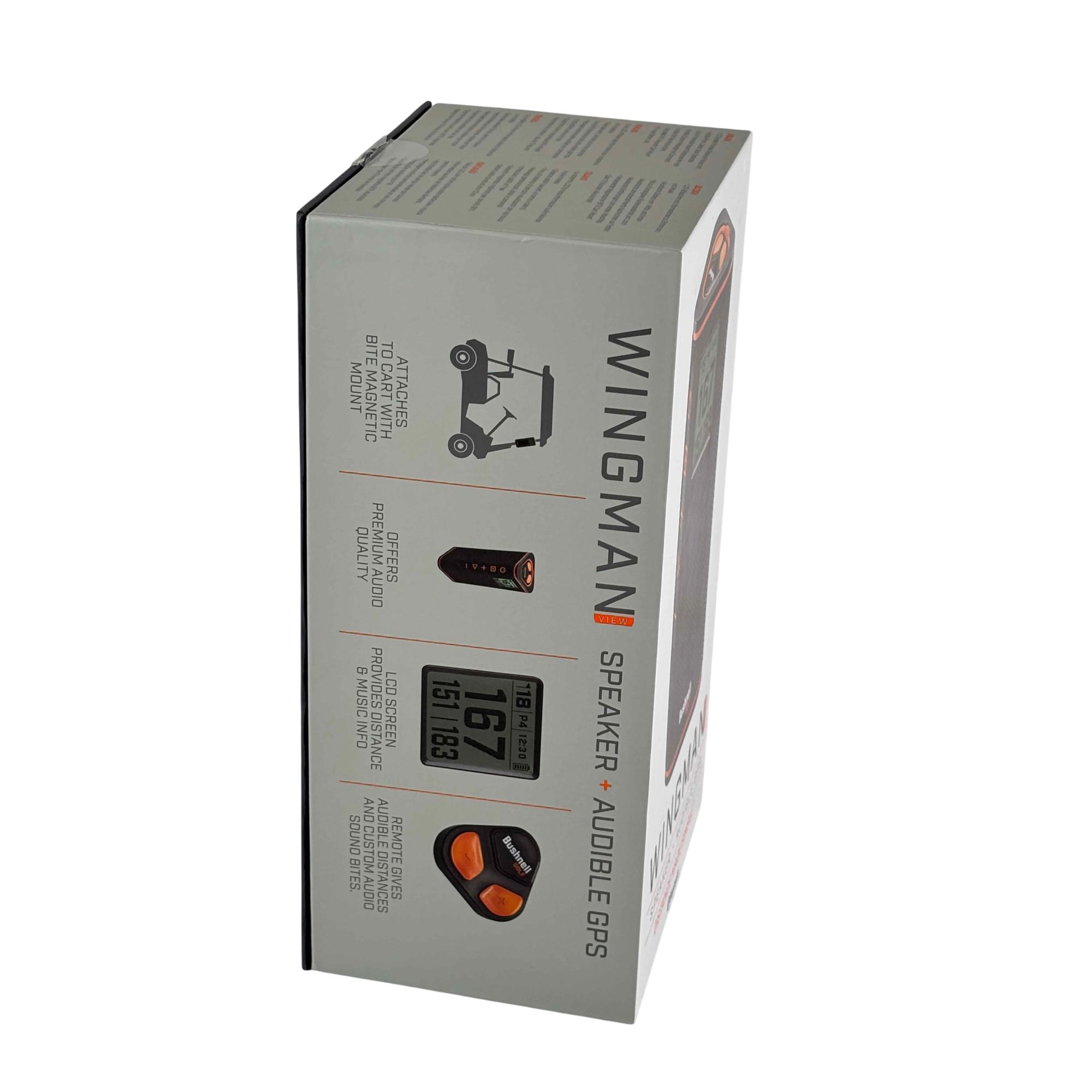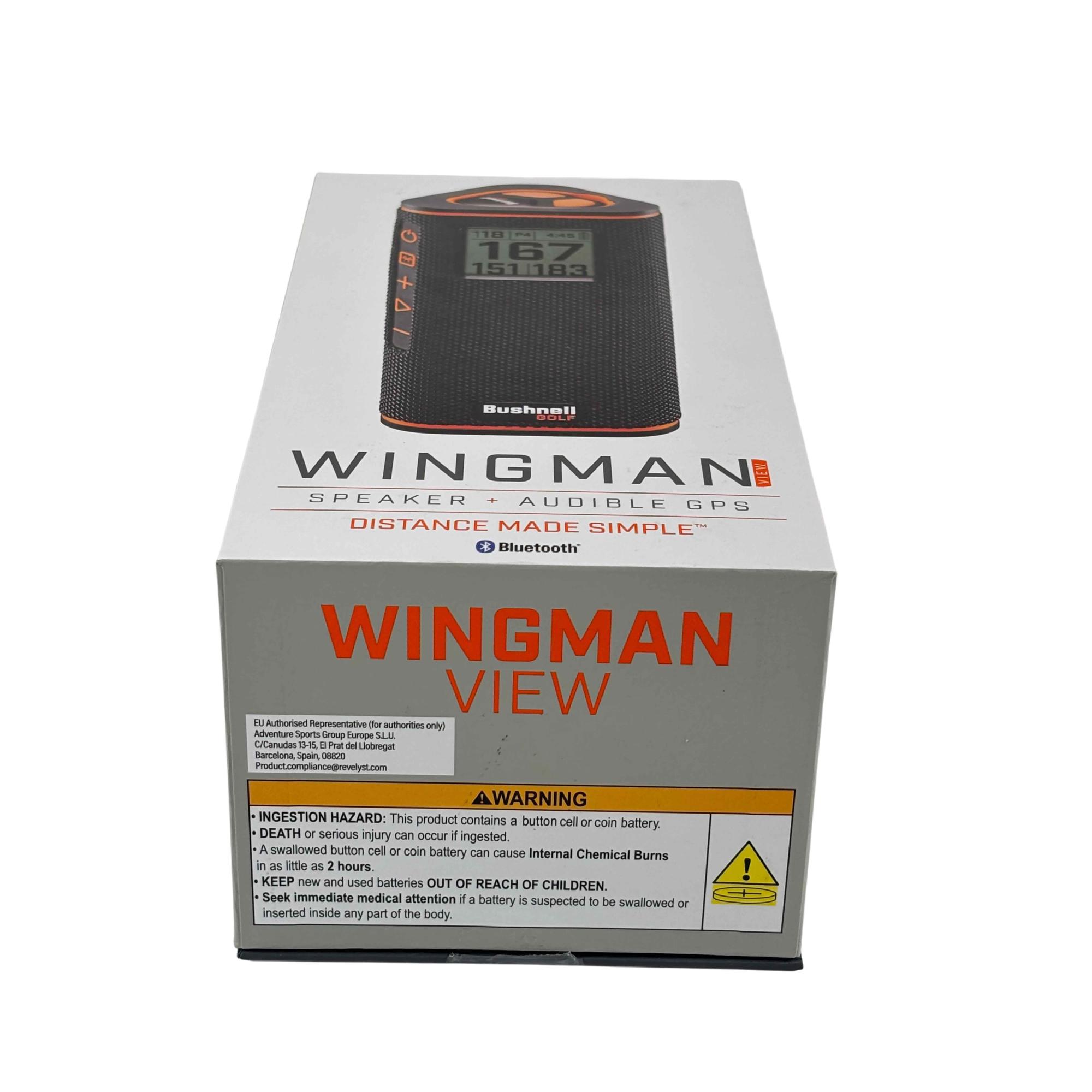 The Bushnell Wingman View combines a Bluetooth speaker with a built-in golf GPS, delivering both premium audio and on-screen distance readings. Its LCD screen shows front, center, and back yardages along with music info, while the included remote lets you hear distances and adjust volume easily. TWS pairing allows connection to a second speaker for a fuller sound experience on the course.