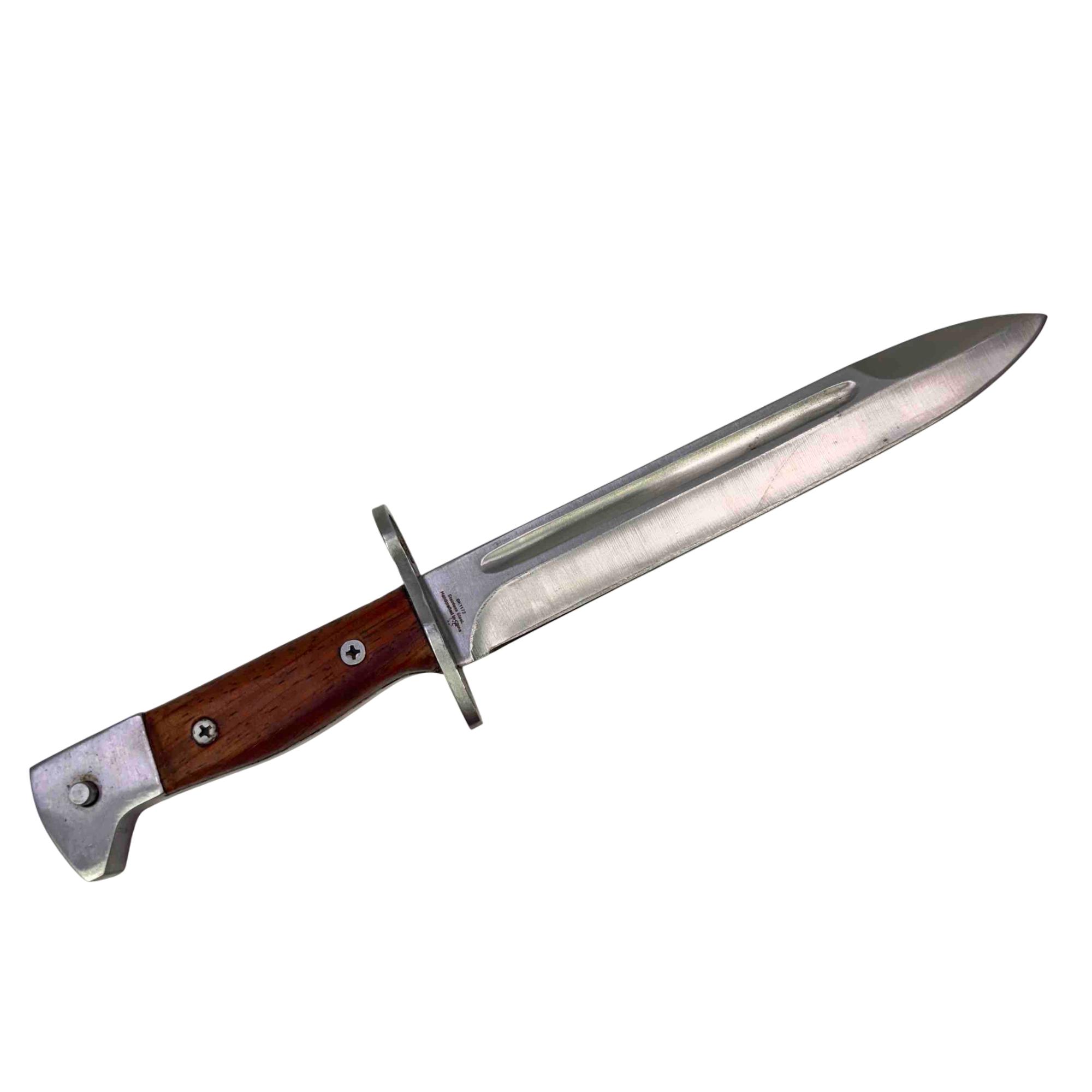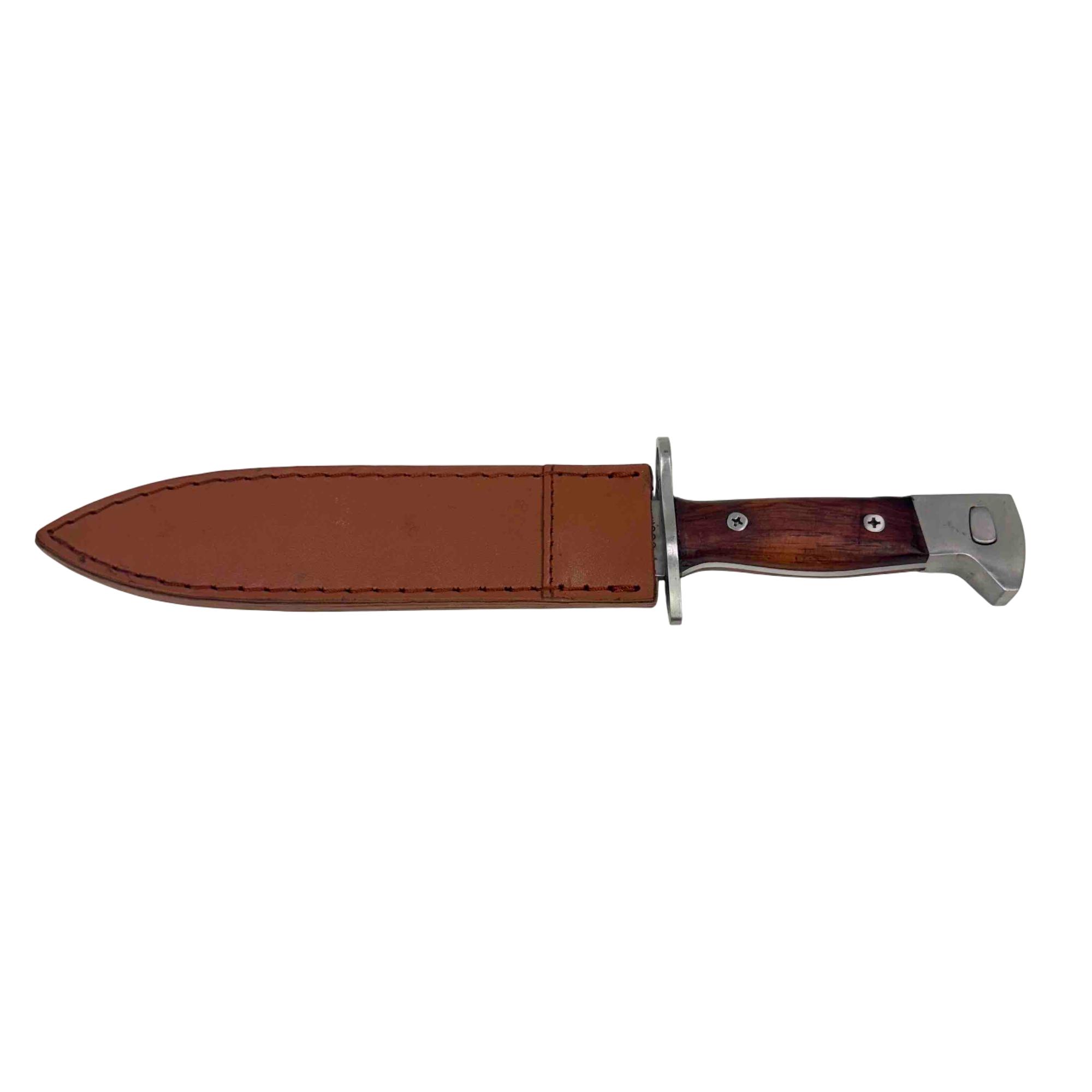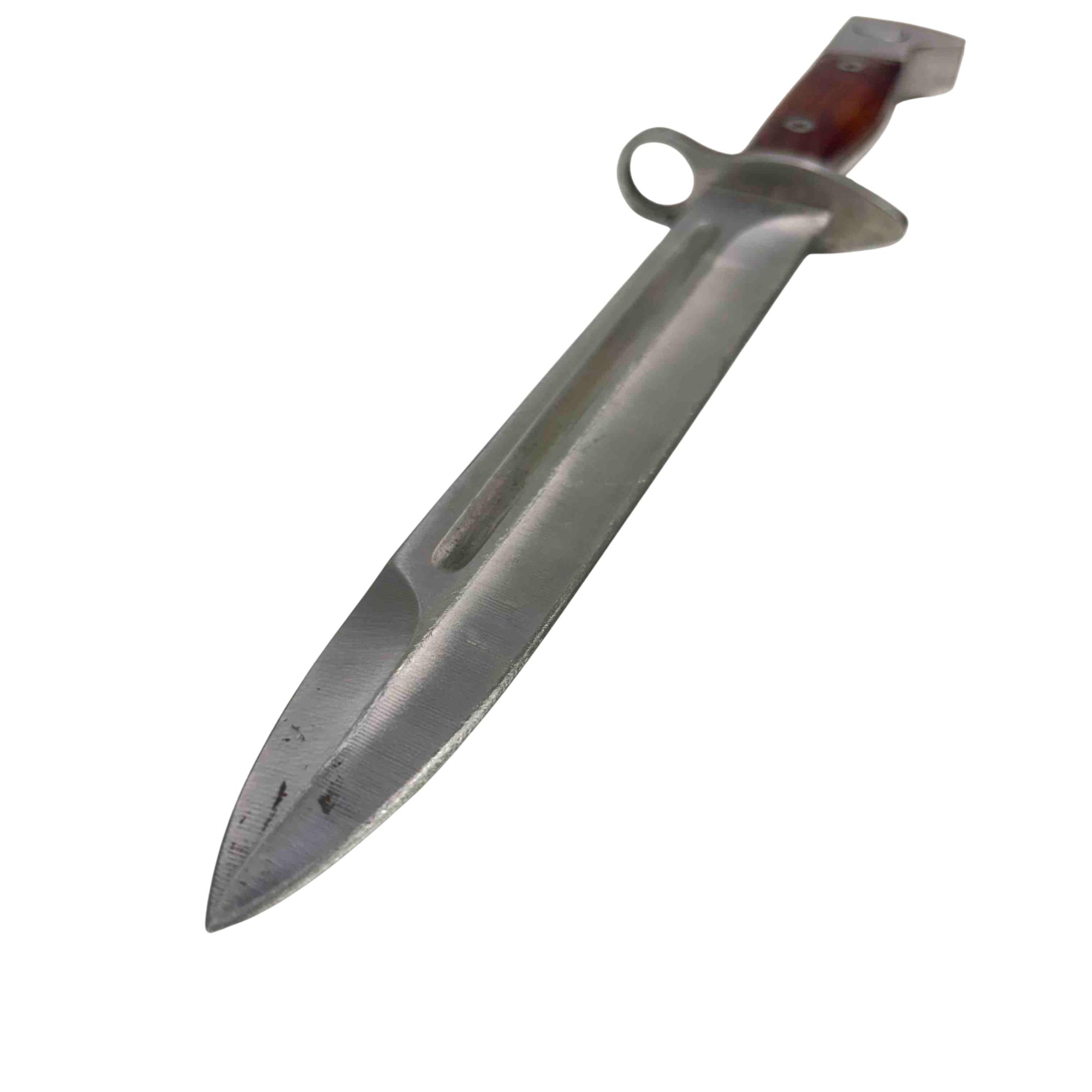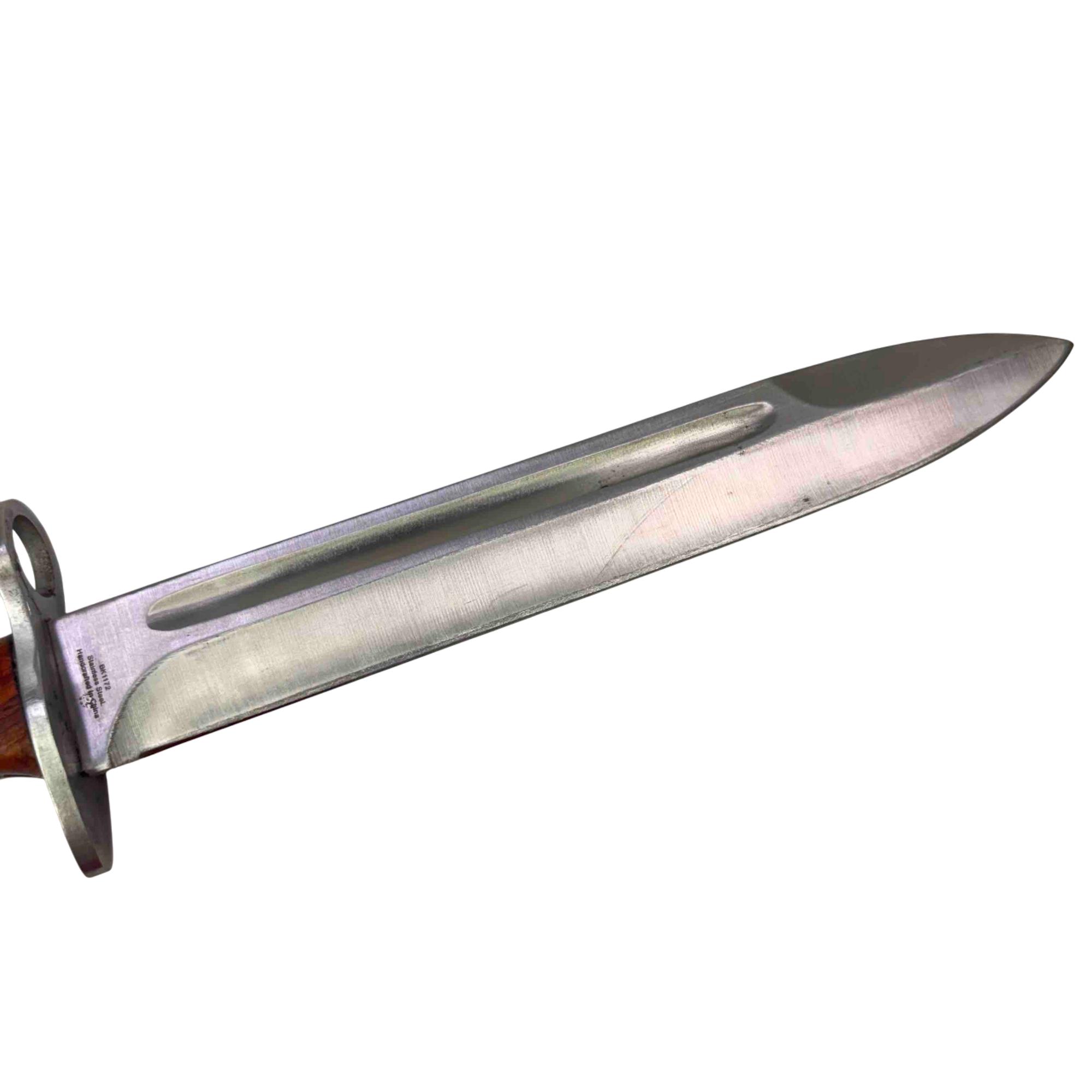 Embrace a piece of history with this CCCP AK-47 Bayonet Reproduction Knife. Meticulously crafted to resemble an iconic Cold War weapon, this knife features a striking wooden handle and comes with a durable leather sheath, making it an impressive addition to any collection. Whether for display or practical use, this reproduction knife captures the essence of the original with remarkable detail.