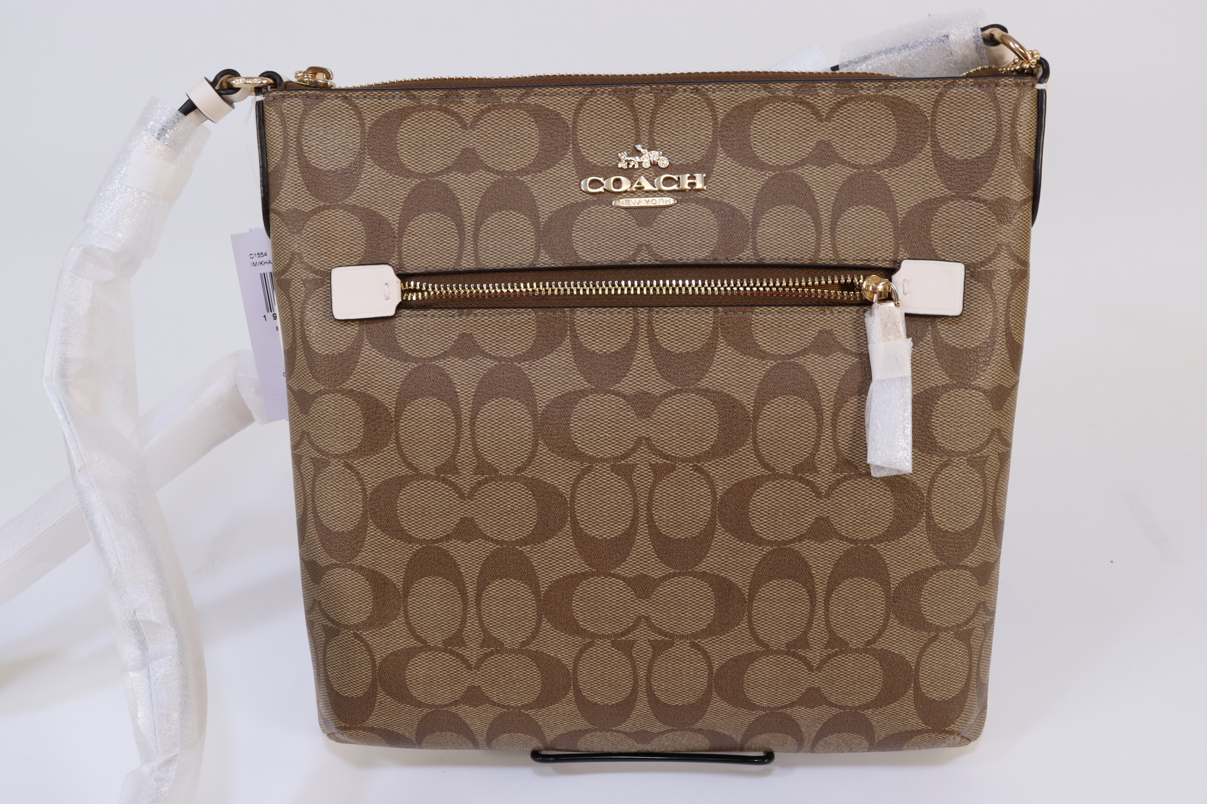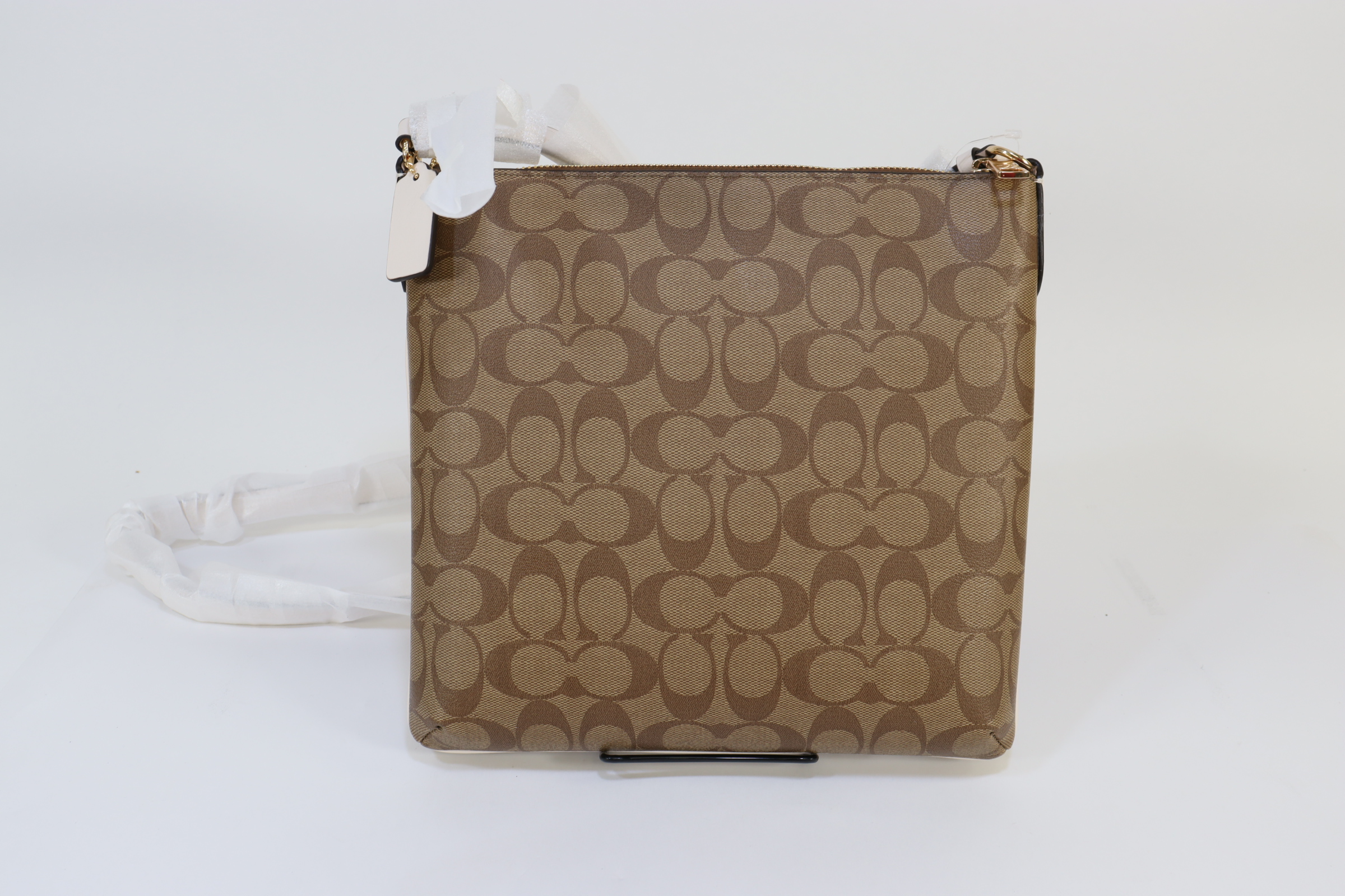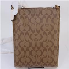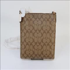 Signature coated canvas and smooth leather Inside multifunction pocket Zip-top closure, fabric lining Outside zip pocket Adjustable strap with 21 3/4" drop for shoulder or crossbody wear 10 1/4" (L) x 9 3/4" (H) x 1 1/2" (W)