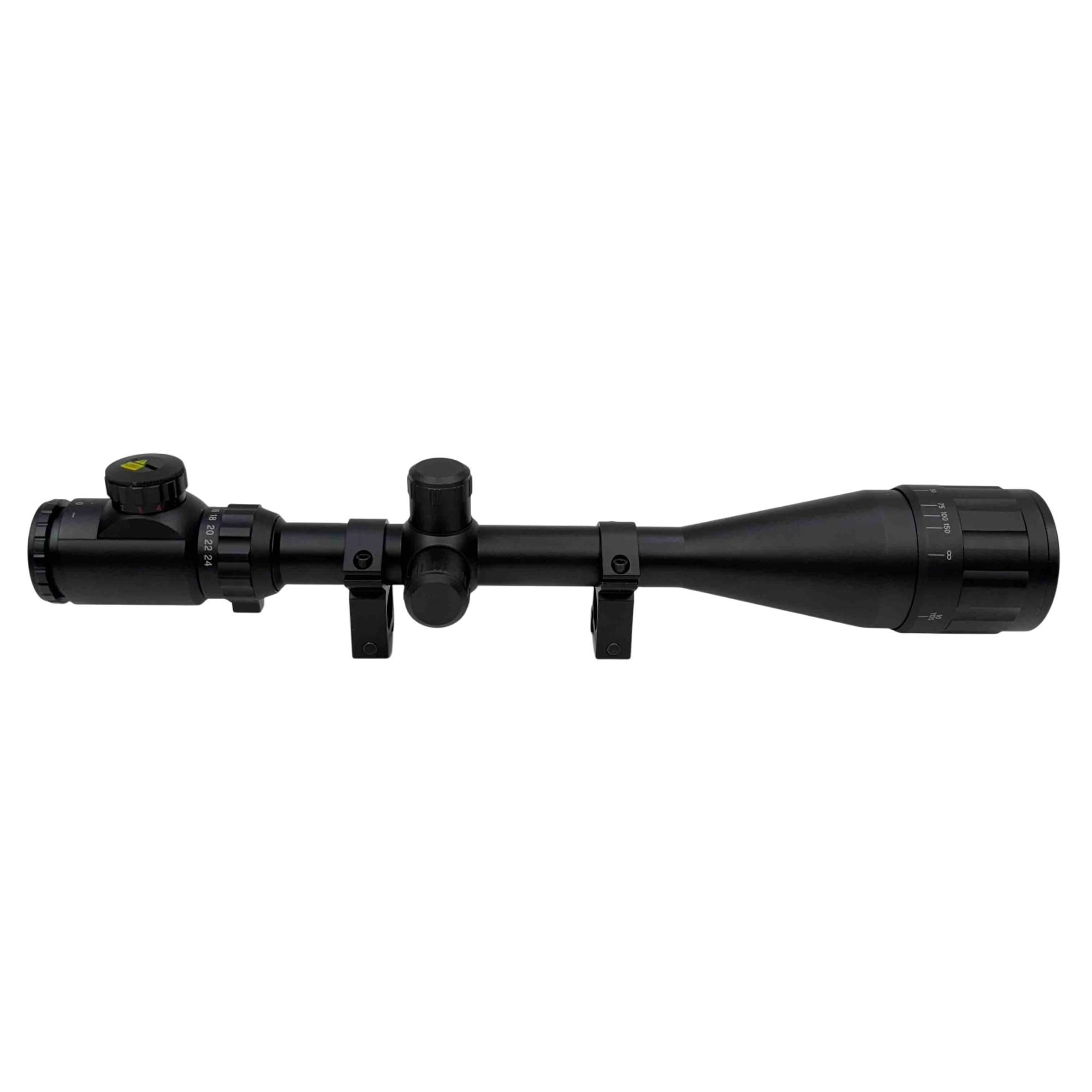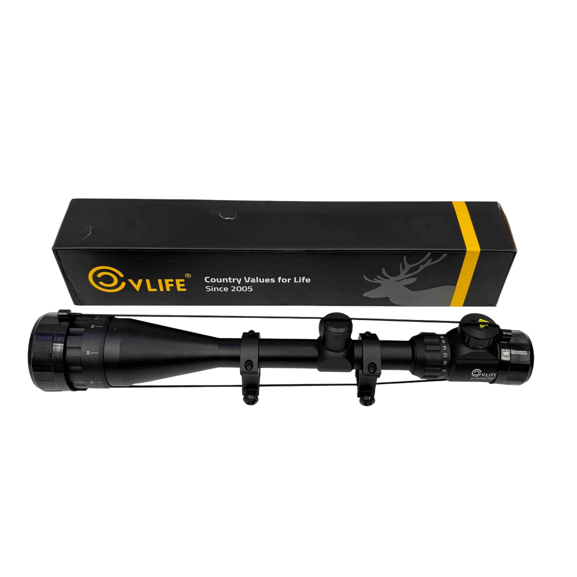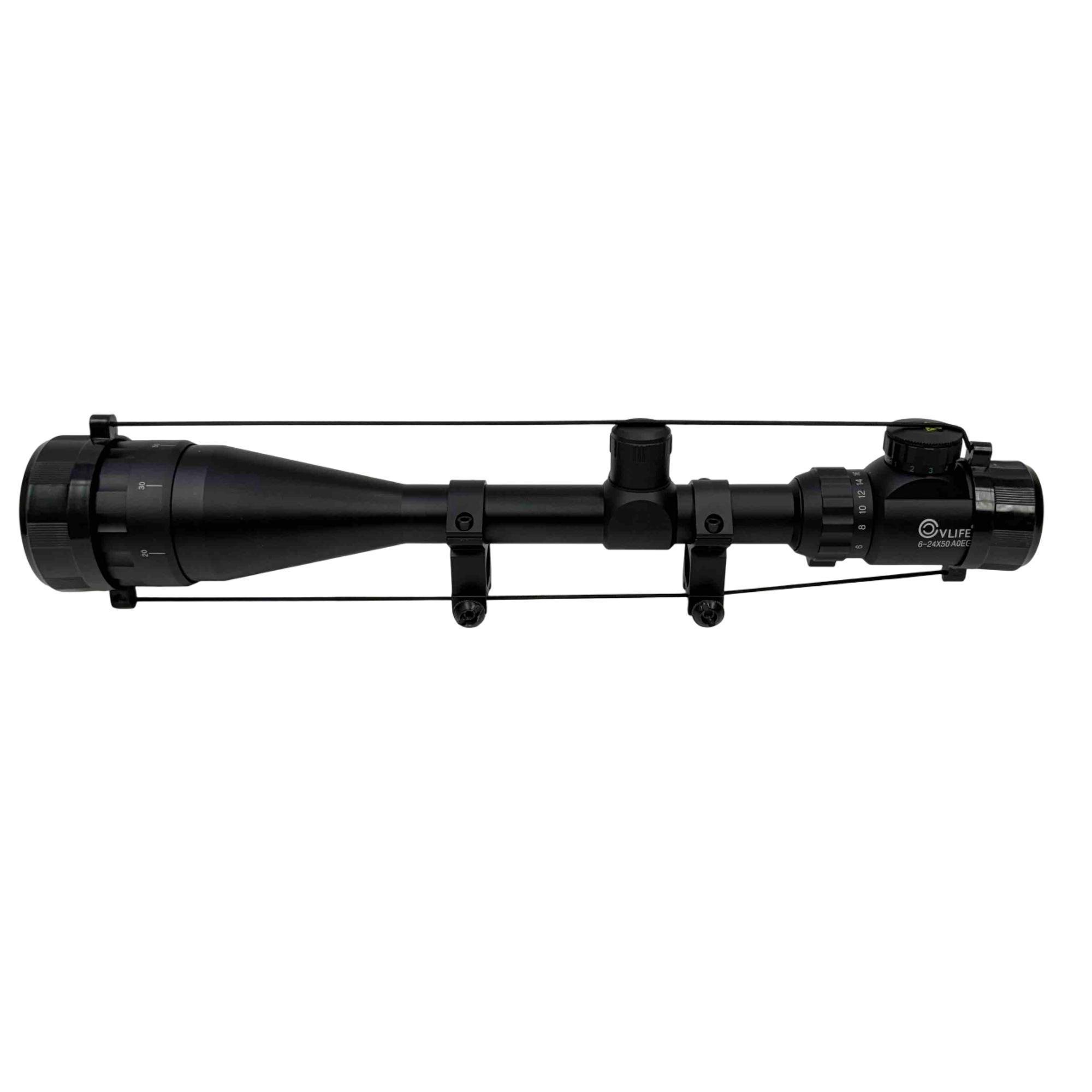 Upgrade your shooting accuracy with the CVLIFE 6-24x50 AOEG riflescope, designed for hunters and target shooters alike. Featuring adjustable magnification from 6x to 24x, this optic offers fully illuminated red and green crosshair options and a large 50mm objective lens for enhanced low-light performance. Its robust matte black finish, precision adjustment dials, and branded packaging make it a top choice for precision and reliability in the field.