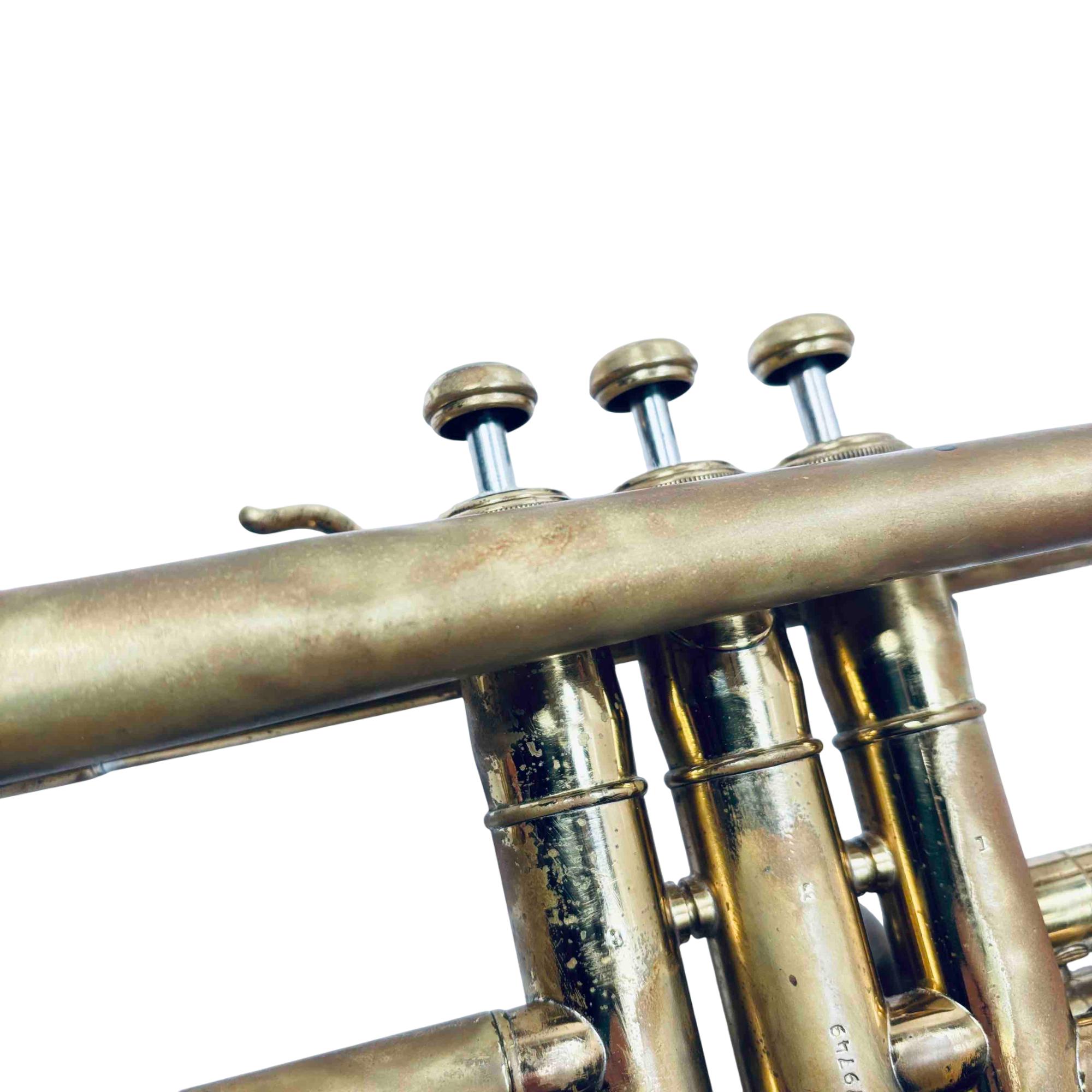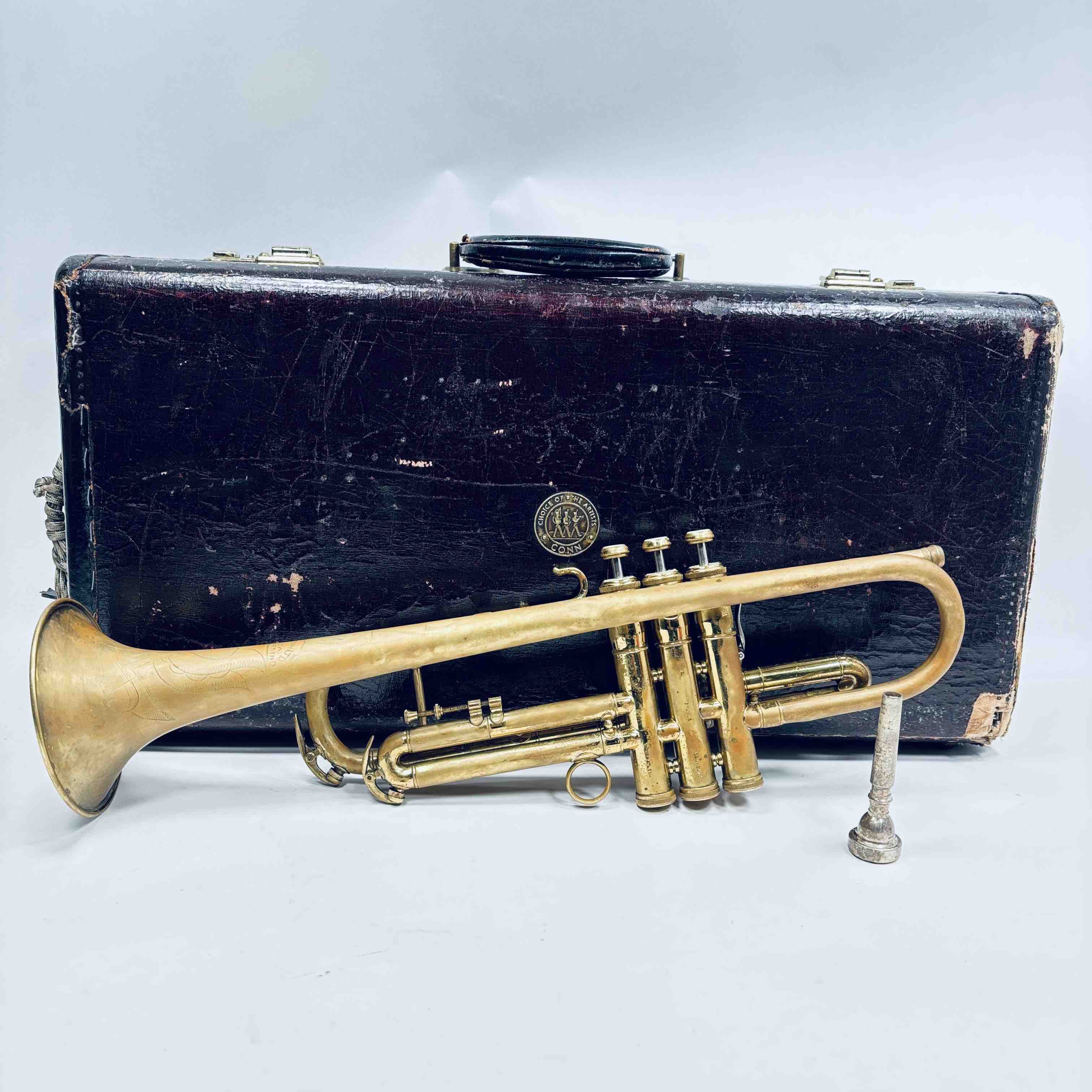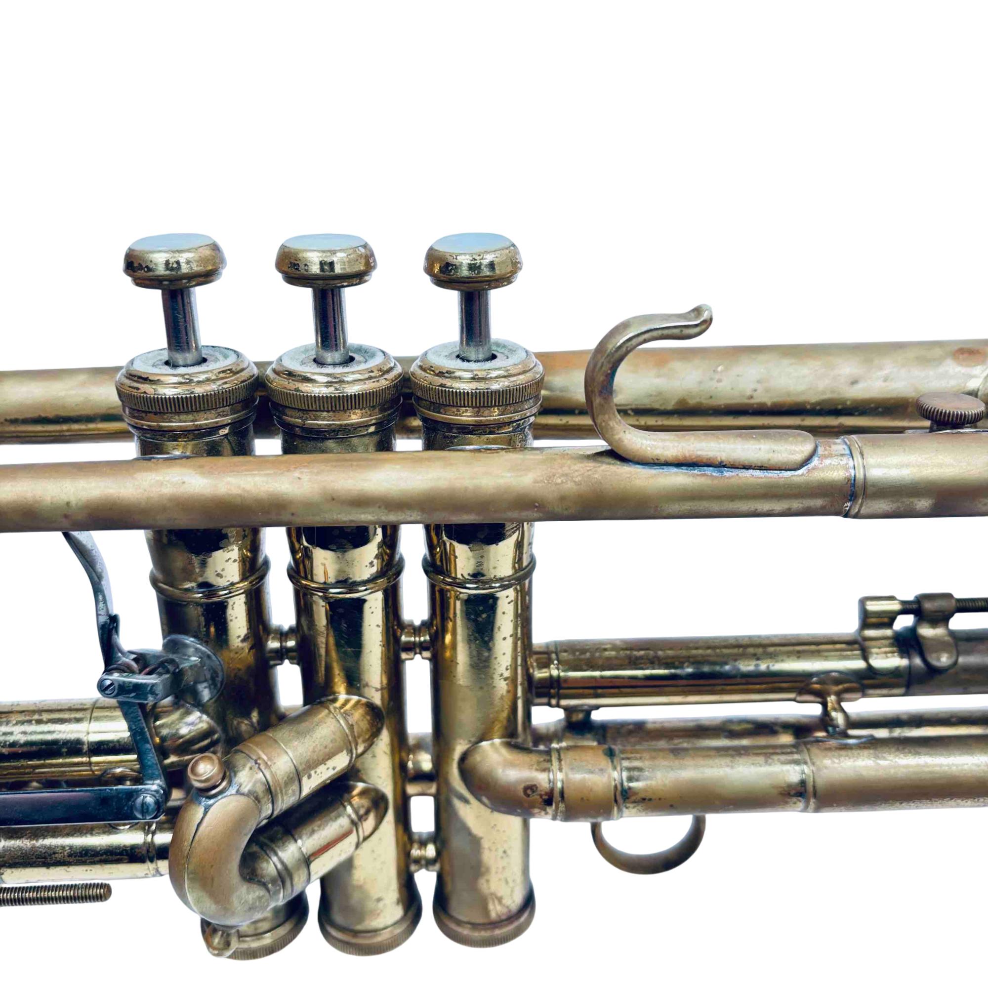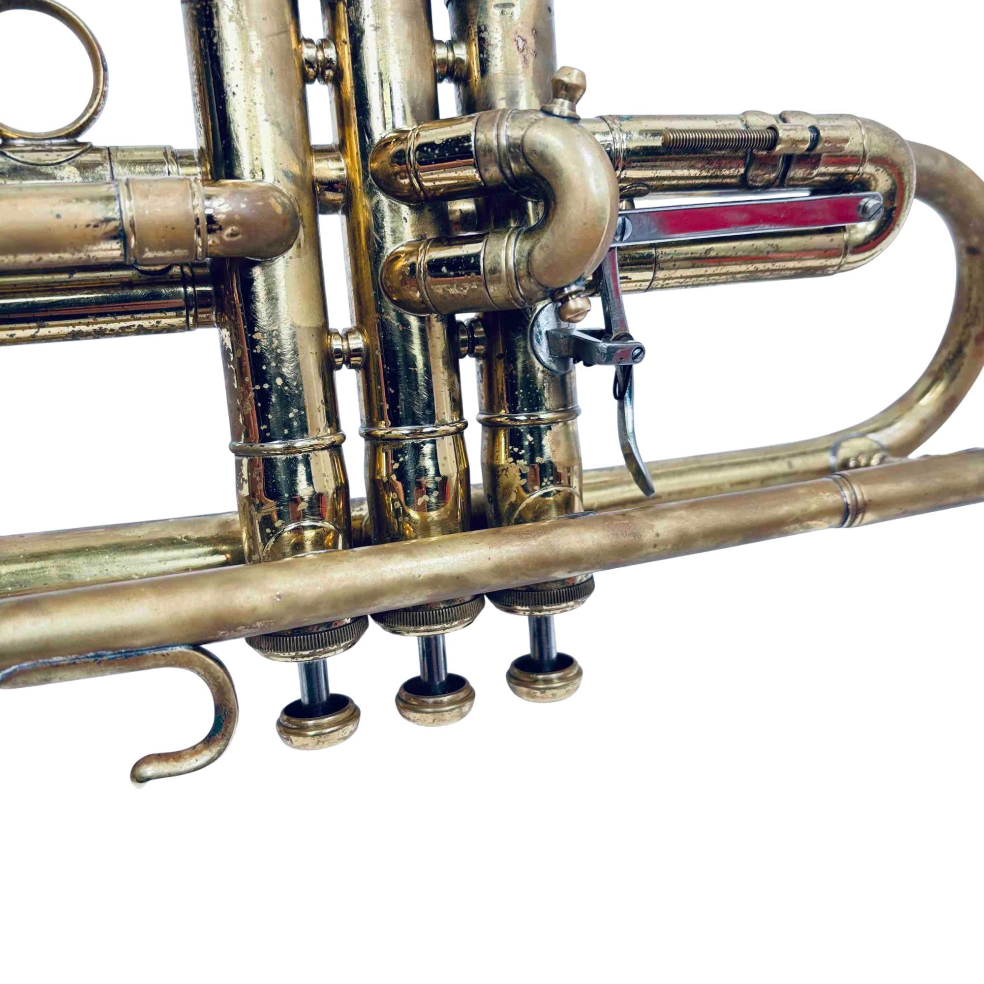 This is a classic 1948 C.G. Conn 22B trumpet, handcrafted in Elkhart, Indiana, USA. Renowned for its brilliant tone and exceptional build quality, this timeless brass instrument features intricate engraving and comes complete with its original vintage case and mouthpiece. A superb choice for collectors, vintage enthusiasts, or musicians seeking a trumpet with pedigree and character.