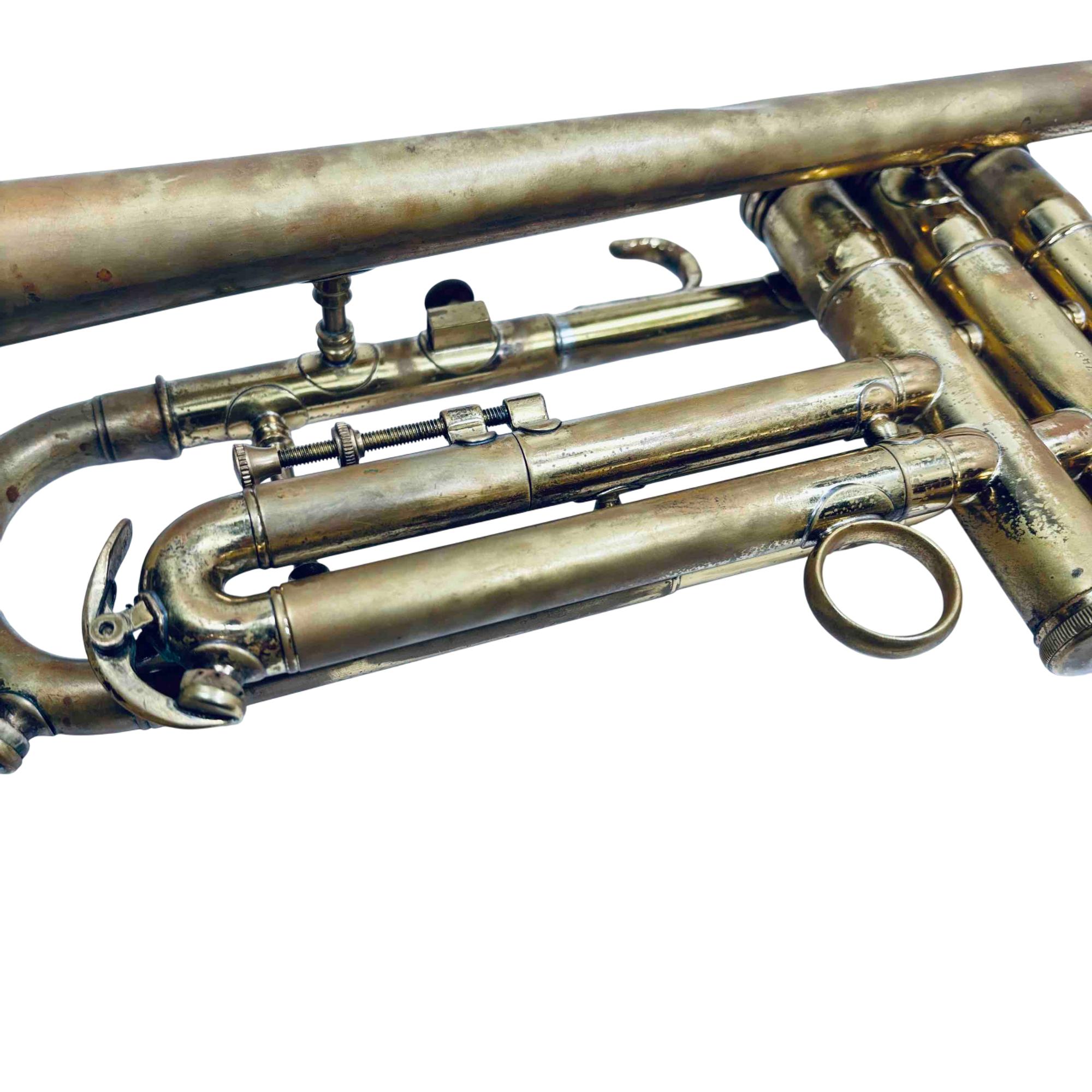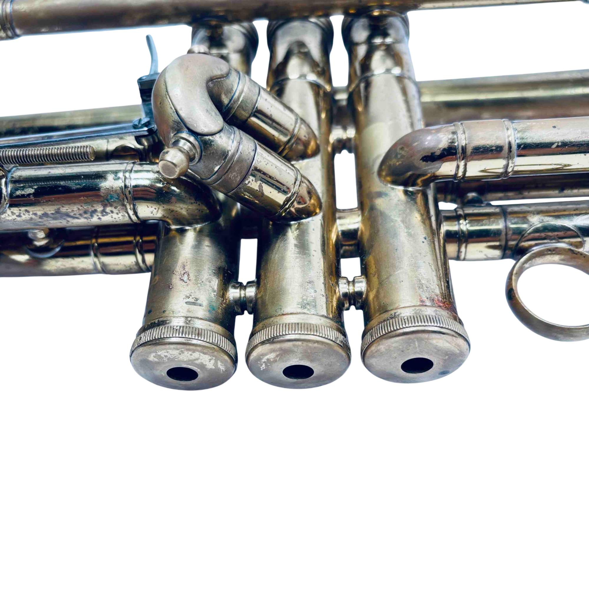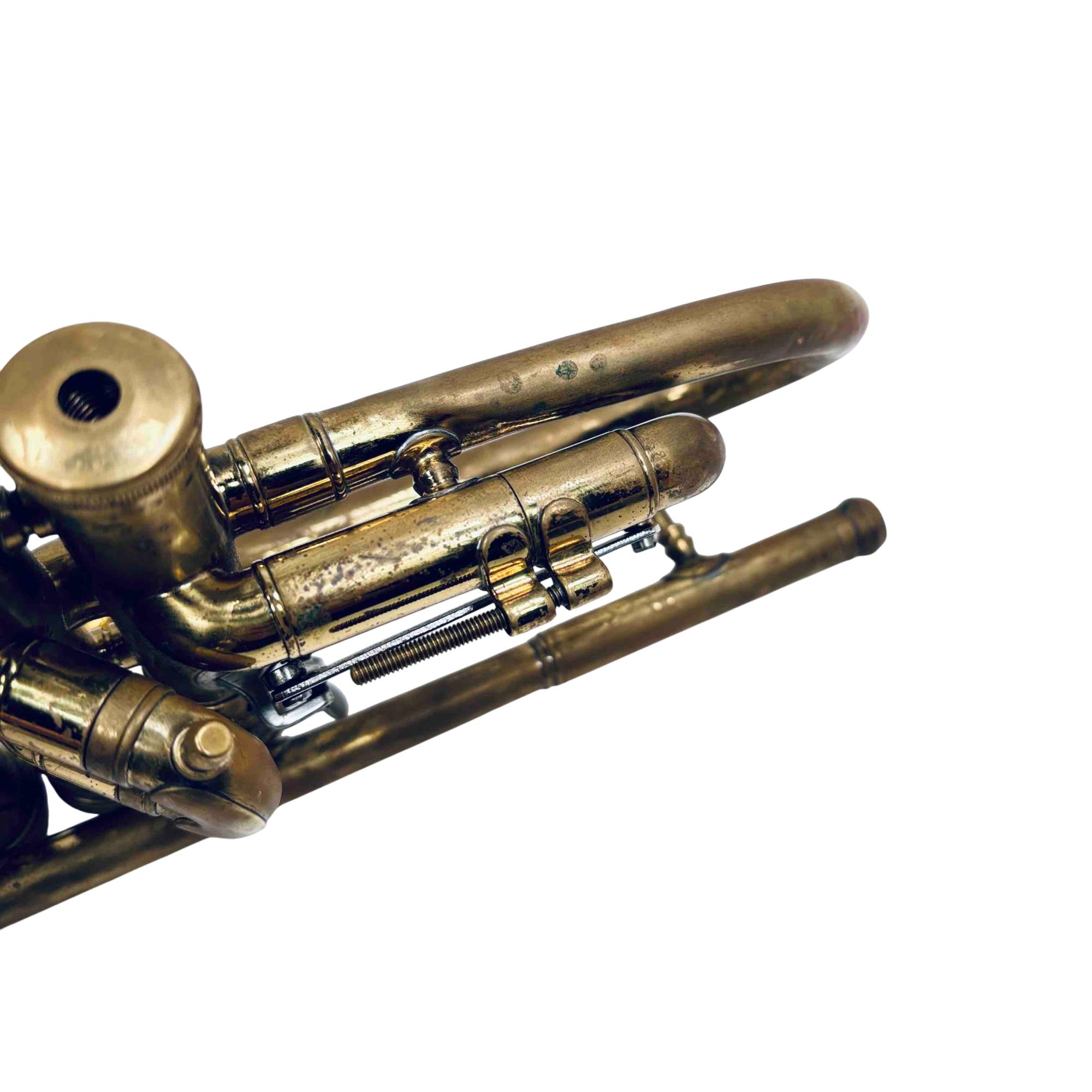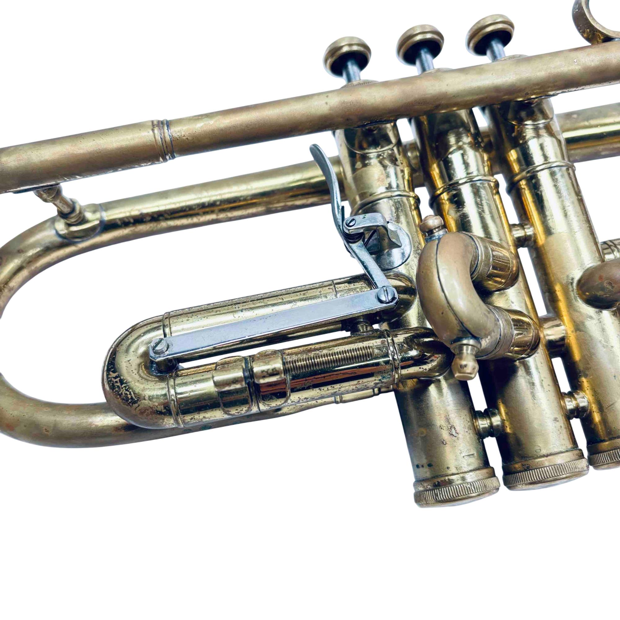 This is a classic 1948 C.G. Conn 22B trumpet, handcrafted in Elkhart, Indiana, USA. Renowned for its brilliant tone and exceptional build quality, this timeless brass instrument features intricate engraving and comes complete with its original vintage case and mouthpiece. A superb choice for collectors, vintage enthusiasts, or musicians seeking a trumpet with pedigree and character.