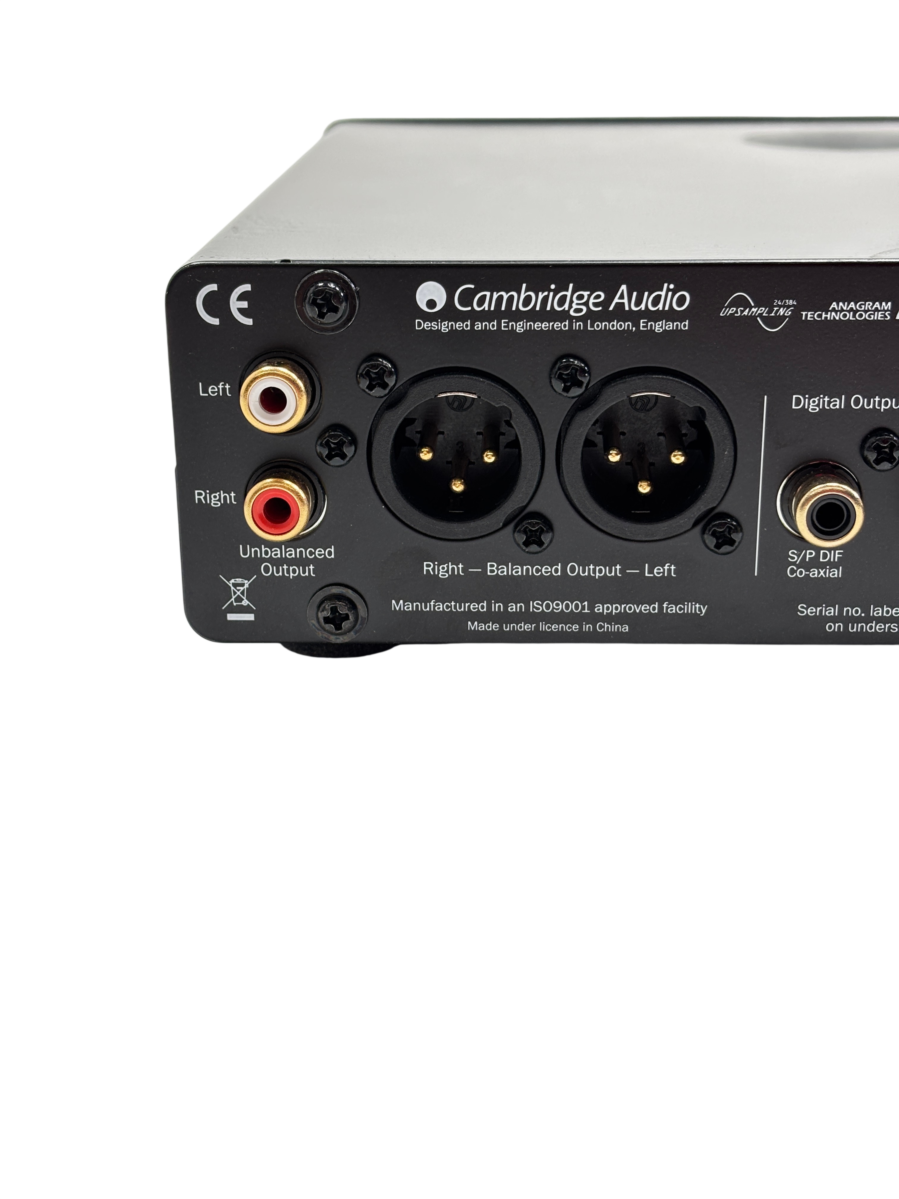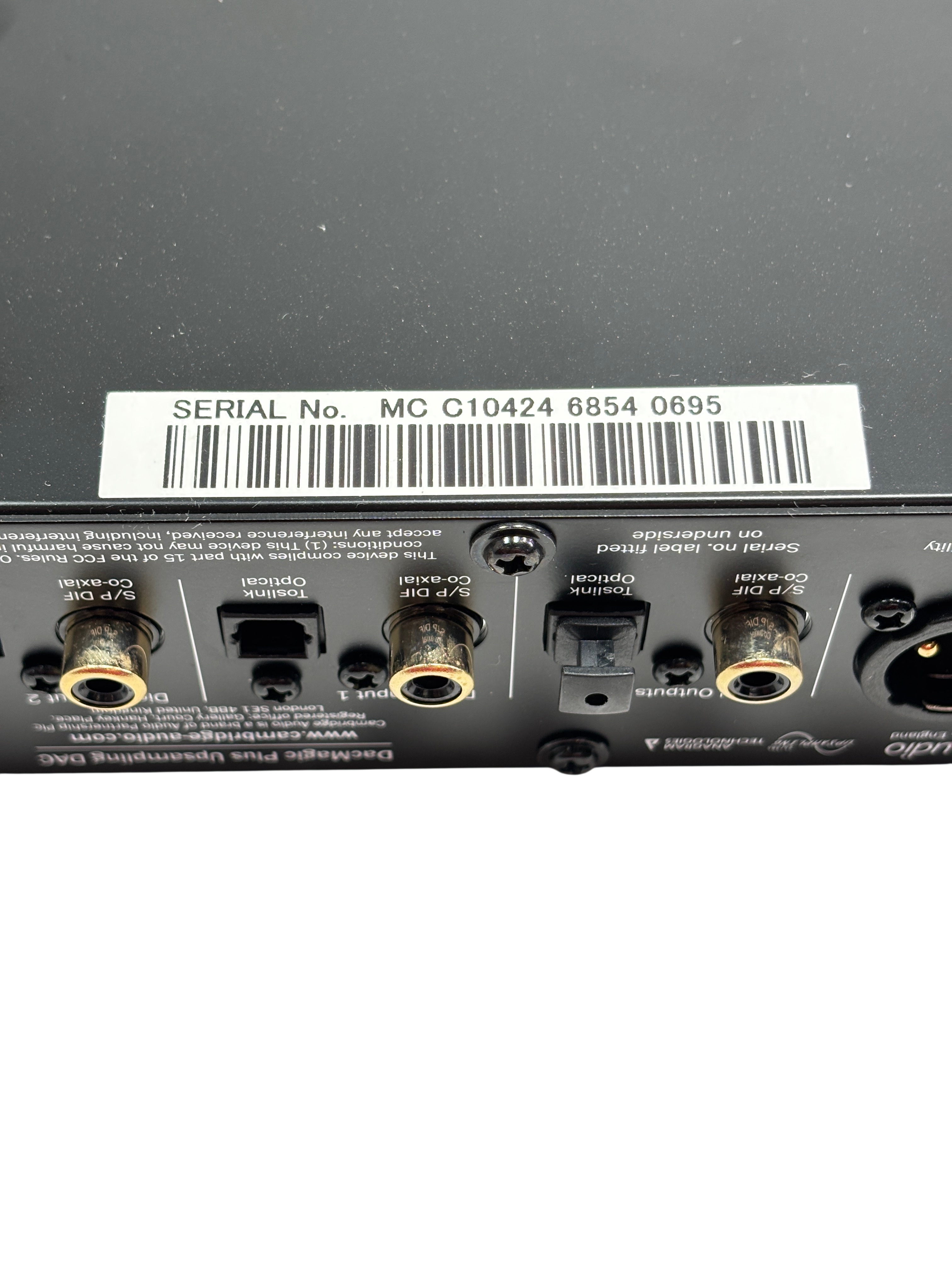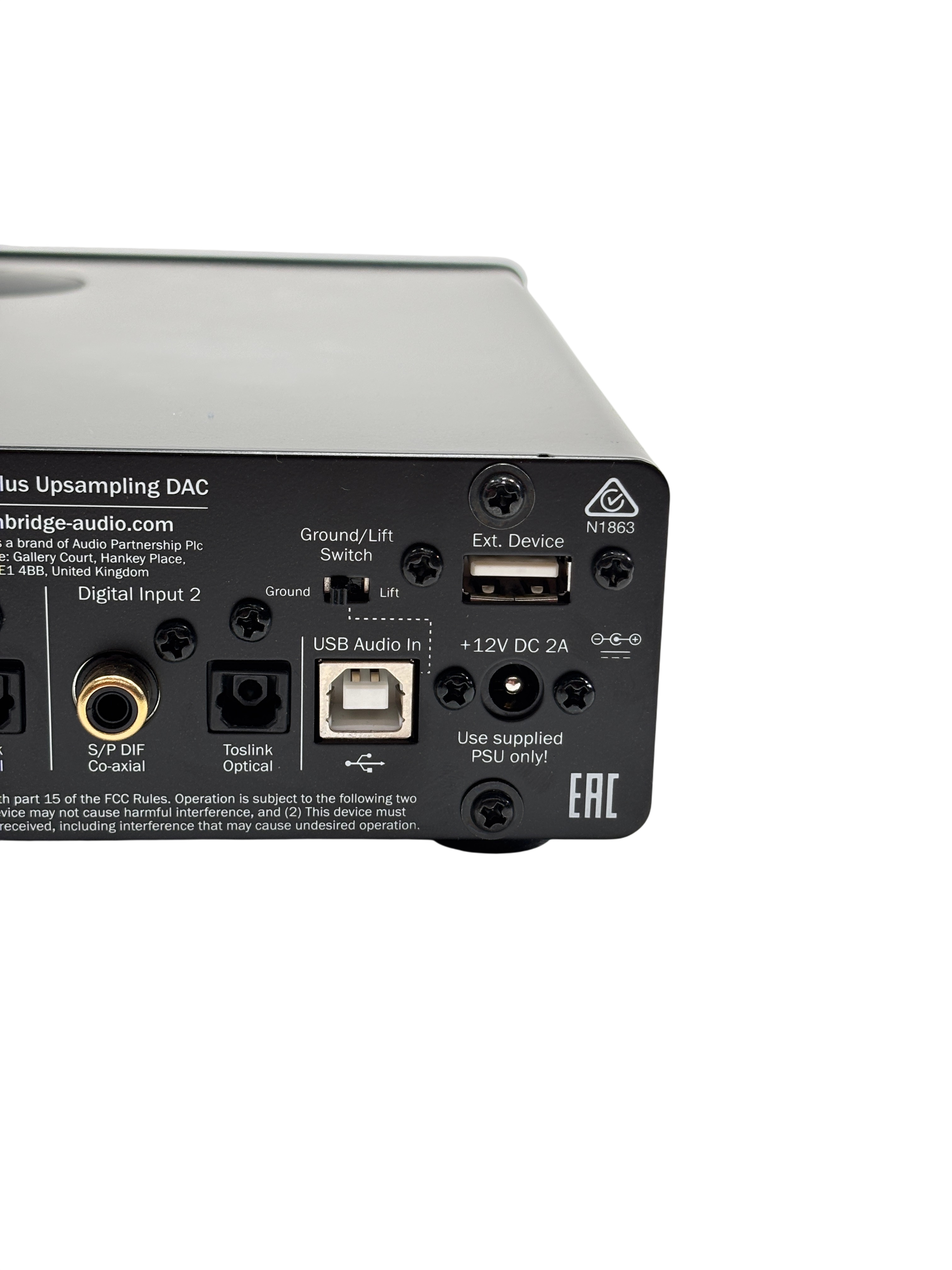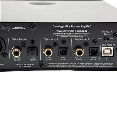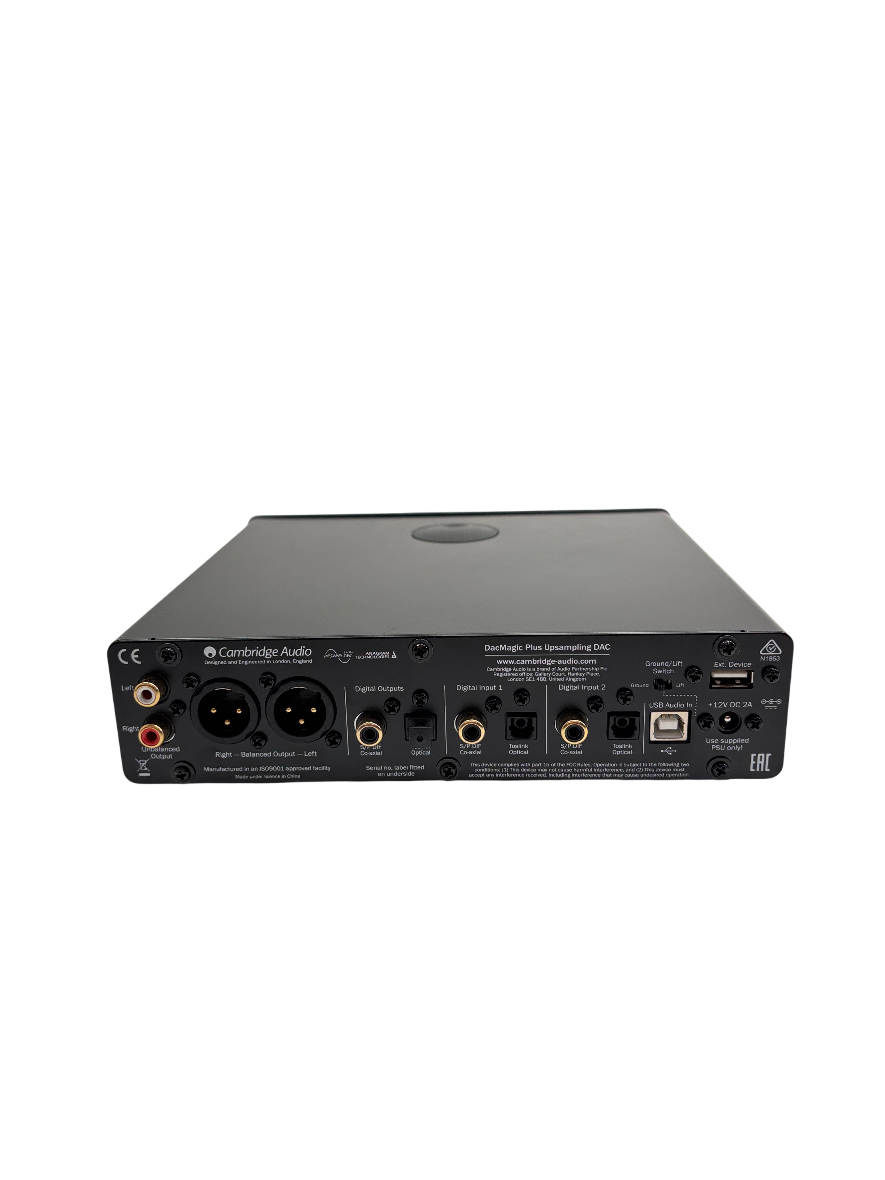 The Cambridge Audio DacMagic Plus Upsampling DAC is a high-quality digital to analog converter designed to enhance your audio experience. Featuring multiple digital inputs including USB, coaxial, and optical, this DAC supports high-resolution audio up to 192 kHz. It includes a ground/lift switch to reduce interference, a headphone output with volume control, and filter/phase adjustment options. Ideal for audiophiles seeking improved sound quality from digital sources.