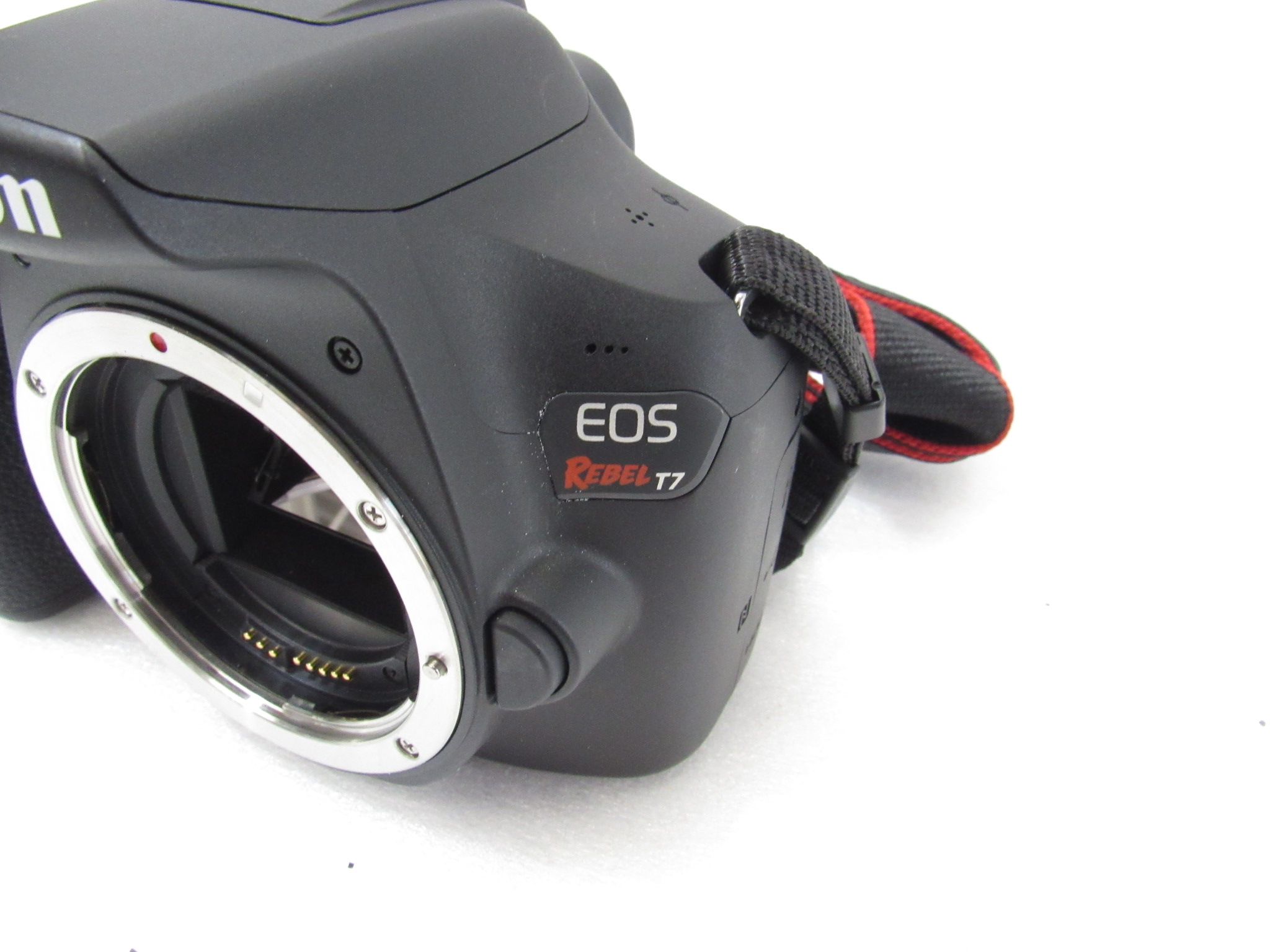 A sleek entry-level DSLR featuring versatile imaging capabilities and a helpful feature-set. Incorporating a 24.1MP APS-C CMOS sensor and DIGIC 4+ image processor, the T7 produces high-resolution stills with notable clarity, reduced noise, and a flexible native sensitivity range from ISO 100-6400 for working in a variety of lighting conditions. The sensor and processor also afford shooting continuously at up to 3 fps for photographing moving subjects, as well as Full HD 1080/30p video recording.