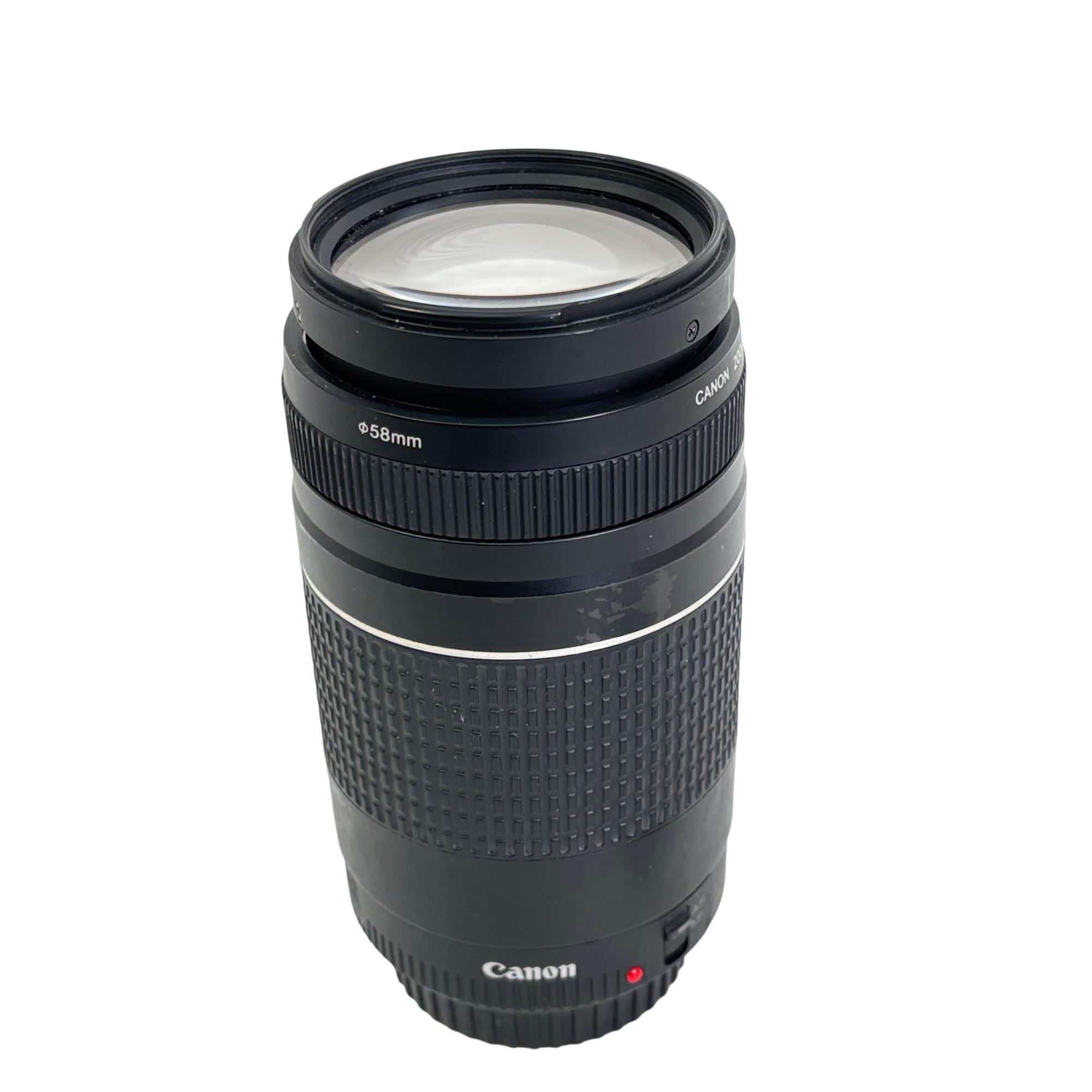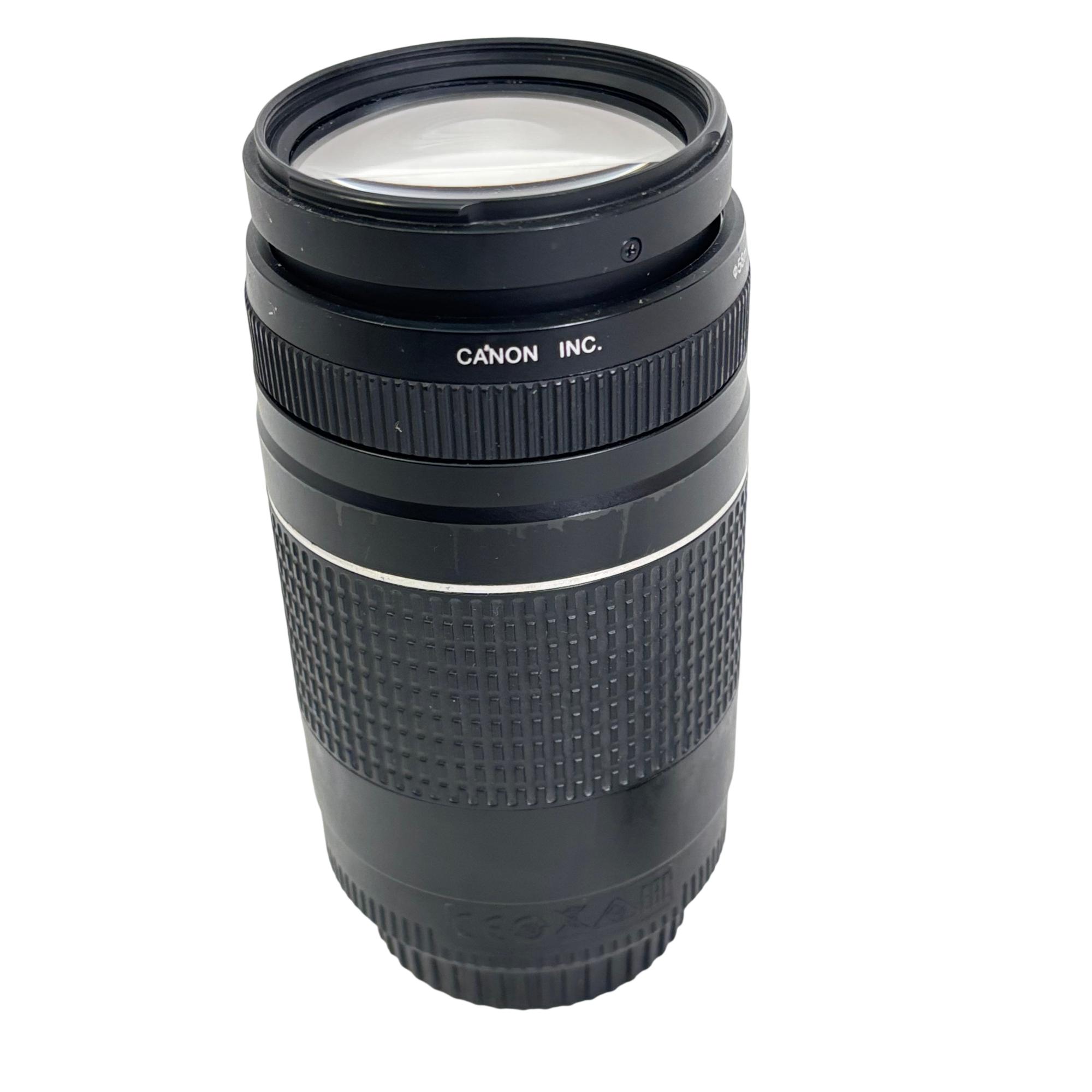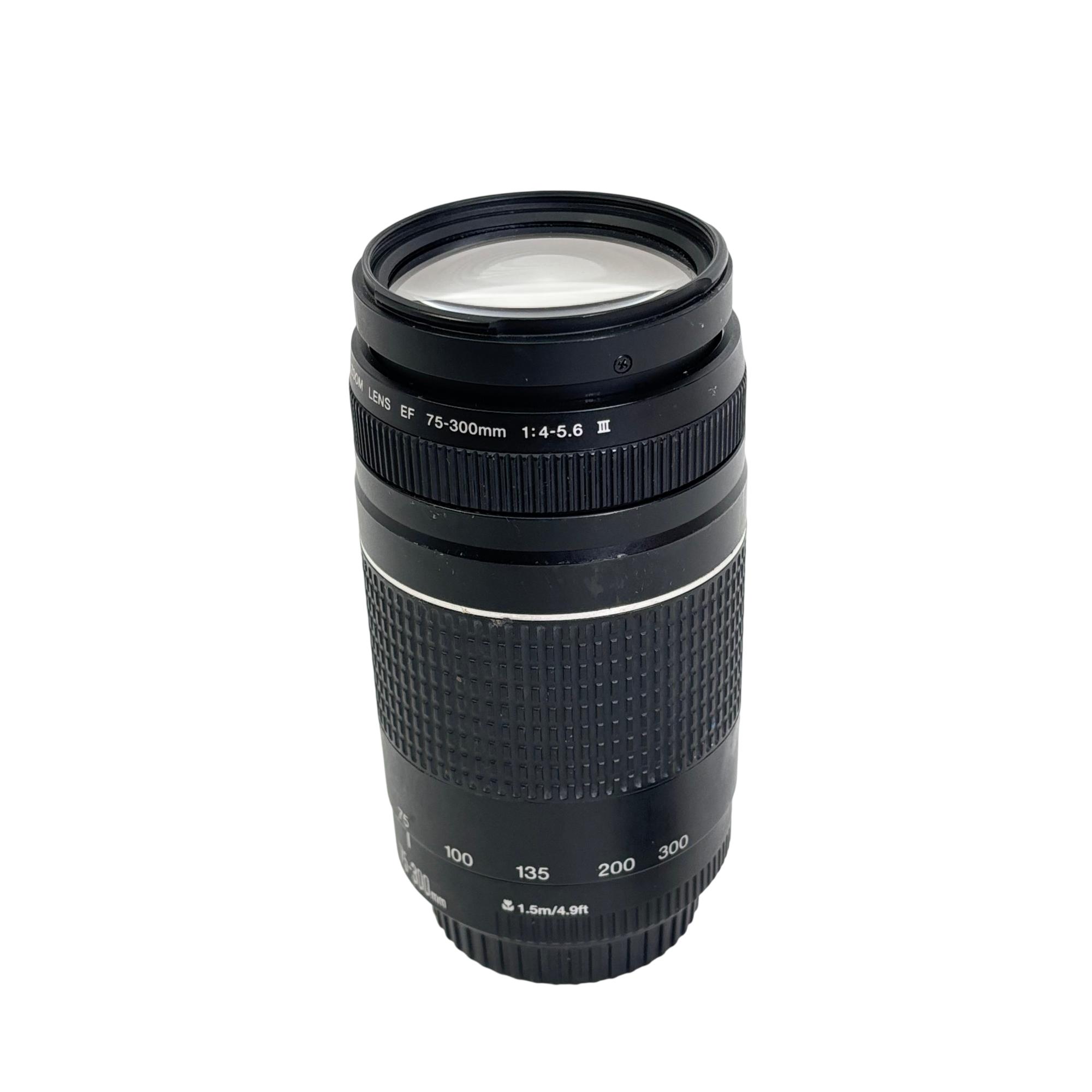 Canon EF 75-300mm f/4-5.6 III Telephoto Zoom Lens offers versatile focal length coverage suitable for capturing distant subjects with clarity. Designed for EOS DSLR cameras, this lens features a variable aperture and zoom range that enables detailed telephoto photography, making it ideal for wildlife, sports, and portrait photography.