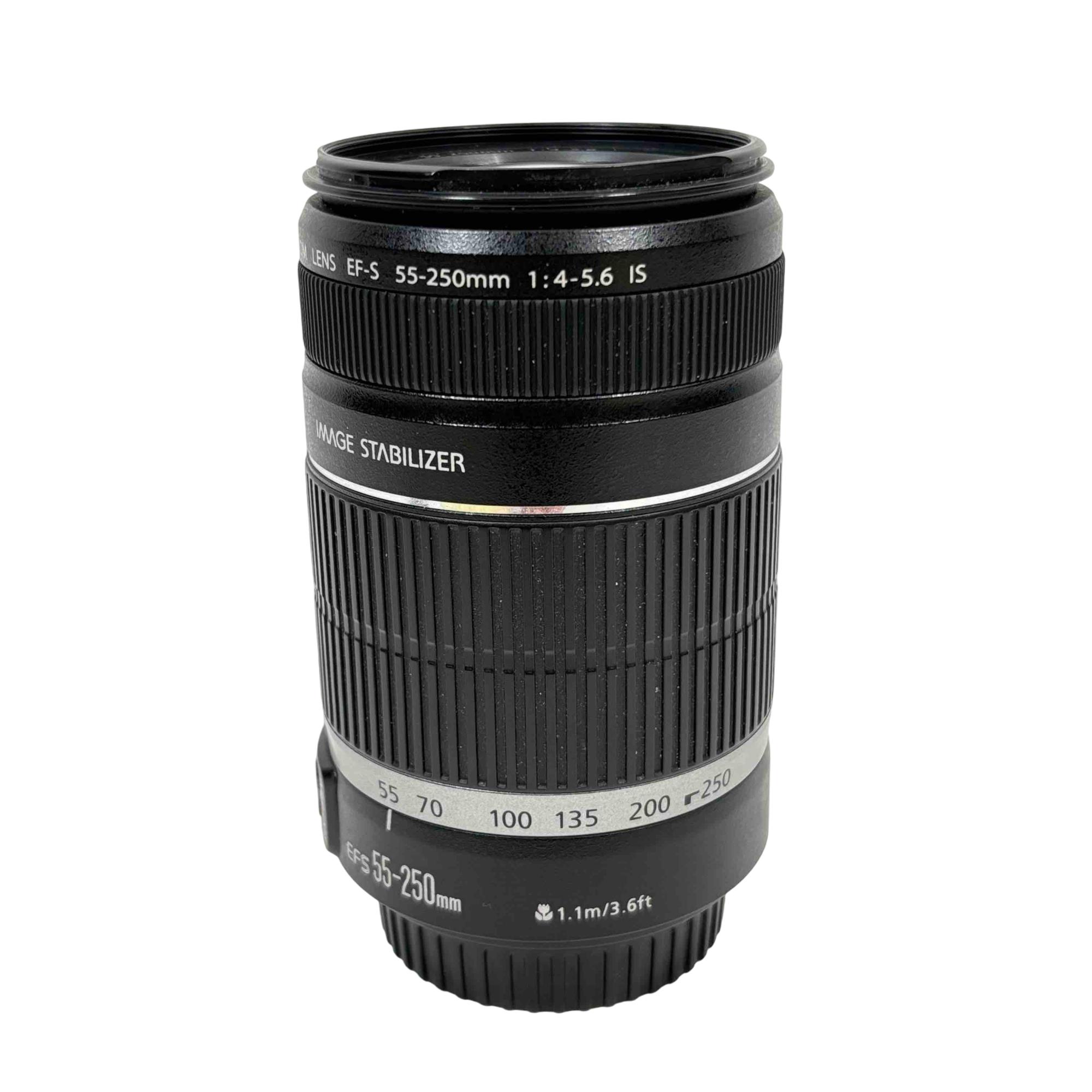 Expand your photographic versatility with the Canon EF-S 55-250mm f/4-5.6 IS, an image-stabilized telephoto zoom lens designed for Canon DSLR cameras with EF-S mounts. With a powerful 55-250mm focal range and advanced image stabilization, this lens is perfect for capturing sharp, clear images from a distance, whether youre photographing wildlife, sports, or travel scenes. The included Canon lens cap helps protect your investment, making this lightly used lens the ideal choice for photographers seeking quality, performance, and value.