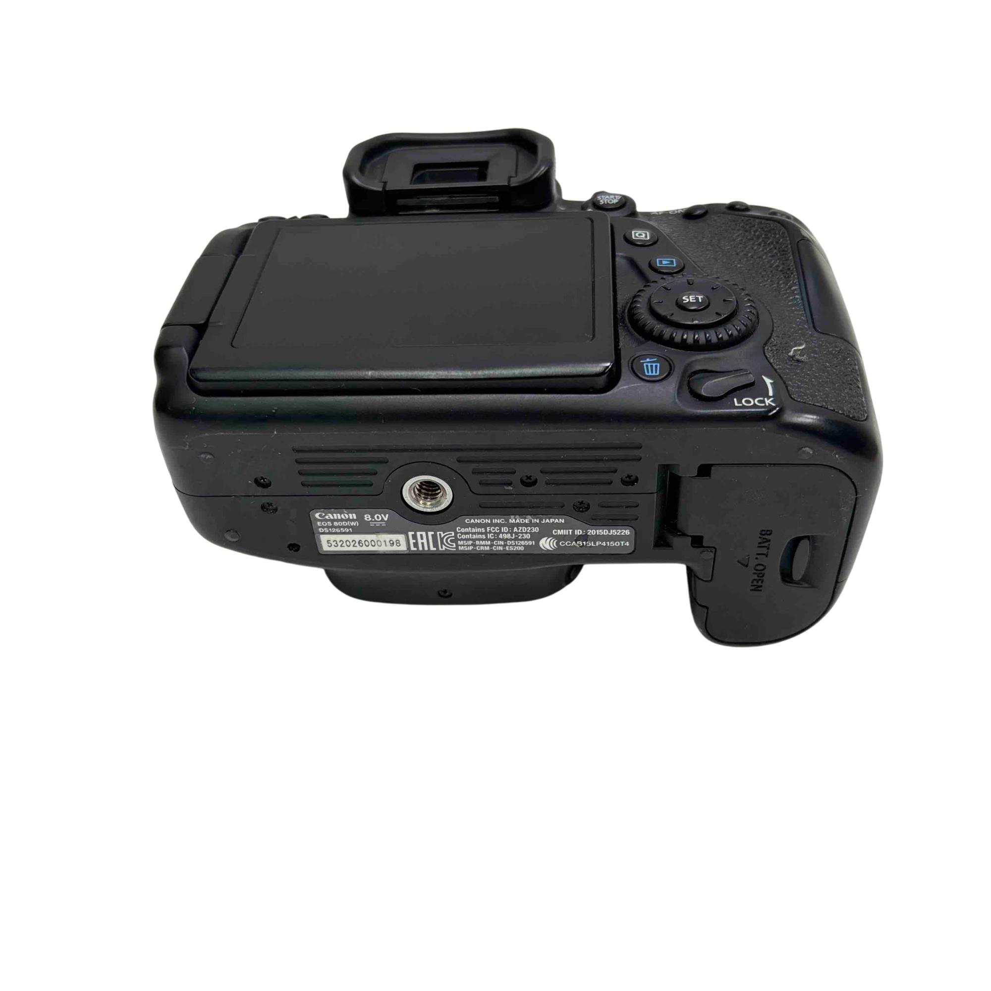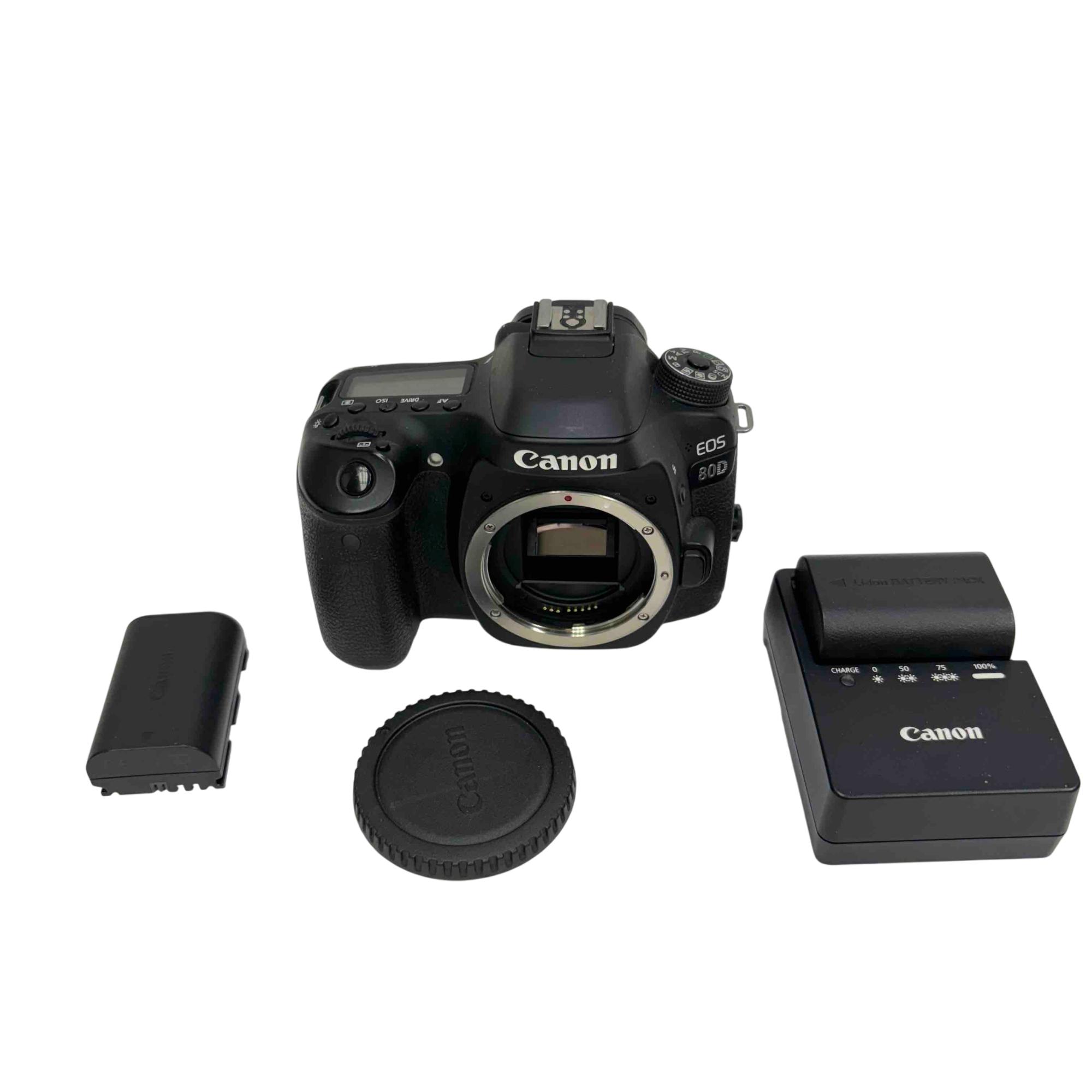 Capture your world with the Canon EOS 80D DSLR Camera. This powerful camera comes with a battery, charger, and lens cap, perfect for photography enthusiasts looking to take their craft to the next level. Its advanced features and ergonomic design make it a reliable tool for both amateur and professional photographers.