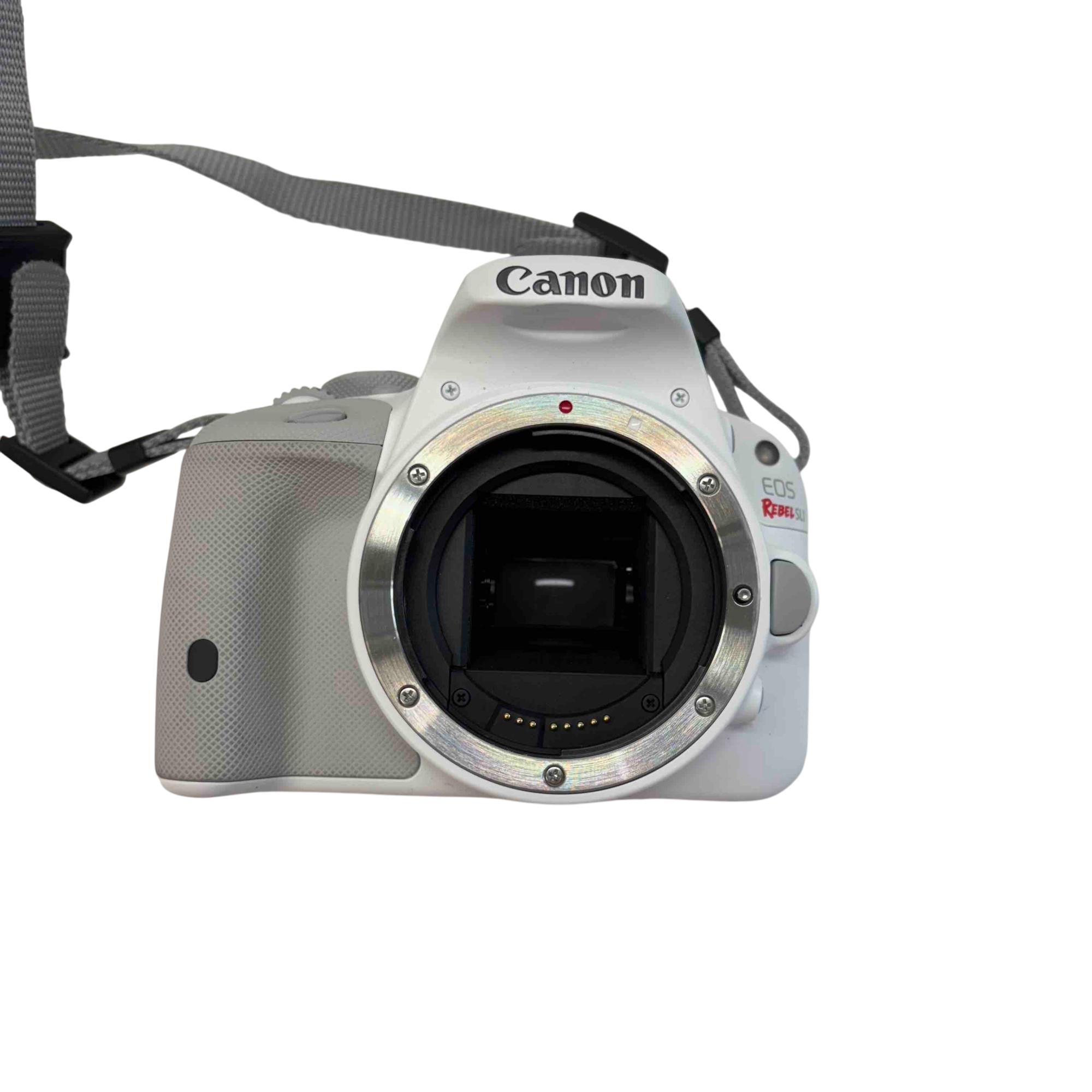 Canon EOS Rebel SL1 Digital SLR Camera with EF-S 18-55mm f/3.5-5.6 IS STM Lens in white offers a compact design combined with advanced imaging capabilities. This DSLR features image stabilization and a versatile zoom lens ideal for capturing sharp, high-quality photos and videos in various settings. It is designed for both amateur and enthusiast photographers seeking flexibility and ease of use in a lightweight body.