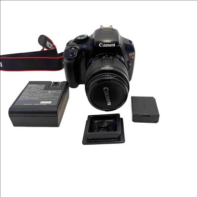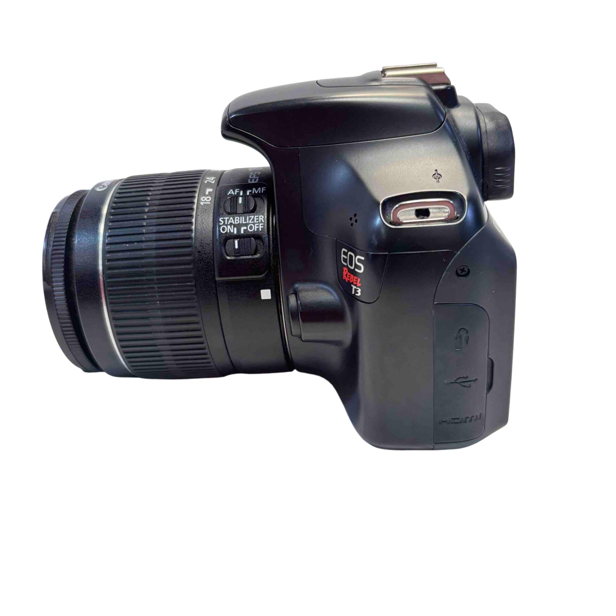 The Canon EOS Rebel T3 Digital SLR Camera features a 12.2-megapixel CMOS sensor and DIGIC 4 image processor for high-quality photos and Full HD video recording. This DSLR includes a vari-angle 3-inch LCD screen, Creative Auto mode, and standard settings like ISO control and background blur for versatile shooting options. The package comes complete with a battery and LC-E10 charger, making it ready for immediate use.