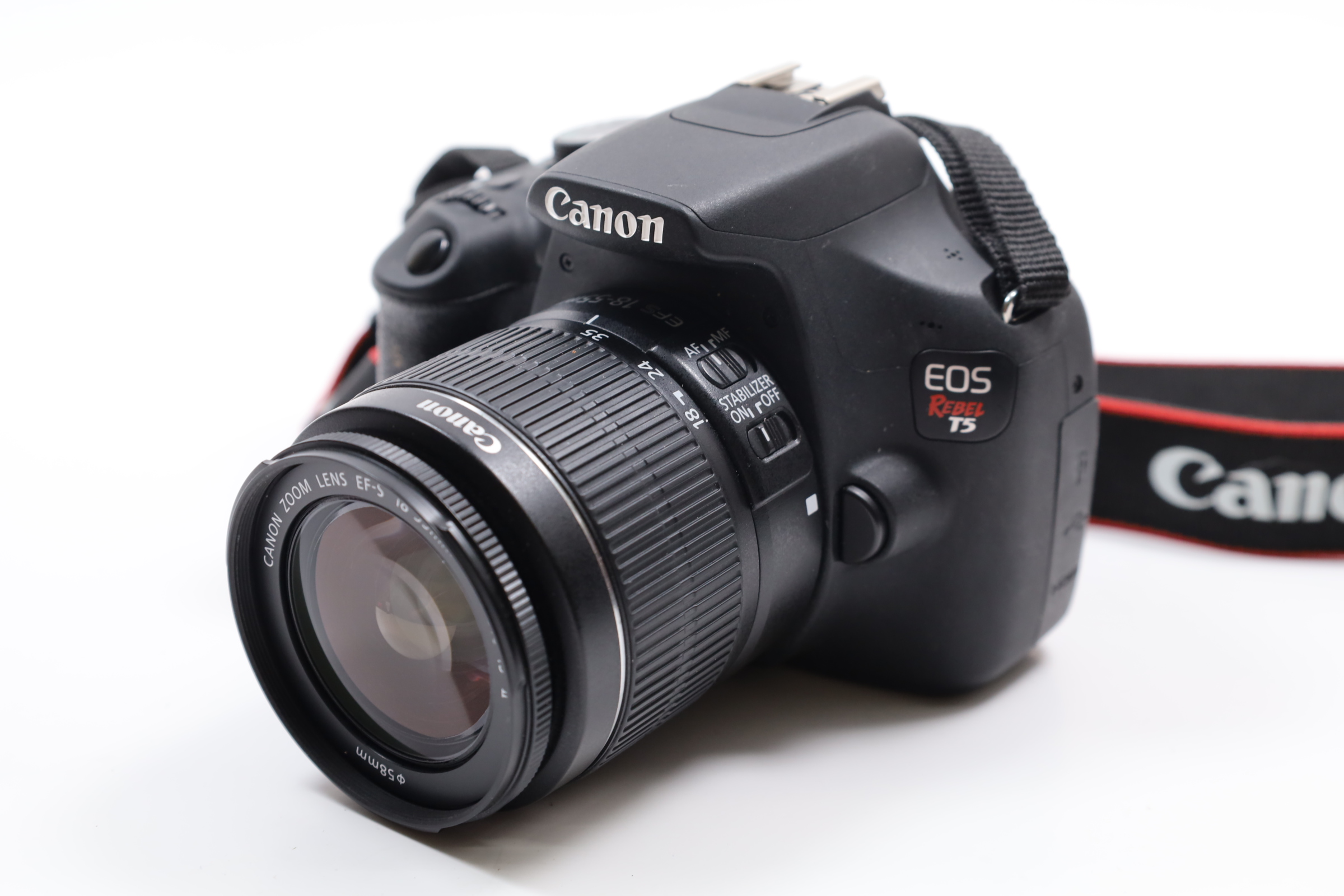 An 18MP DSLR camera featuring an APS-C CMOS sensor and a DIGIC 4 image processor. The camera's ISO range of 100-6400 (expandable to 12800) enables low-light shooting, and its nine-point autofocus system ensures accurate focus. It supports Full HD 1080p video recording at various frame rates and HD video in 720p and 480p. The 3" 460k-Dot LCD Monitor provides a clear view for navigation and composition. The T5 is compatible with all Canon EF and EF-S lenses and includes features like Video Snapshot, allowing users to create video highlights from short clips.