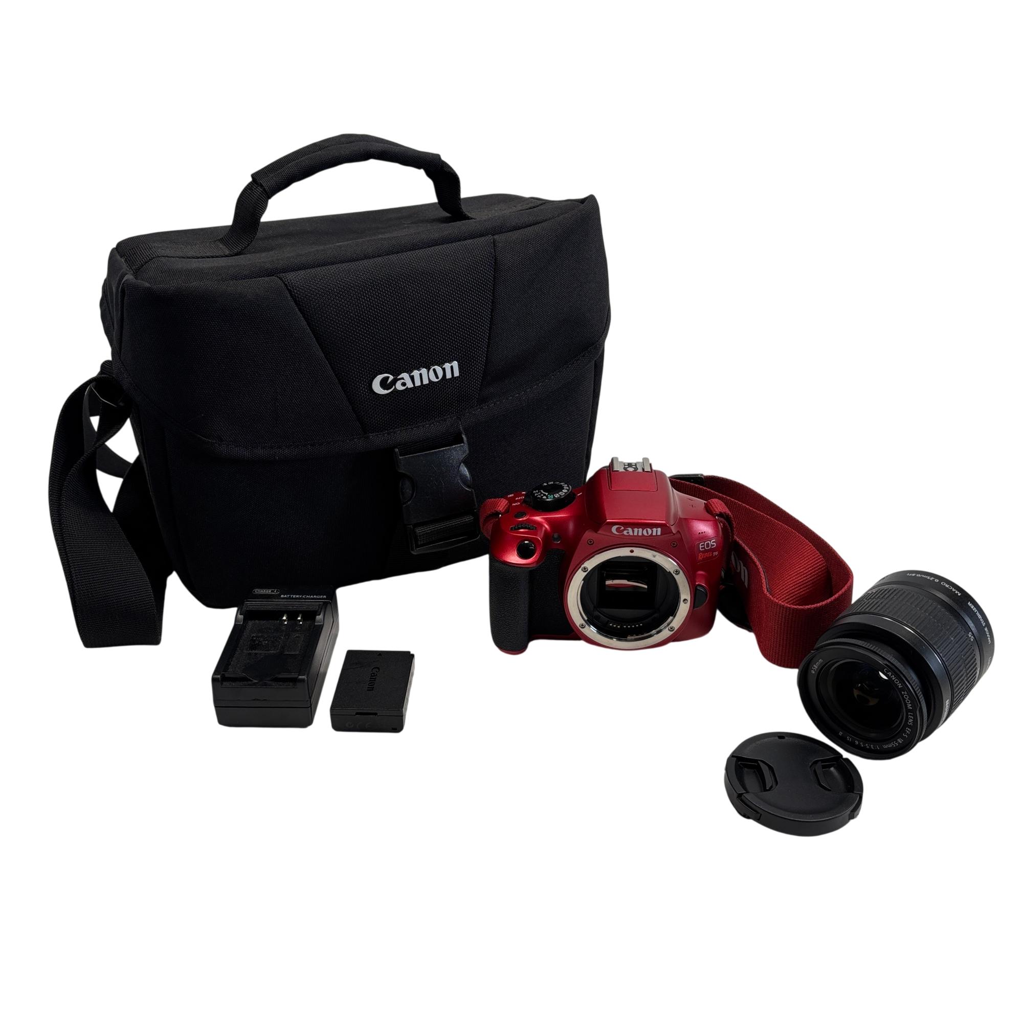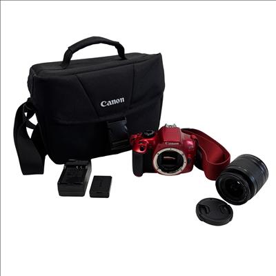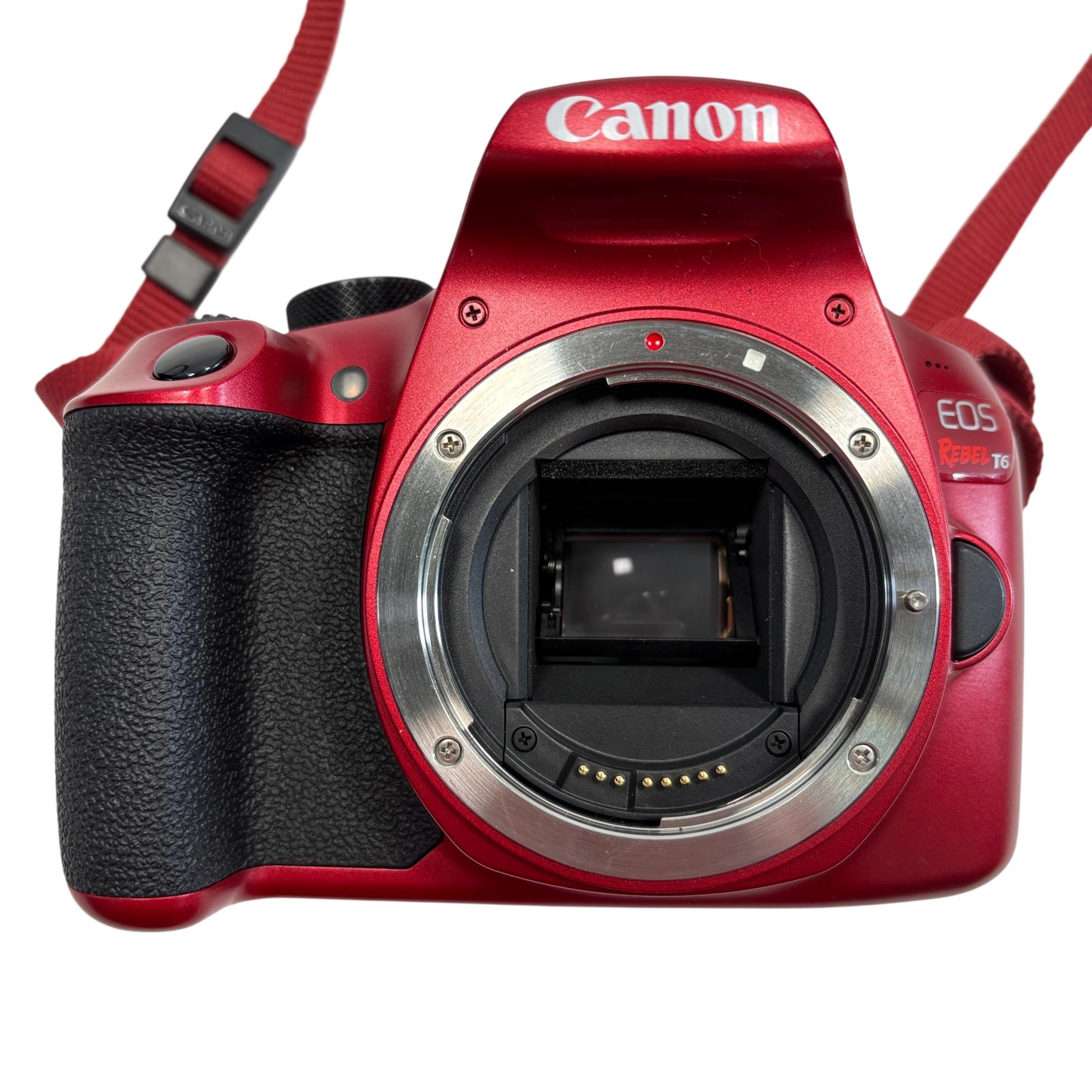 The Canon EOS Rebel T6 Digital SLR Camera features an 18-55mm lens capable of capturing high-resolution images with excellent detail and color accuracy. This red DSLR offers versatile shooting modes and a user-friendly interface, making it suitable for both beginners and photography enthusiasts seeking reliable performance.