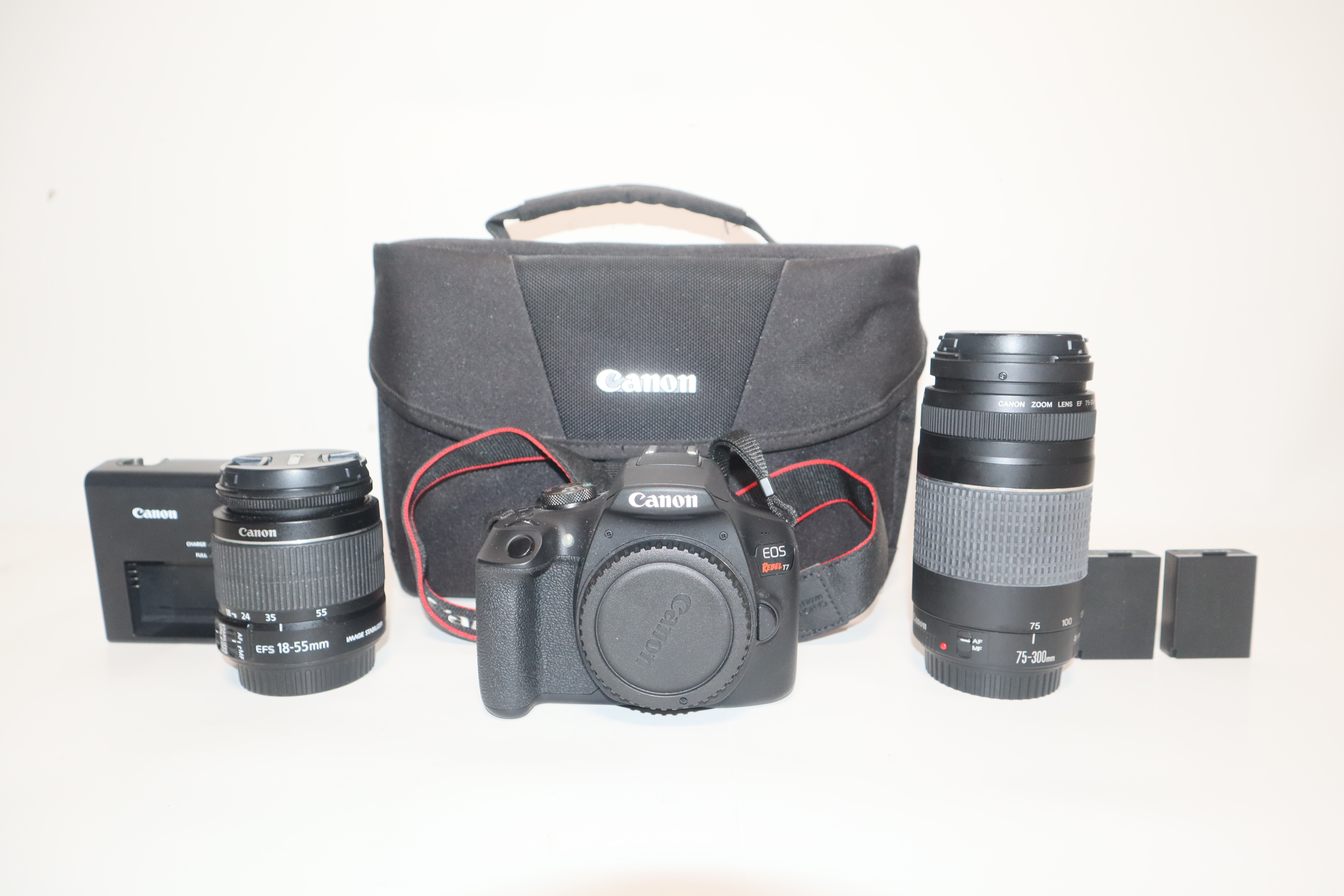 Canon EOS Rebel T7 Camera 0697 & EF-S 18-55mm & EF 75-300mm Zoom Lenses