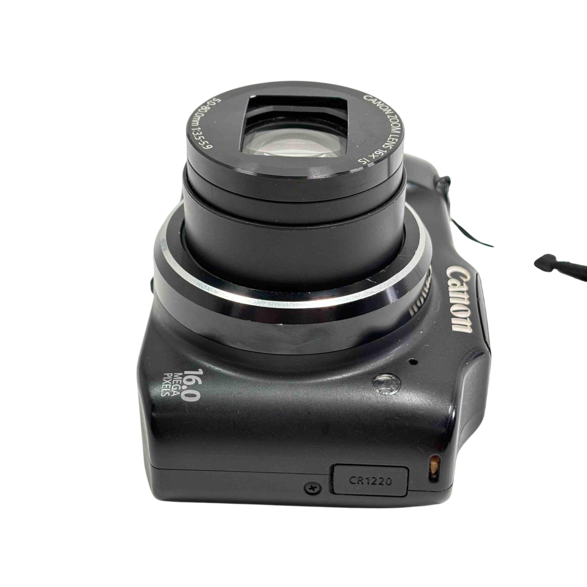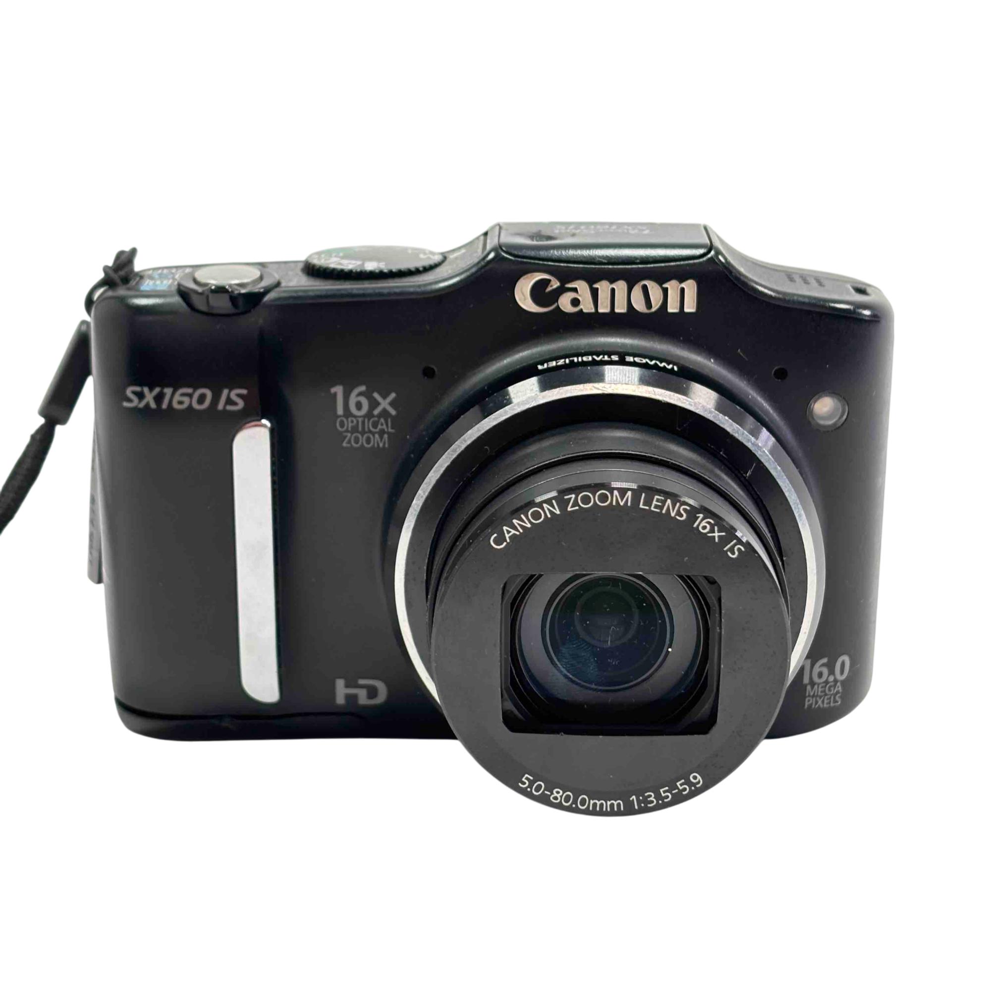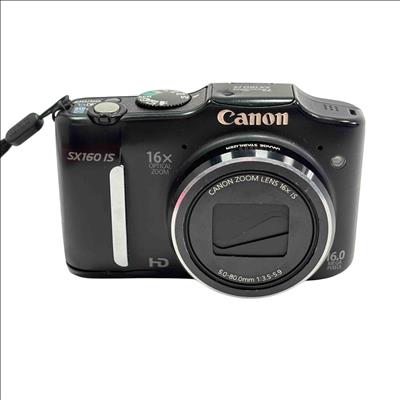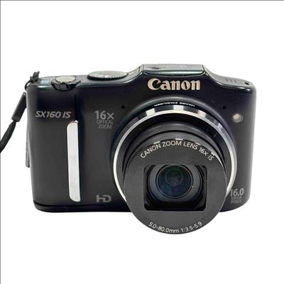 Canon PowerShot SX160 IS 16MP 16x Optical Zoom Compact Digital Camera features a 16-megapixel sensor and a powerful 16x optical zoom lens with image stabilizer for clear, detailed photos. This compact digital camera offers versatile shooting options with a 5.0-80.0mm f/3.5-5.9 lens and comes equipped with easy-to-use controls and a built-in tripod mount for added stability.
