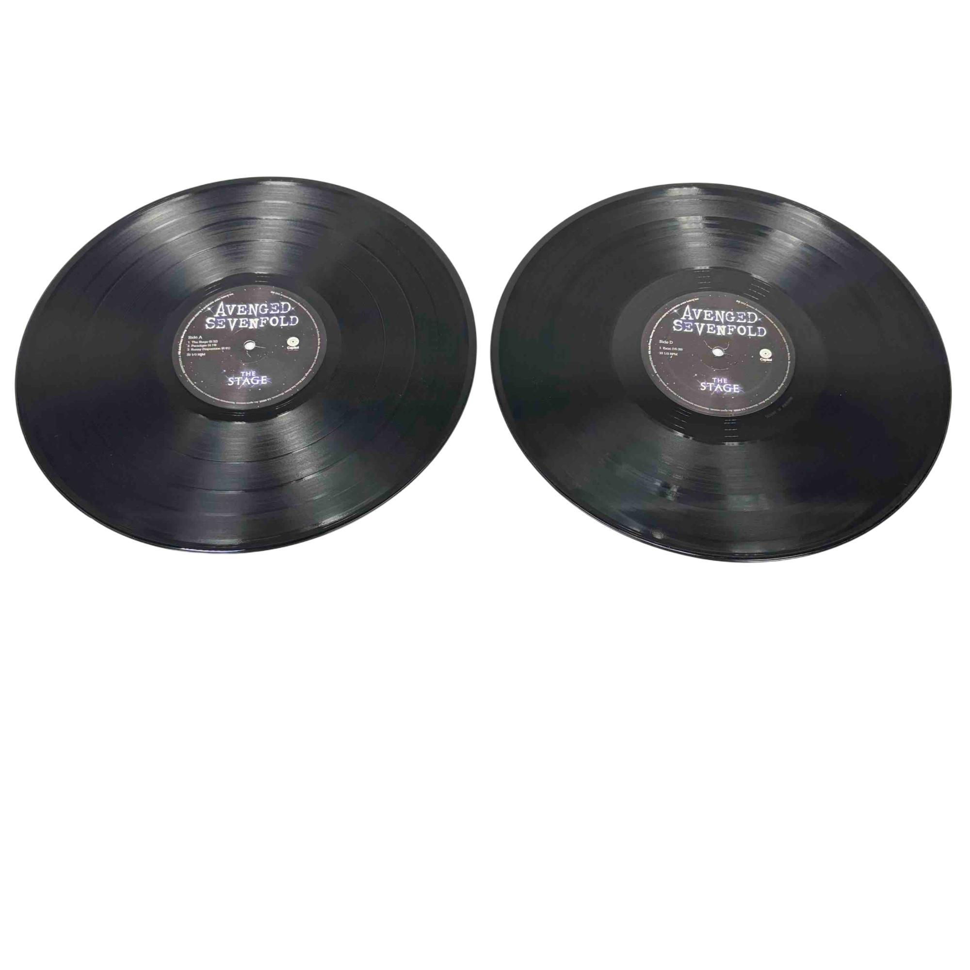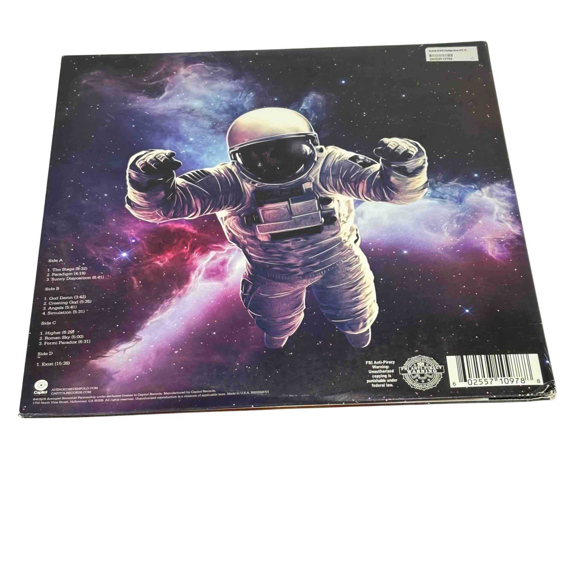 Avenged Sevenfold - The Stage is a 2016 double vinyl LP album released by Capitol Records that showcases the bands progressive nu-metal sound. This album features complex compositions and thought-provoking lyrics spread across multiple tracks including The Stage, Paradigm, and Exist. The cover art and packaging highlight a space-themed design with an astronaut and cosmic visuals, emphasizing the albums futuristic and conceptual themes.