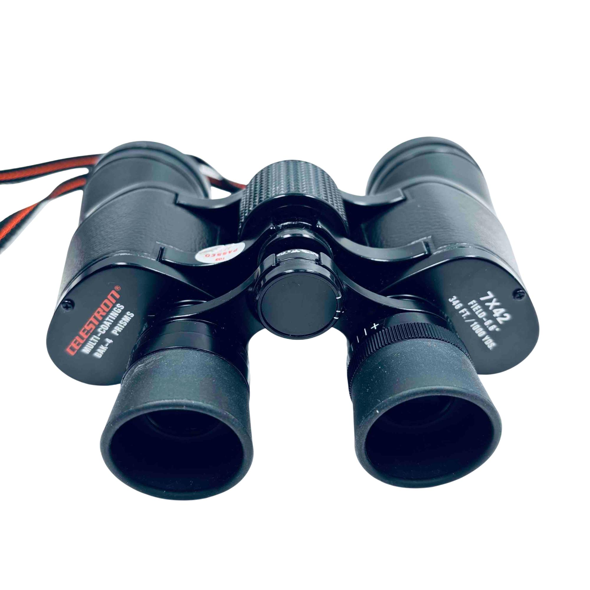 Experience the world up close with the Celestron BAK-4 7x42 Binoculars. Featuring premium BAK-4 prisms and multi-coated lenses, these binoculars offer superior clarity and brightness for all your outdoor adventures. Perfect for birdwatching, sports events, or travel, they come with a convenient Tamrac bag for easy transport.