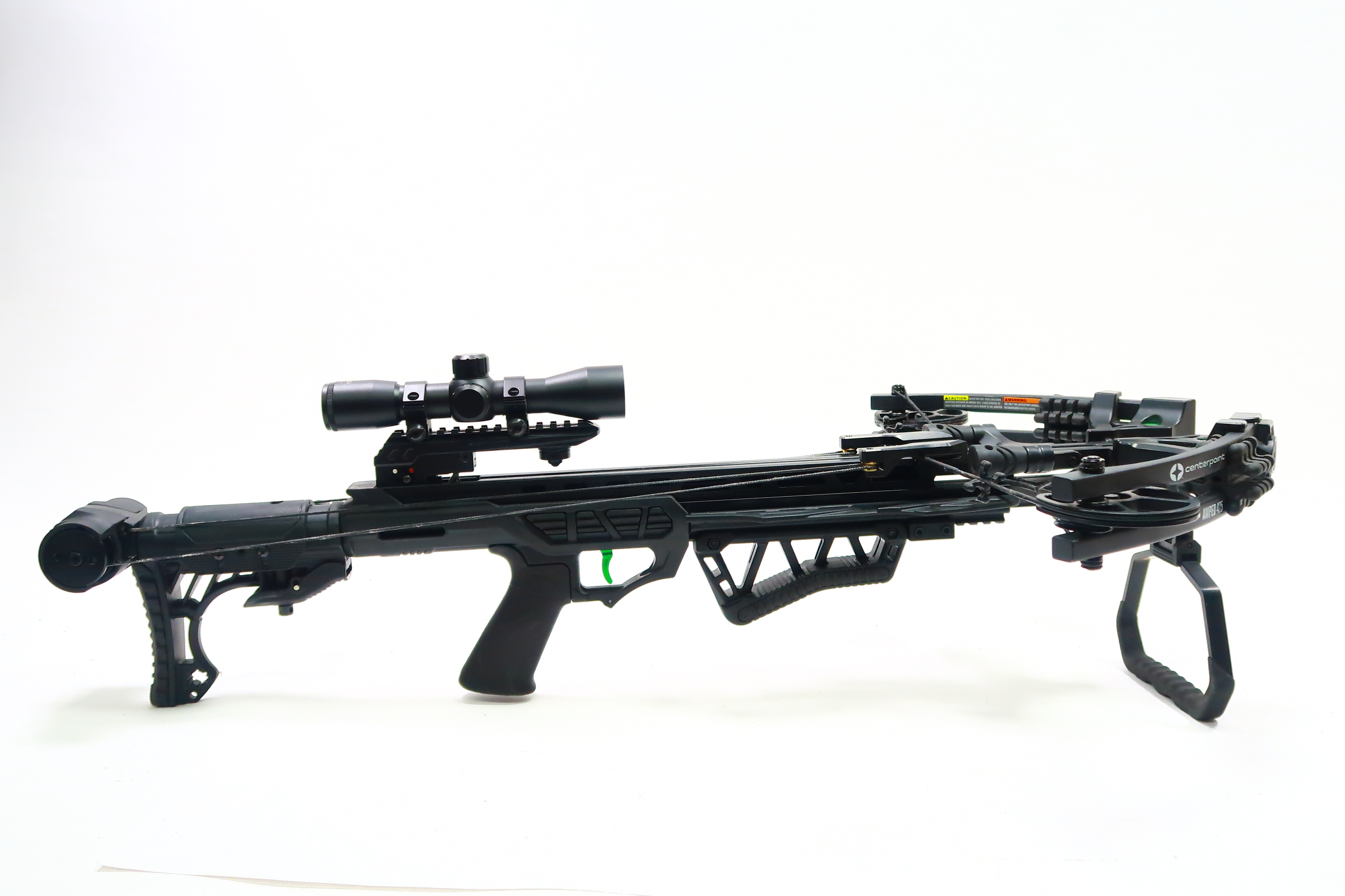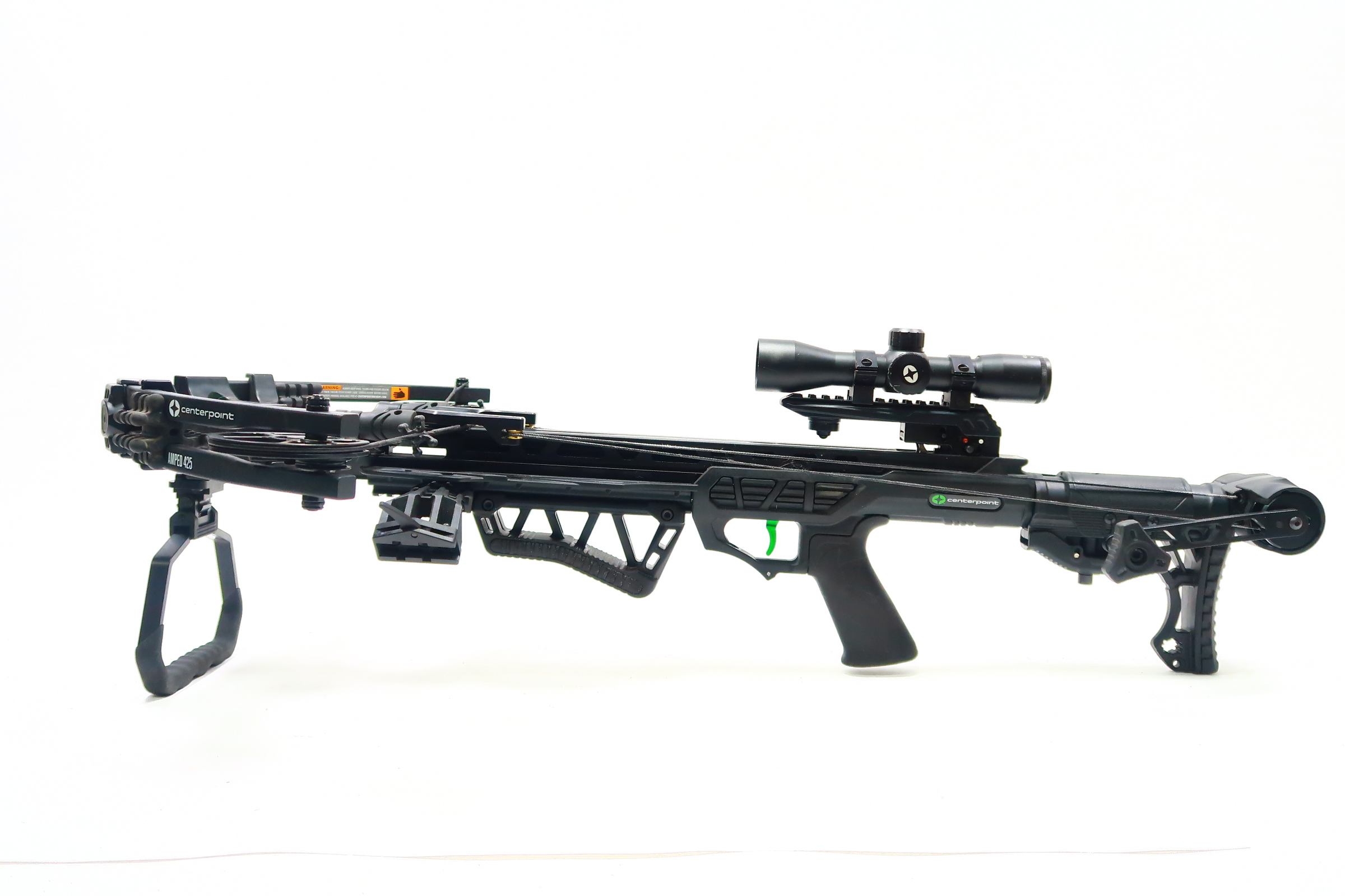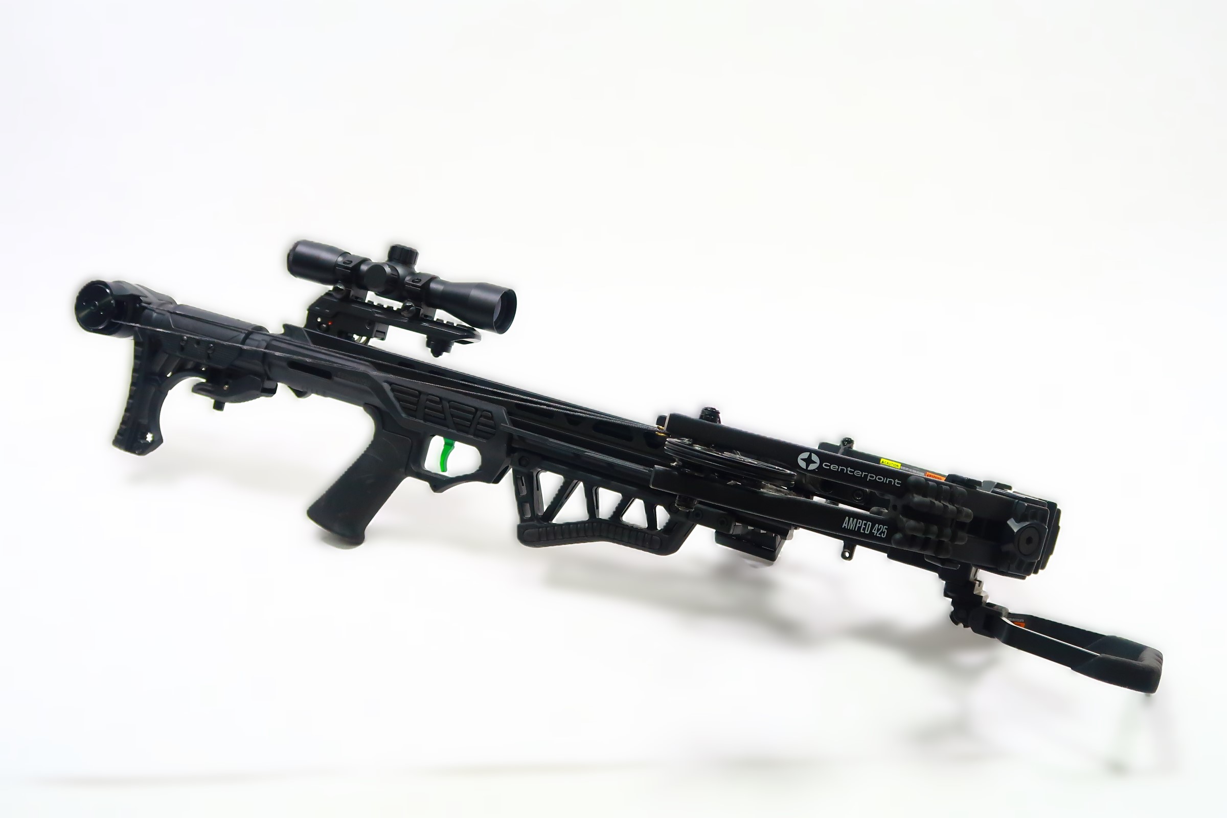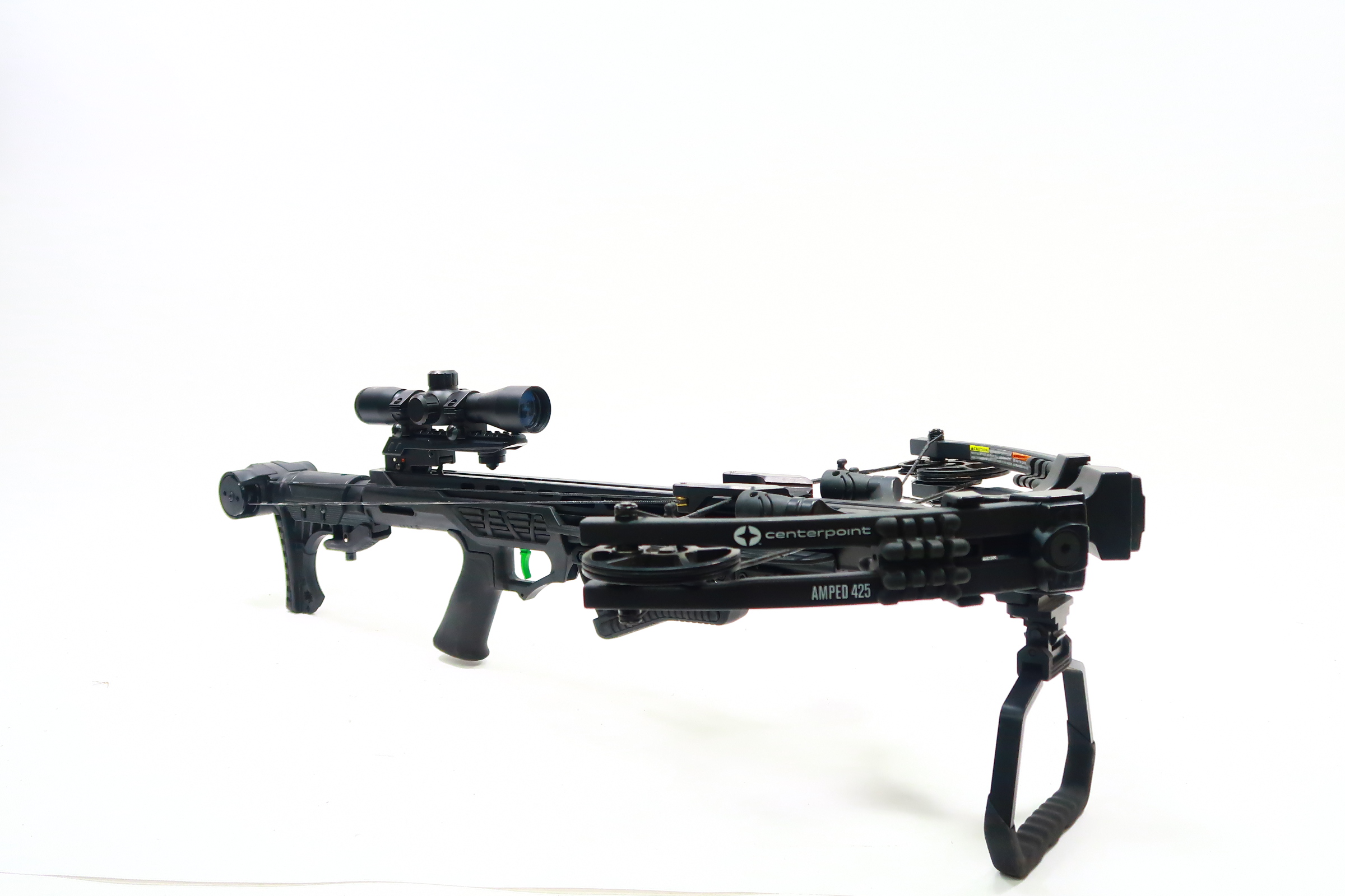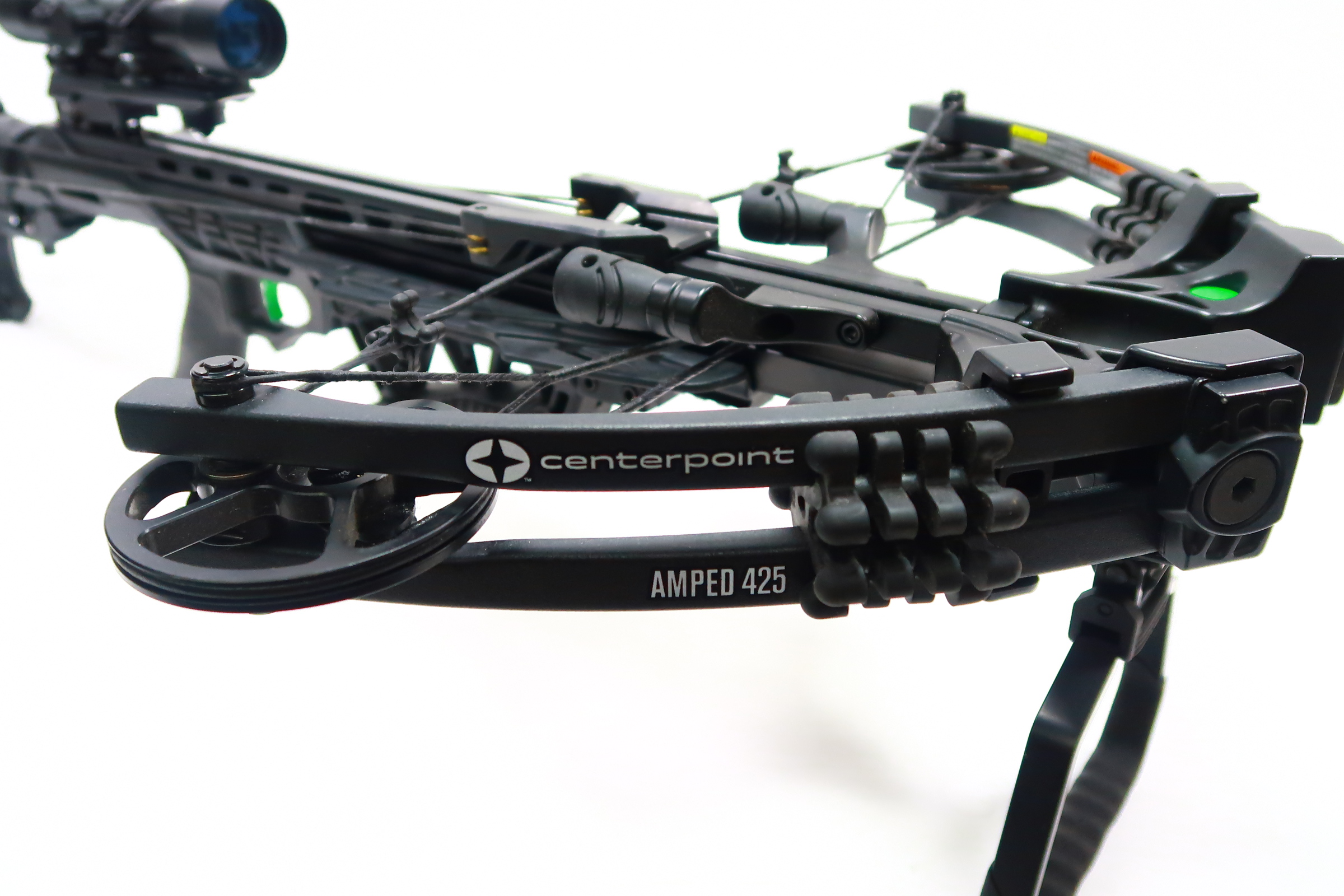 The CenterPoint Amped 425 is a compact, whisper-quiet crossbow that packs a punch at 425 FPS. When cocked, it measures in at just 12" wide, making it one of CenterPoint's smallest axle-to-axle crossbows. It also features the Whisper Silencing System, which includes 2 string stoppers with silencers, 2 limb dampeners and 2 spider silencers for the ultimate in noise reduction and vibration control. Plus, you'll be able to send arrows downrange faster than ever thanks to its new and improved full-bearing cam system that provides devastating results.