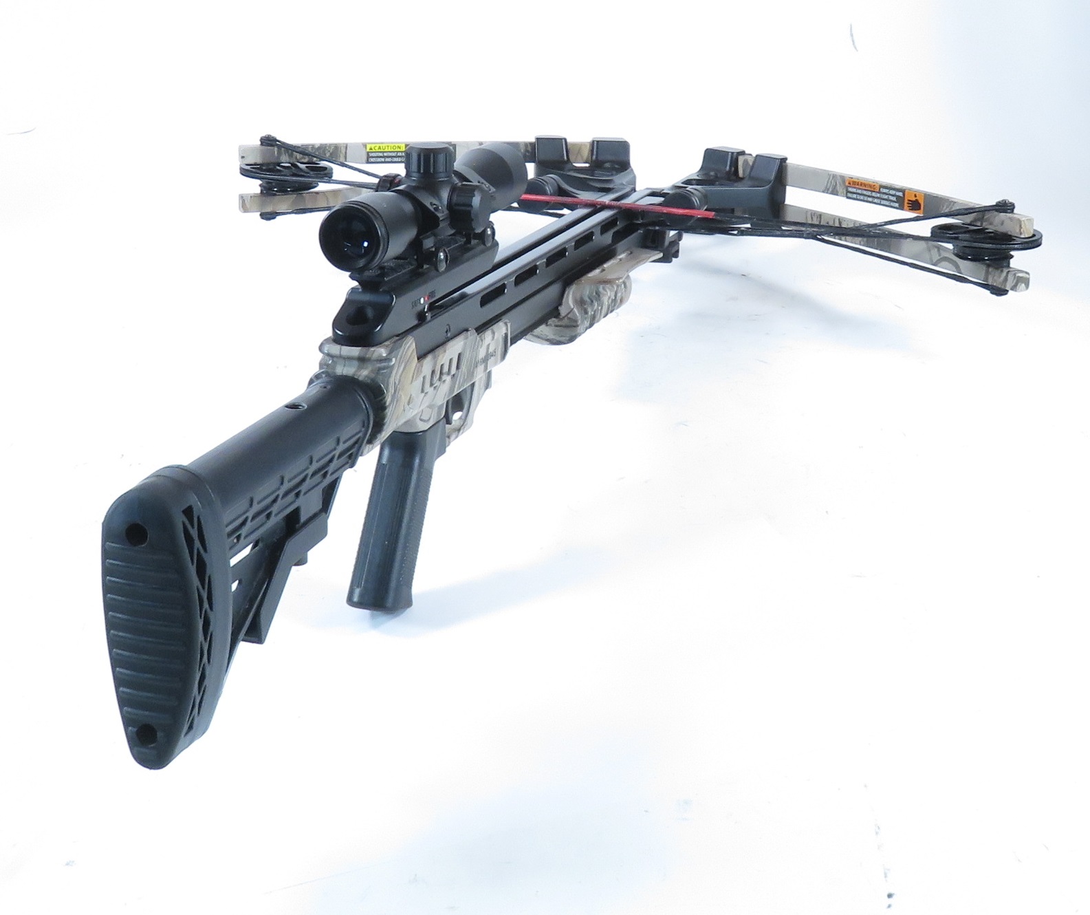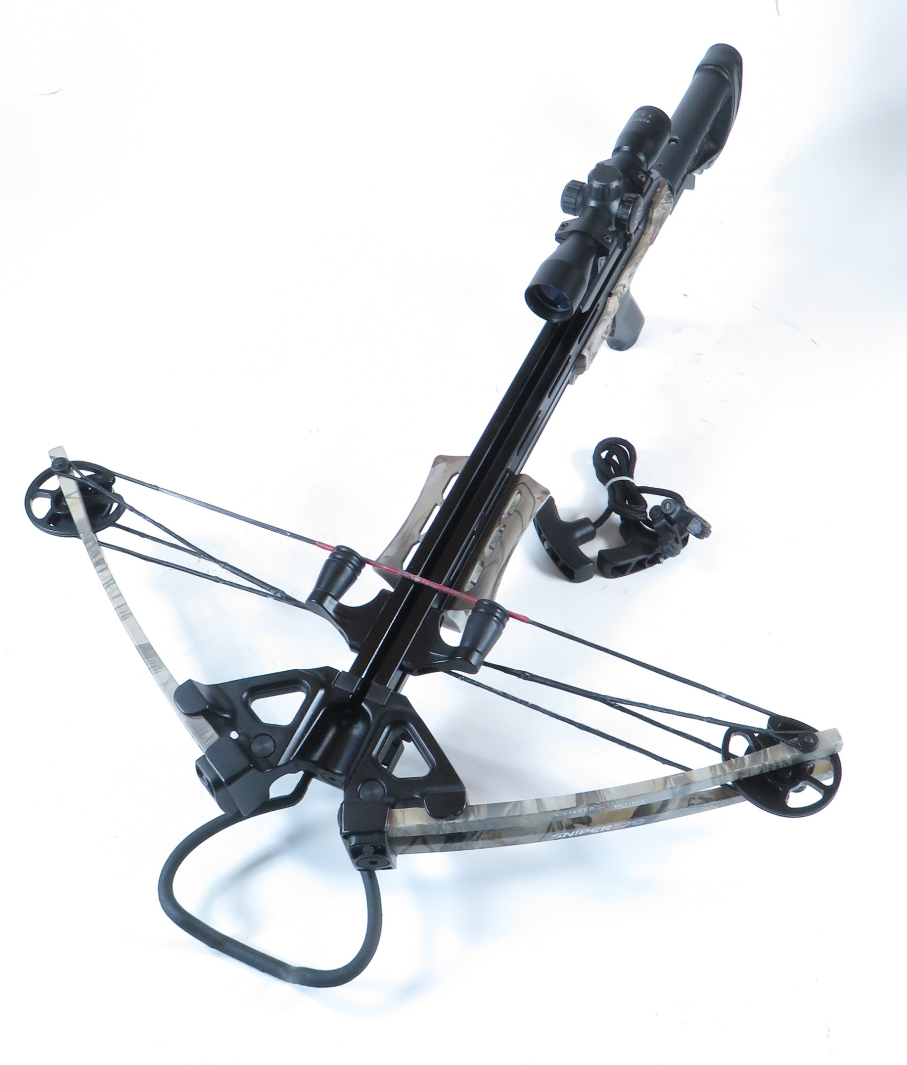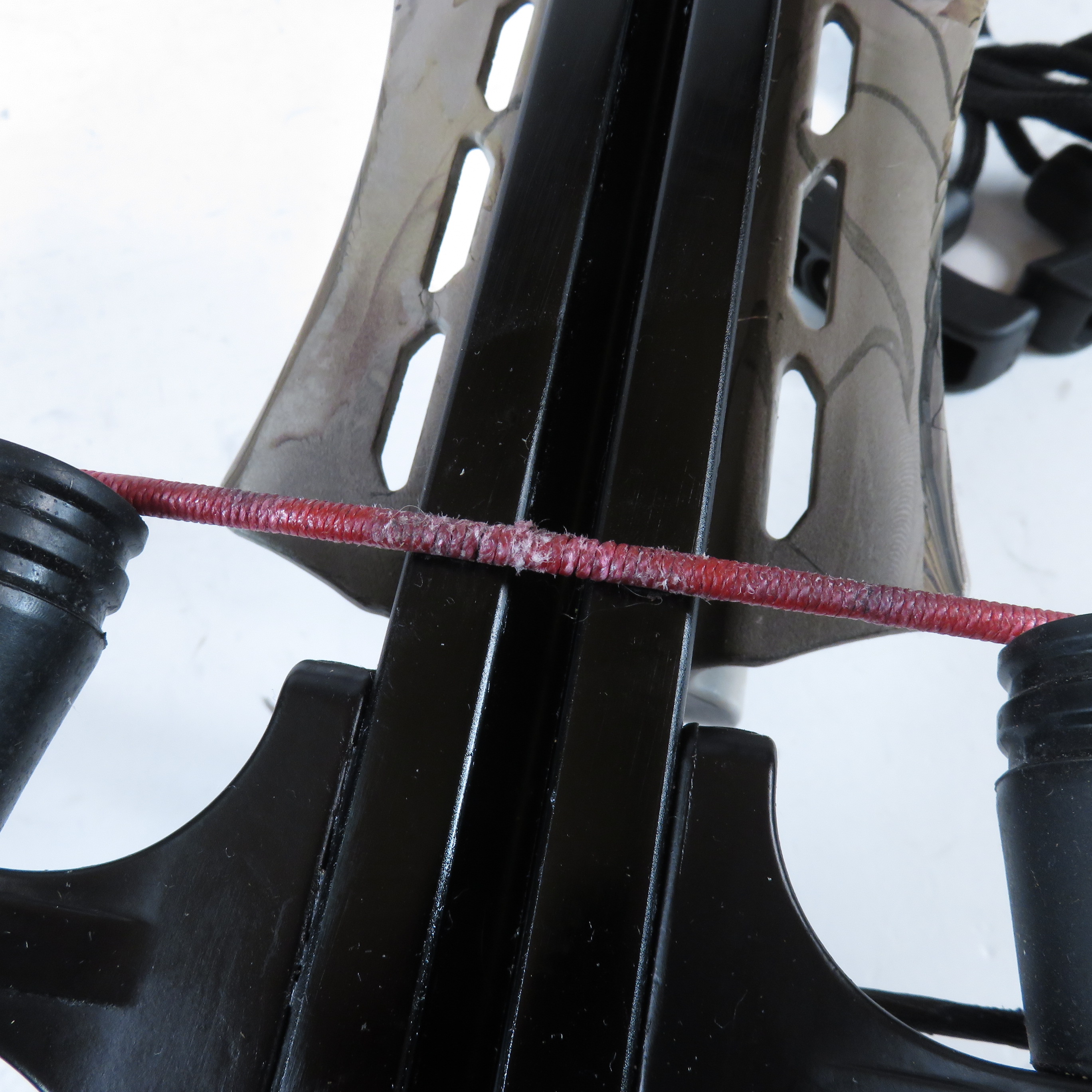 This crossbow is previously owned and inspected fully. There are surface marks and wear on the body from regular use. The previous owner drilled a hole on the topside of the stock. The string shows some wear. See images for details.