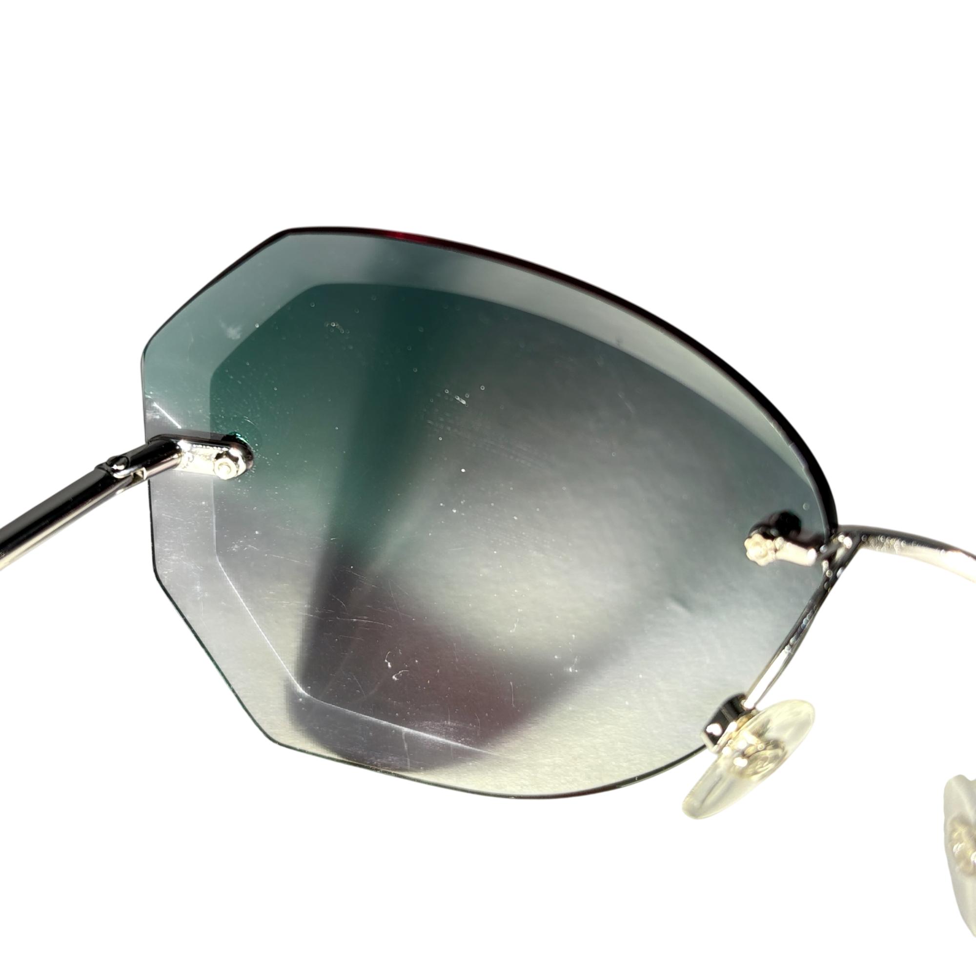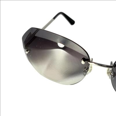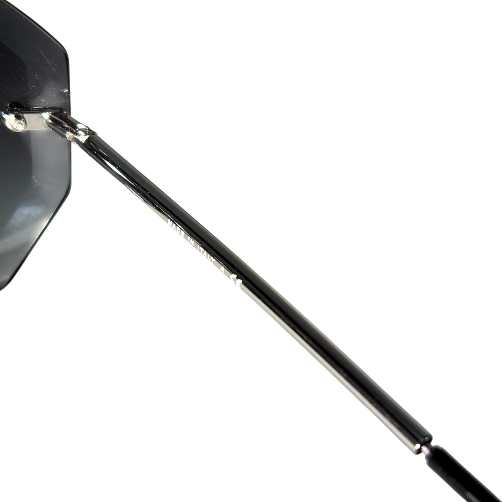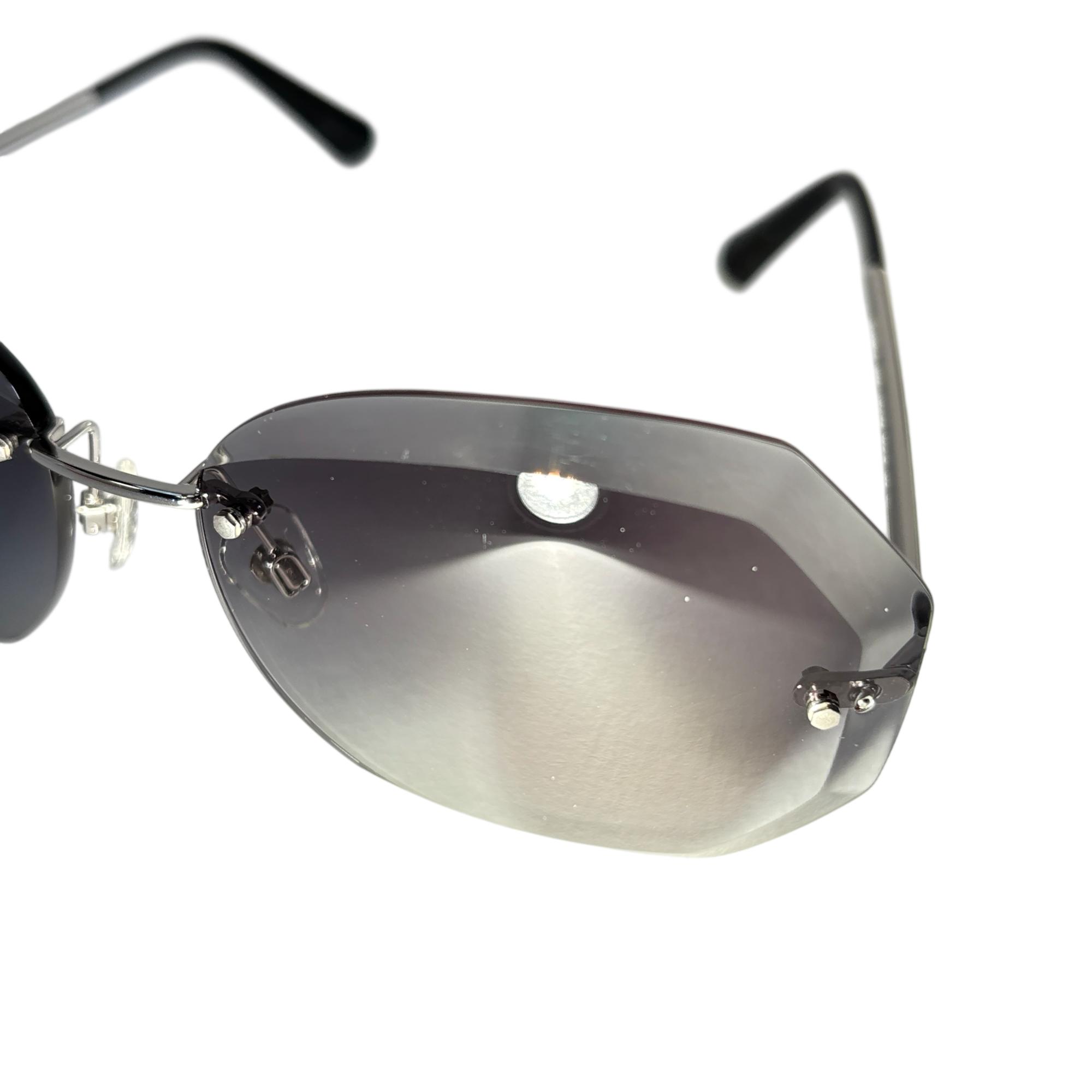 Chanel 4220 Dark Silver Acetate Rimless Sunglasses feature a sleek and modern design with black lenses set in a dark silver acetate rimless frame, offering a sophisticated and lightweight eyewear option. These sunglasses combine elegant craftsmanship with a distinctive round shape to provide both style and comfort, making them a fashionable accessory for everyday wear.
