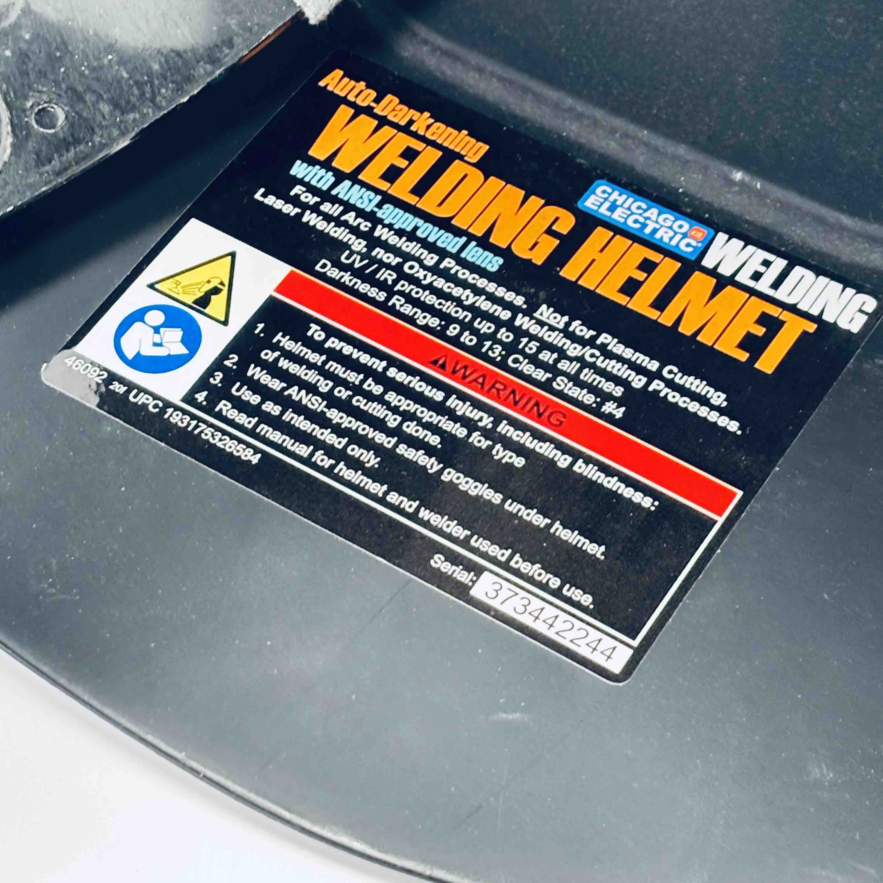 Upgrade your welding setup with the Chicago Electric 46092 Auto-Darkening Welding Helmet. This high-performance helmet features an ANSI Z87.1-2015 approved lens, providing enhanced UV and IR protection with a variable shade range of 9 to 13. Designed for all arc welding processes, this helmet ensures safety and efficiency, allowing you to work with precision and confidence.