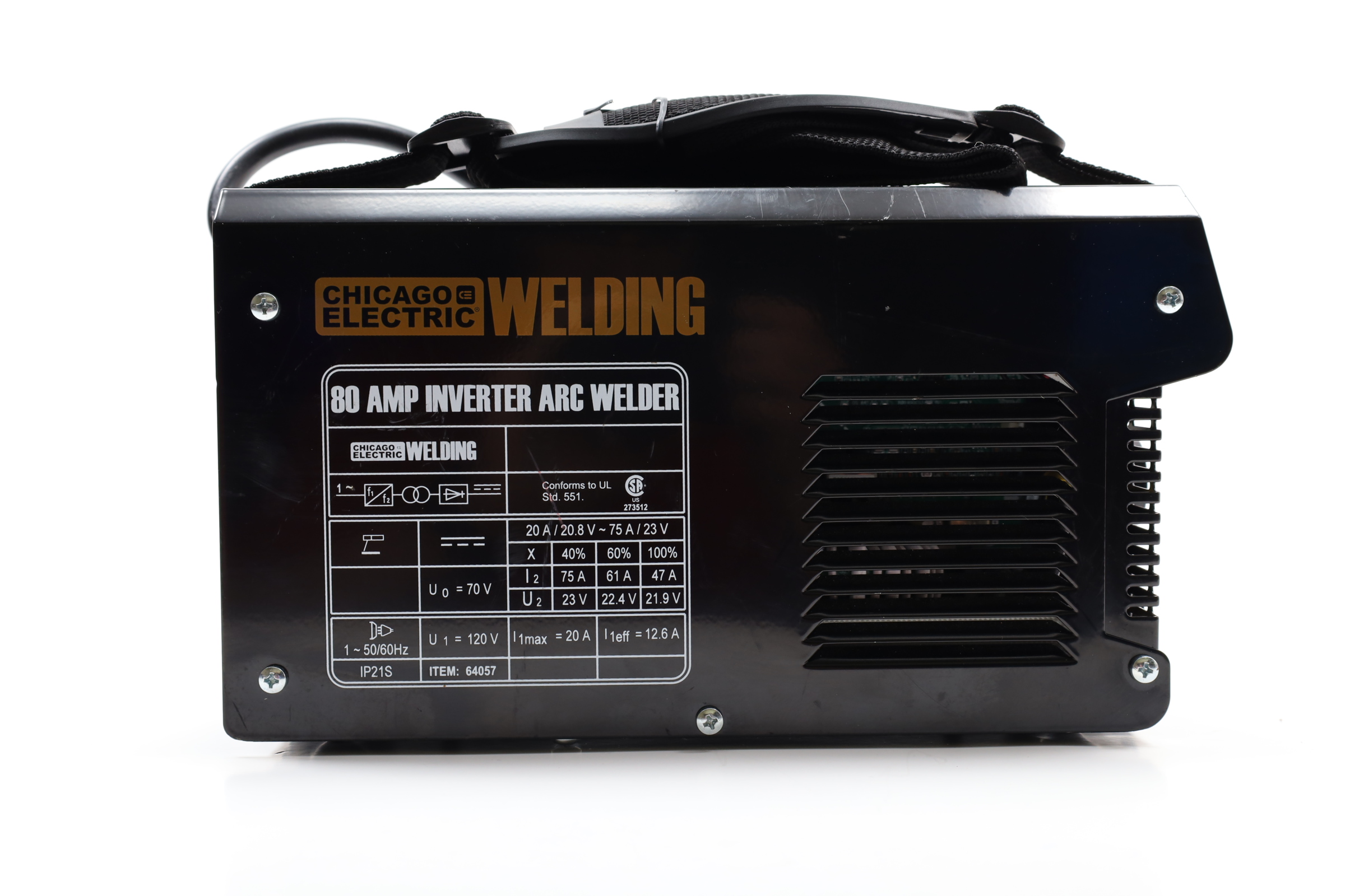 Offers a variety of functions to enhance welding efficiency and quality. It features Hot Start, ARC Force, and anti-stick technology, facilitating easier starts, voltage monitoring with adaptive current supply, and smooth electrode separation from the workpiece, respectively. The welder is designed with a power switch indicator, thermal overload protection, and comes with a 5.5 ft. welding cable and a 5 ft. ground cable. It provides high current stability for consistent output and is suitable for welding mild steel, cast iron, and stainless steel with a welding capacity of 16 gauge and an electrode size range of 1/16 in. to 3/32 in. The welder operates on a 120V input voltage and offers a minimum amperage output of 10 amps and an open circuit voltage of 54.