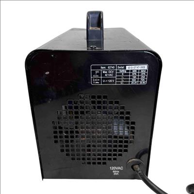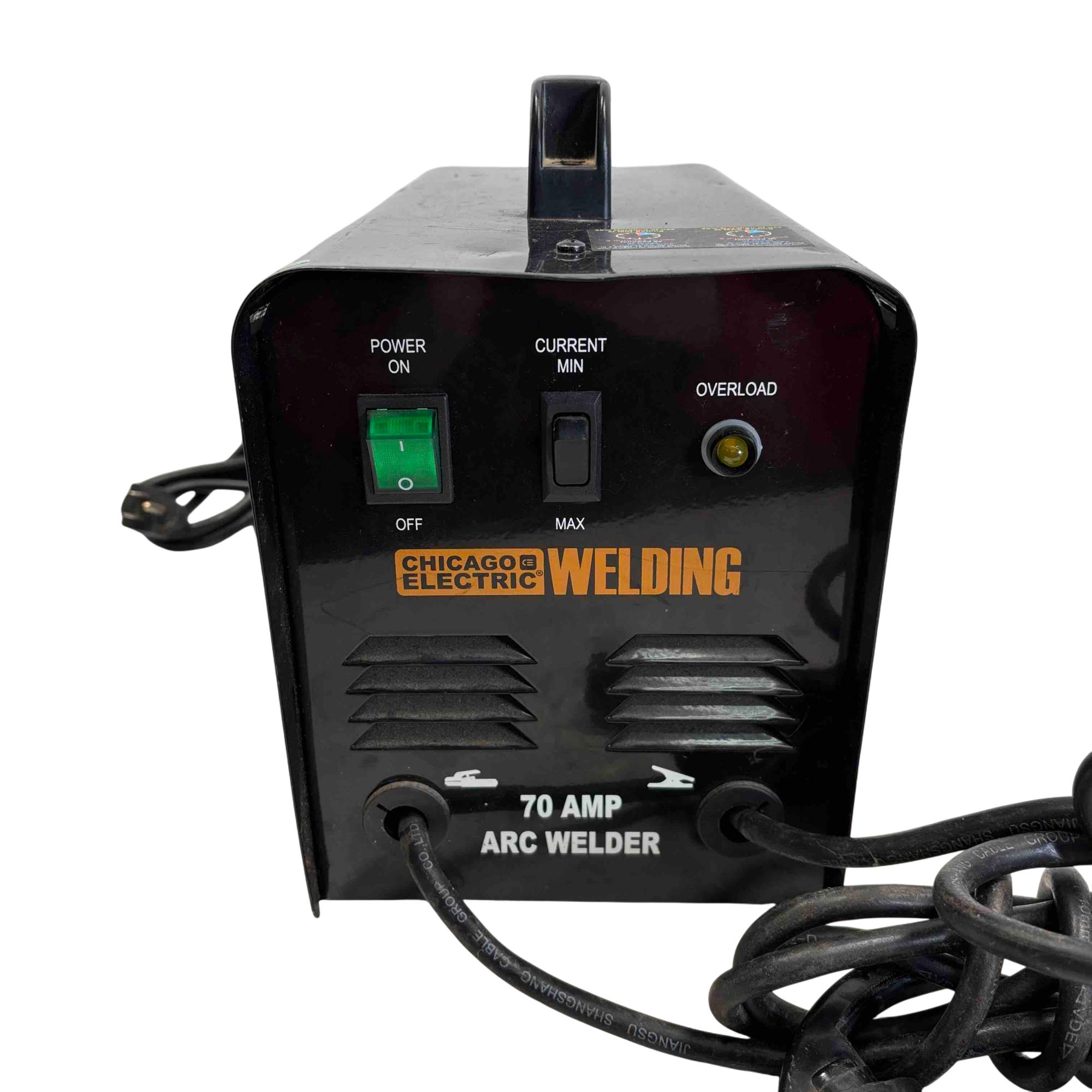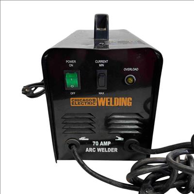 The Chicago Electric Welding 70 Amp 120 Volt Arc Welder 62745 is a compact and portable welding machine designed for reliable electric stick welding. Featuring a sturdy black metal housing with a convenient handle, this welder operates on standard 120VAC power and delivers up to 70 amps, making it suitable for light to medium welding tasks. Ideal for automotive, maintenance, and home projects, this unit provides efficient performance with easy-to-use controls.