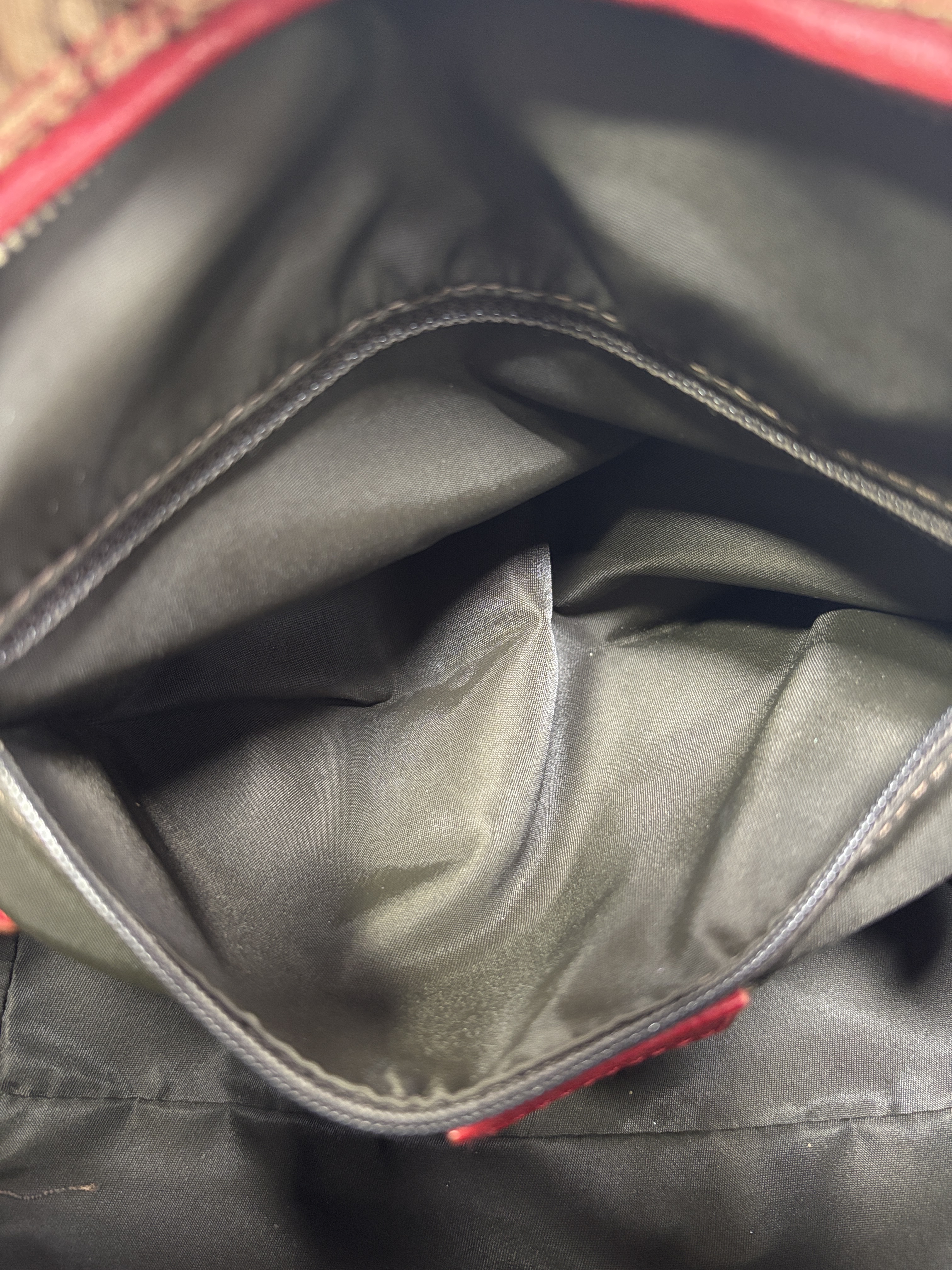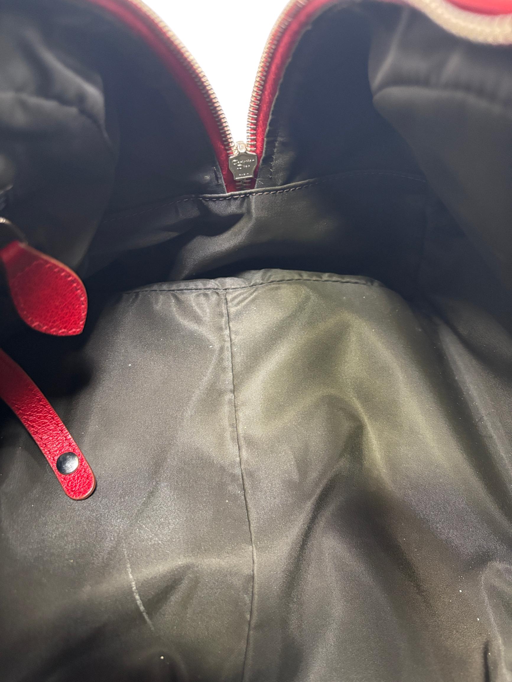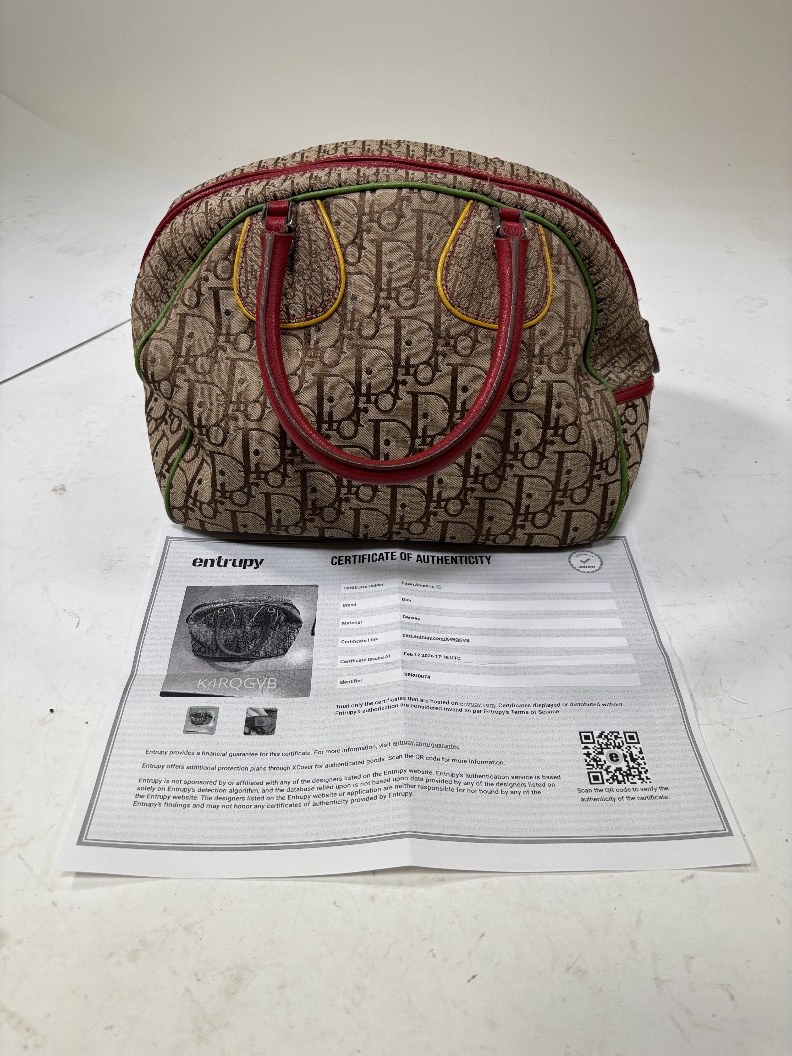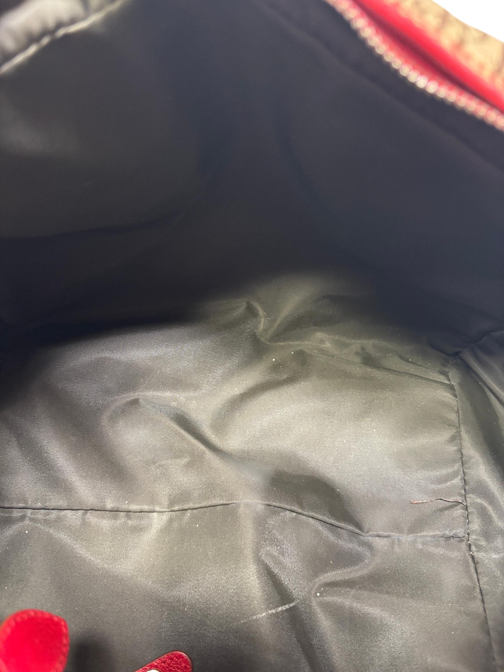 Christian Dior Brown Trotter Coated Canvas Rasta Bowler Bag features a rich brown canvas body accented by vibrant red trim and handles, complemented with polished silver hardware. This luxurious fashion accessory is designed for stylish functionality with a secure zipper closure and high-quality leather craftsmanship, making it an elegant addition to any wardrobe.