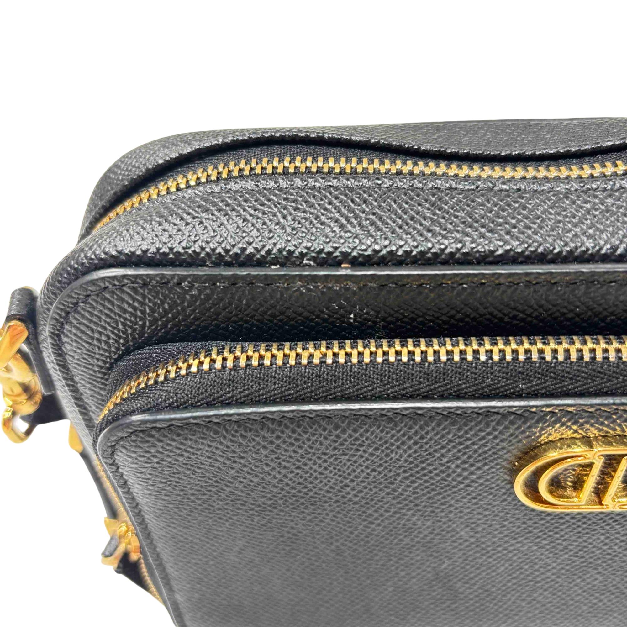 Elevate your accessory collection with the Christian Dior Caro Double Pouch Shoulder Bag. Crafted from luxurious black grained calfskin leather, this elegant bag features gold hardware, a signature CD logo, and a versatile adjustable strap for crossbody or shoulder wear. Perfect for both day and evening occasions, it combines iconic Dior craftsmanship with modern functionality.