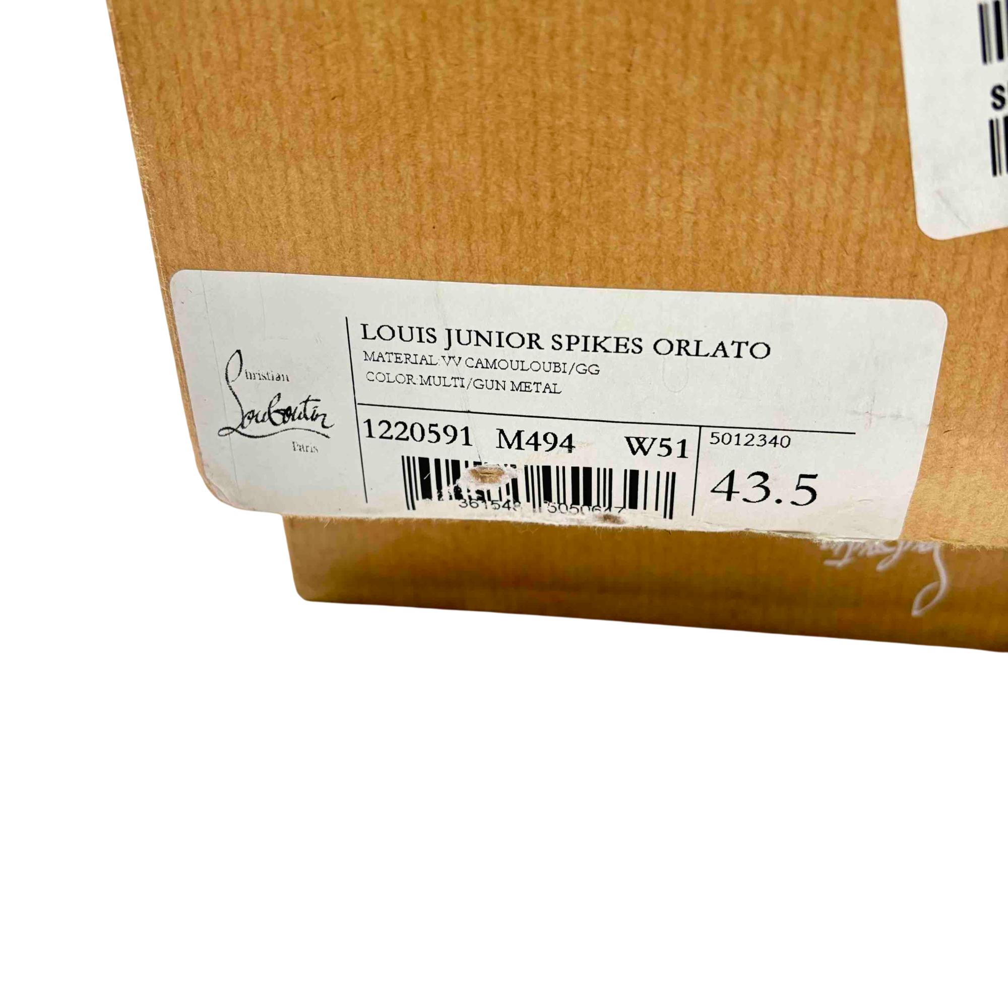 Step out in style with the Christian Louboutin Louis Junior Spikes Orlato Camouflage Sneakers. These luxury sneakers combine a striking camouflage pattern with edgy spike detailing, ensuring you stand out from the crowd. Perfectly blending sophistication and streetwear, they provide both comfort and a touch of extravagance.