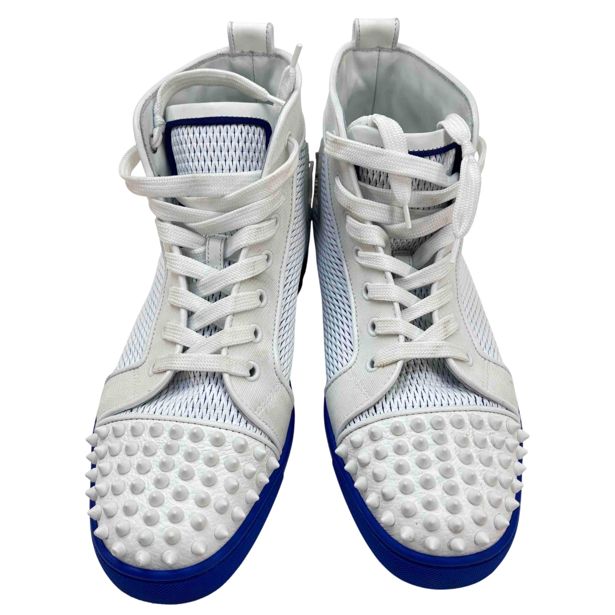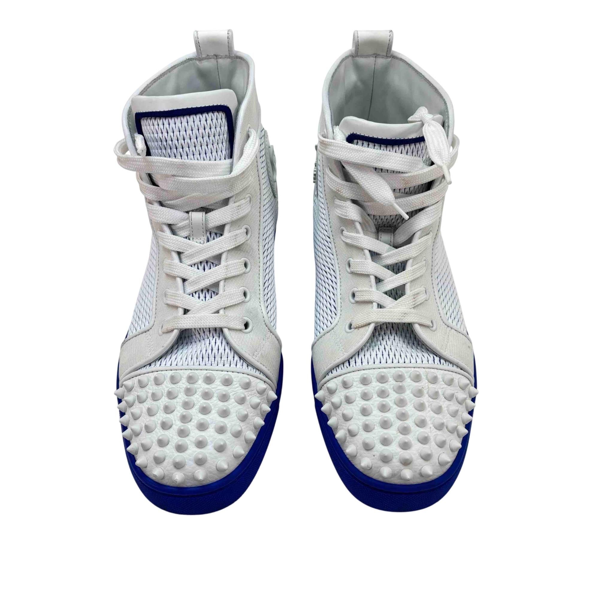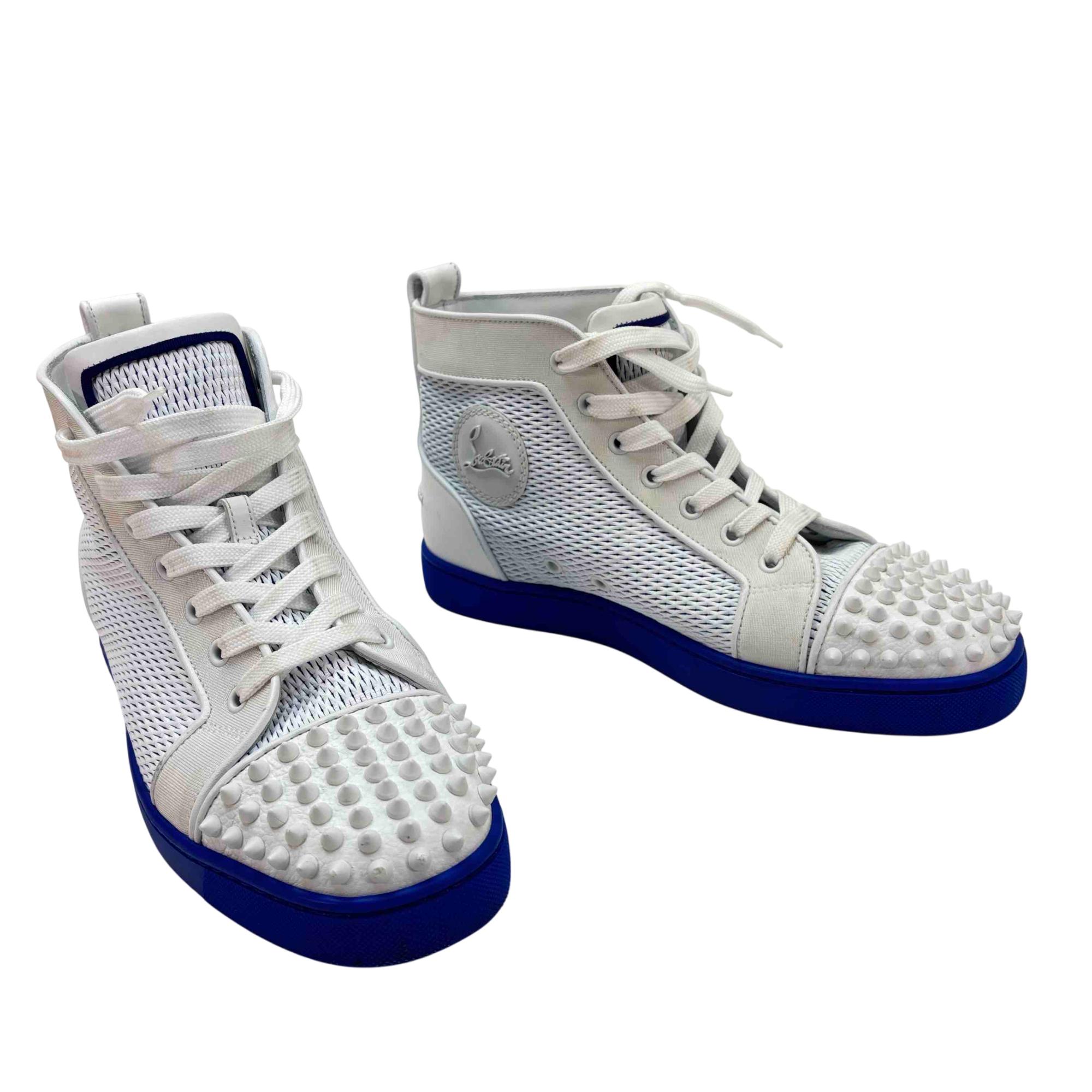 Christian Louboutin Louis Lou Spikes Orlato Flat High Tops Blue Trim Size 8