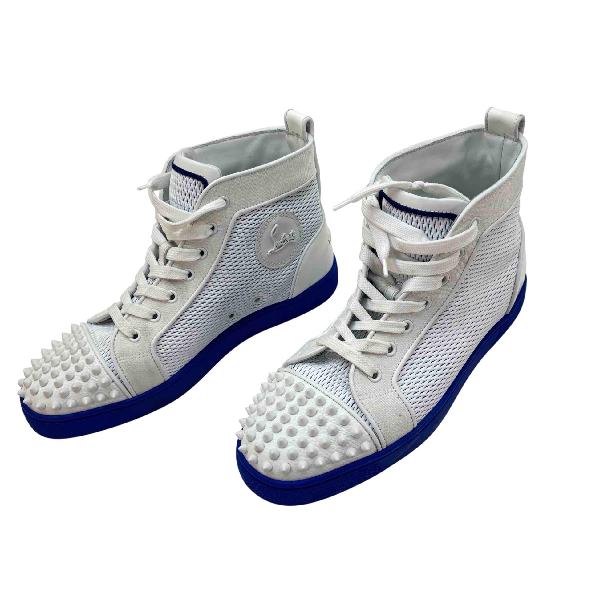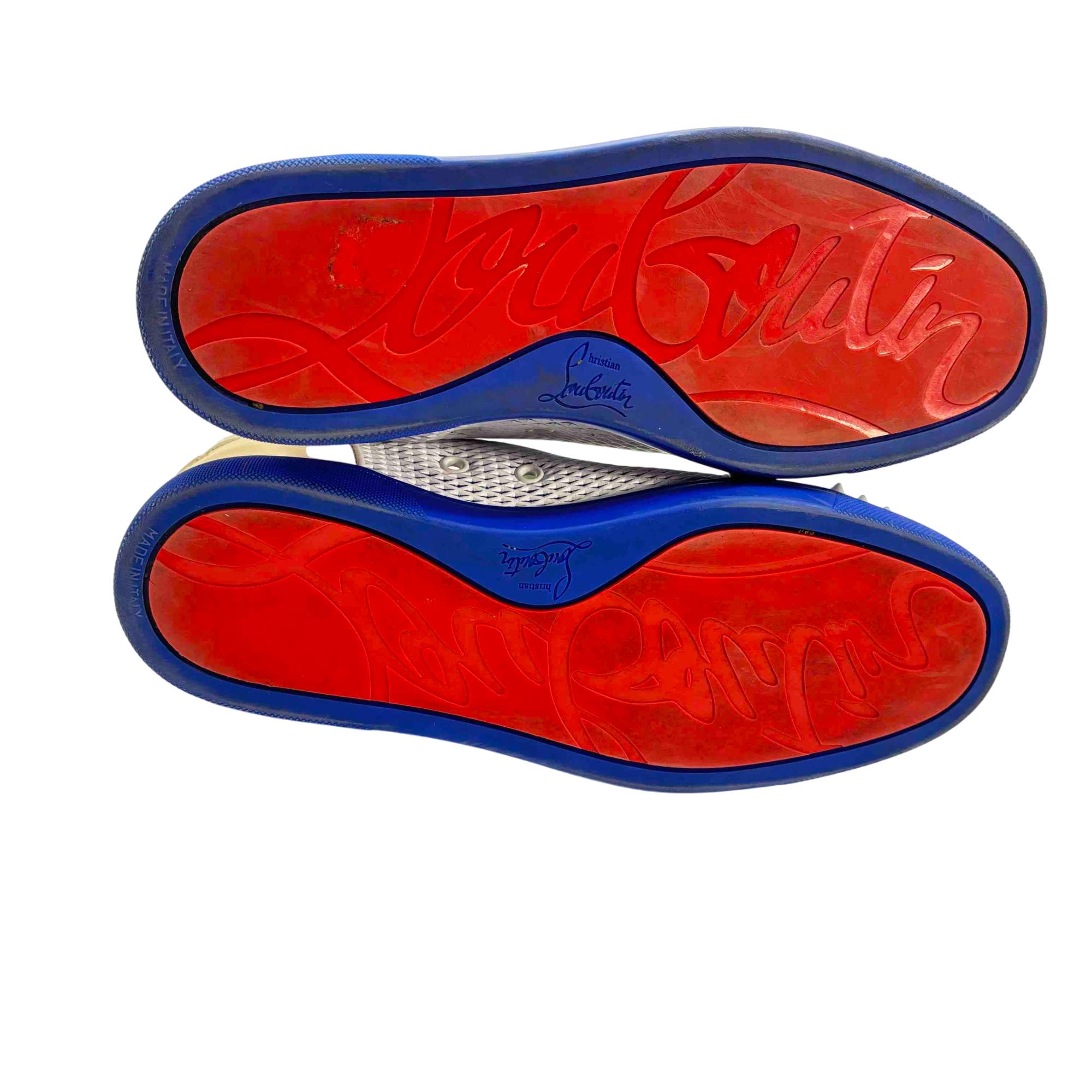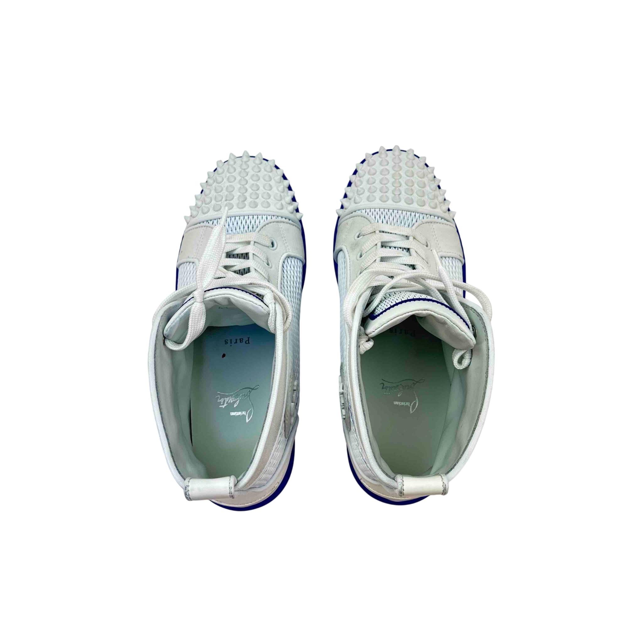 Christian Louboutin Louis Lou Spikes Orlato Flat High Tops Blue Trim Size 8