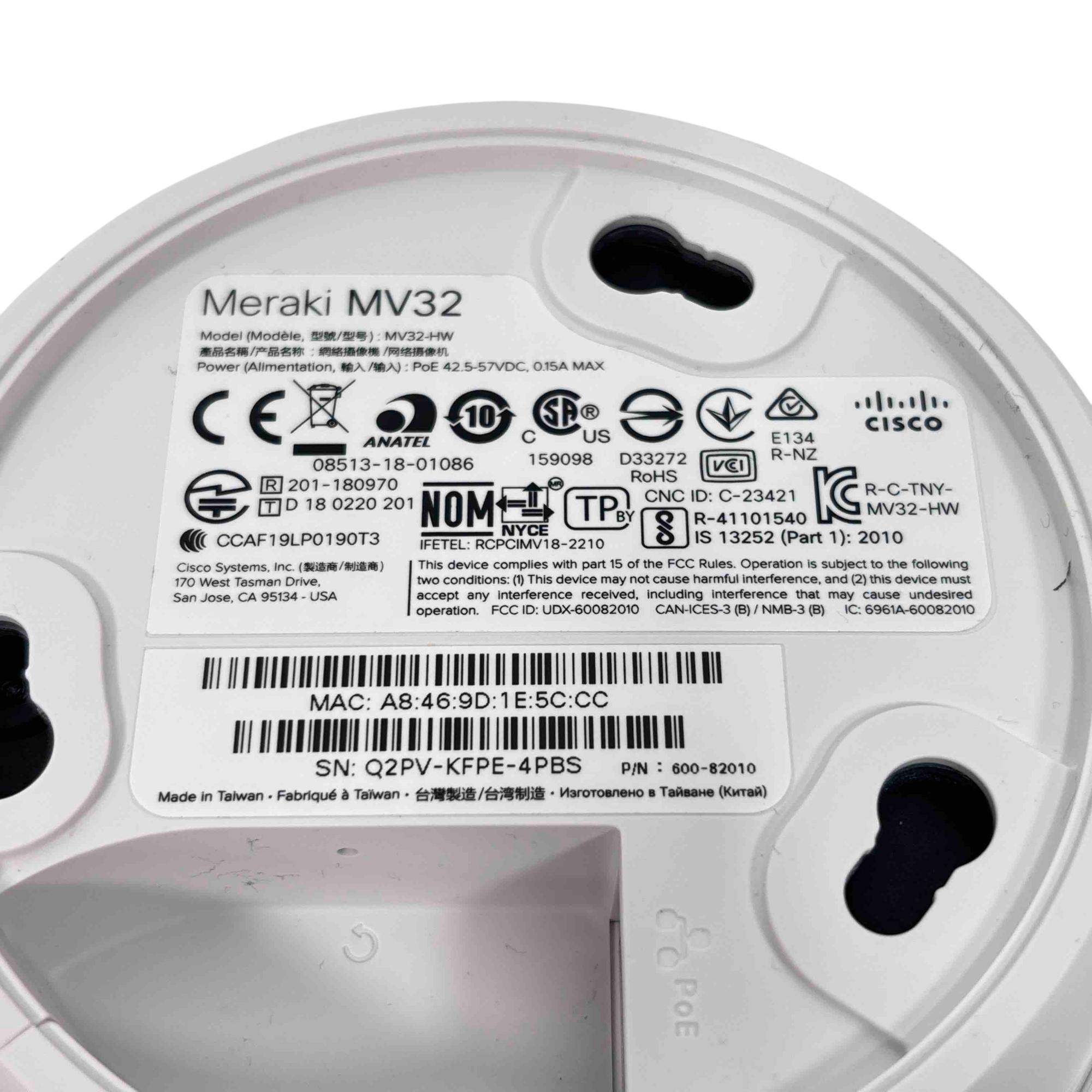 Experience next-level security and monitoring with the Cisco Meraki MV32-HW, a powerful 360-degree indoor fisheye camera featuring advanced analytics and PoE power convenience. Perfect for business or enterprise needs, this light-use unit comes complete with installation bracket and mounting hardware for quick deployment. Get top-tier performance, cloud-managed functionality, and reliable coverage in one sleek package.