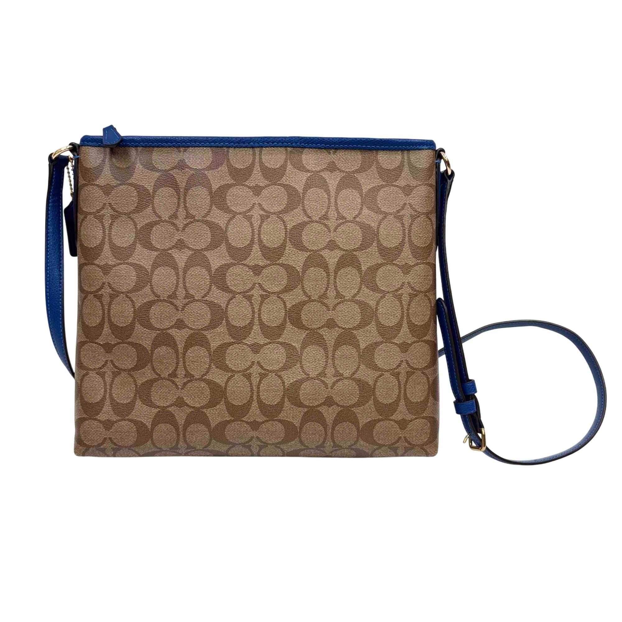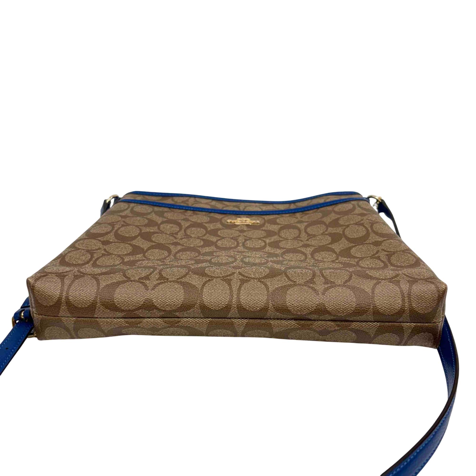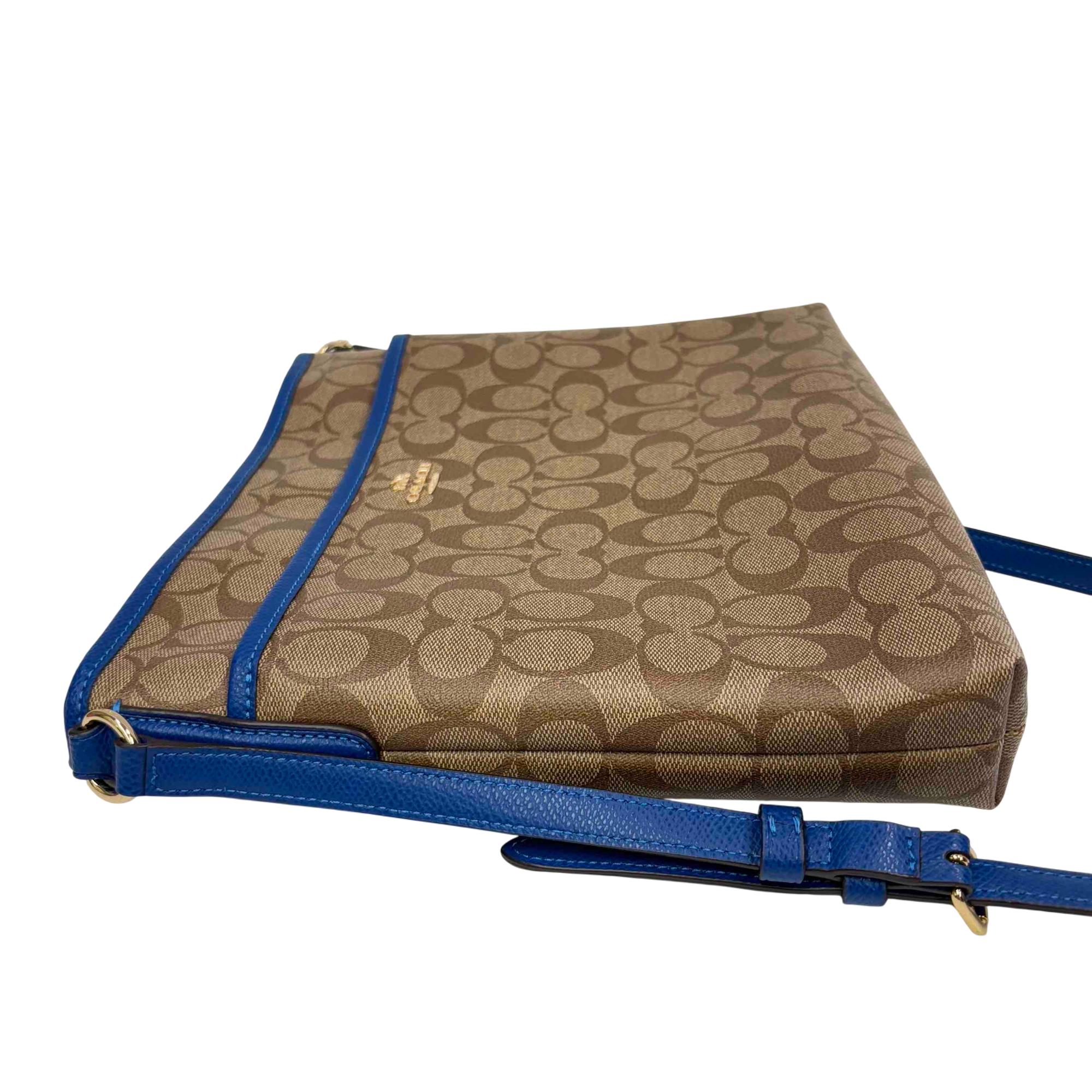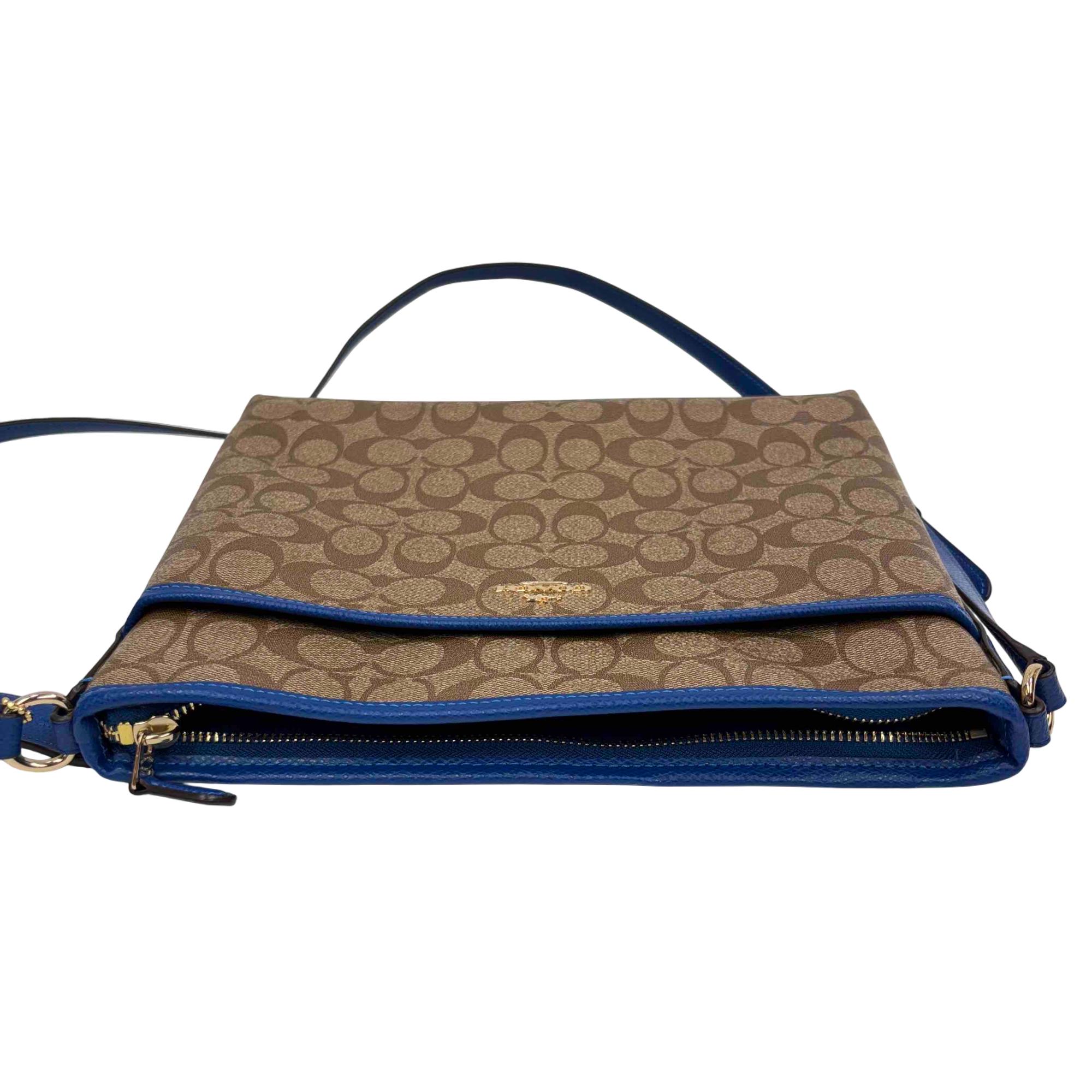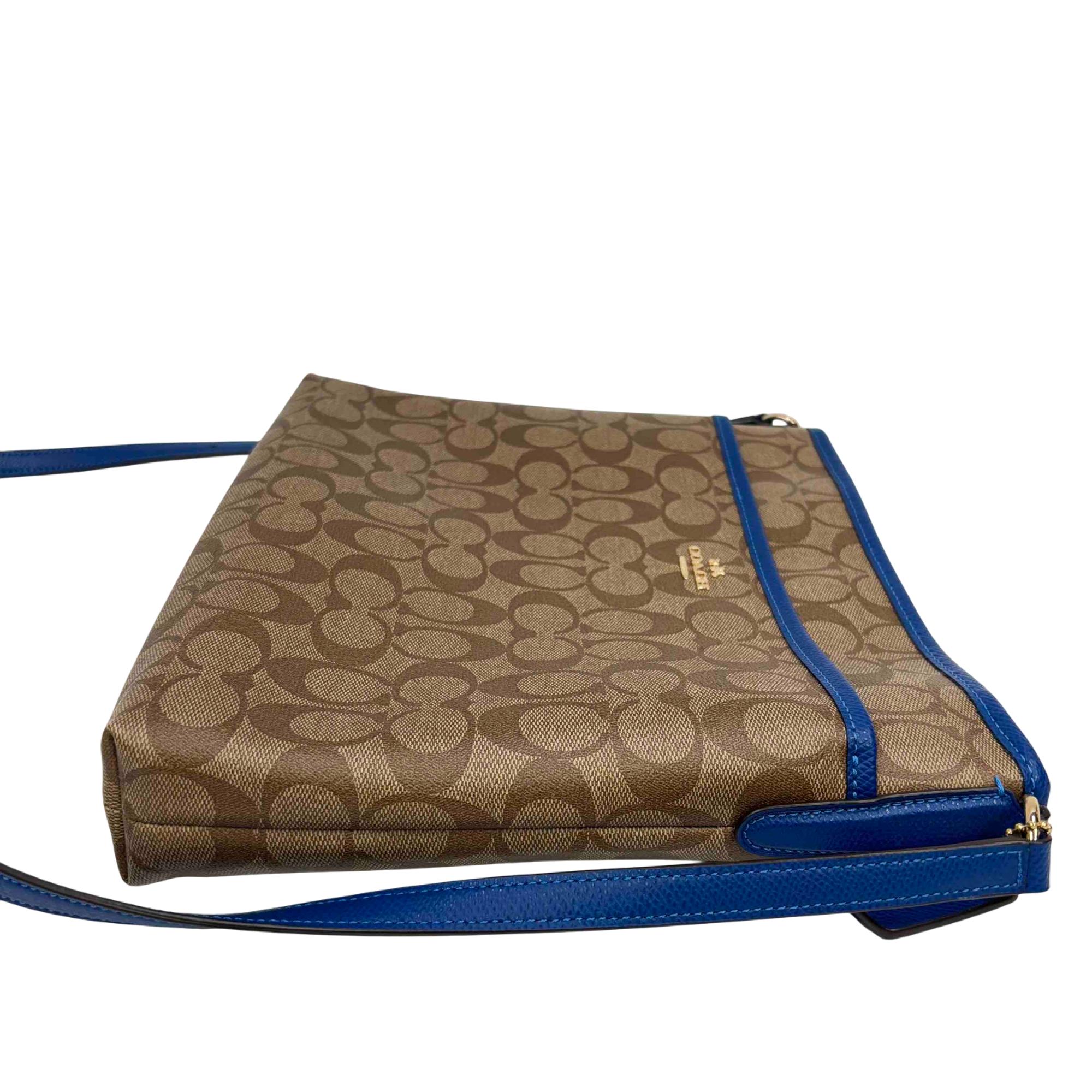 Elevate your style with the Coach F34938 Signature Coated Canvas Crossbody Bag, featuring an exquisite blend of brown and blue hues complemented by a chic gold logo accent. This versatile handbag offers both luxury and functionality, perfect for keeping your essentials organized while making a fashion statement.