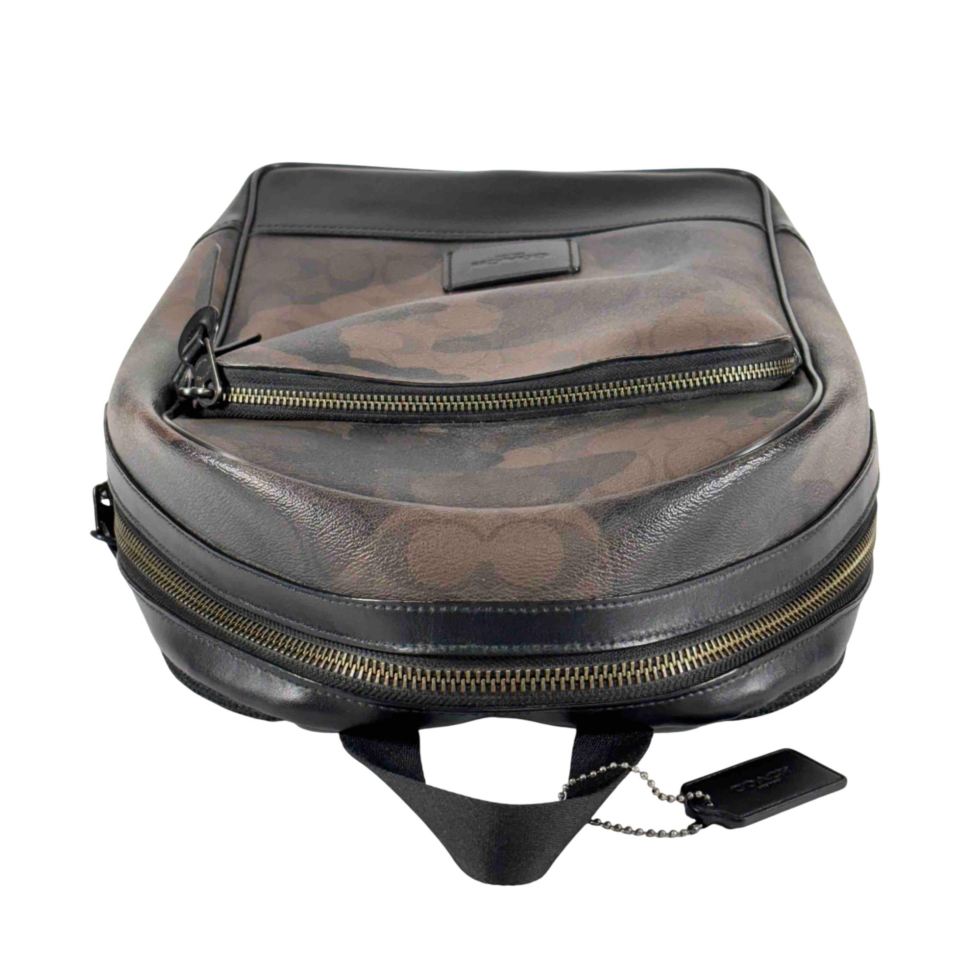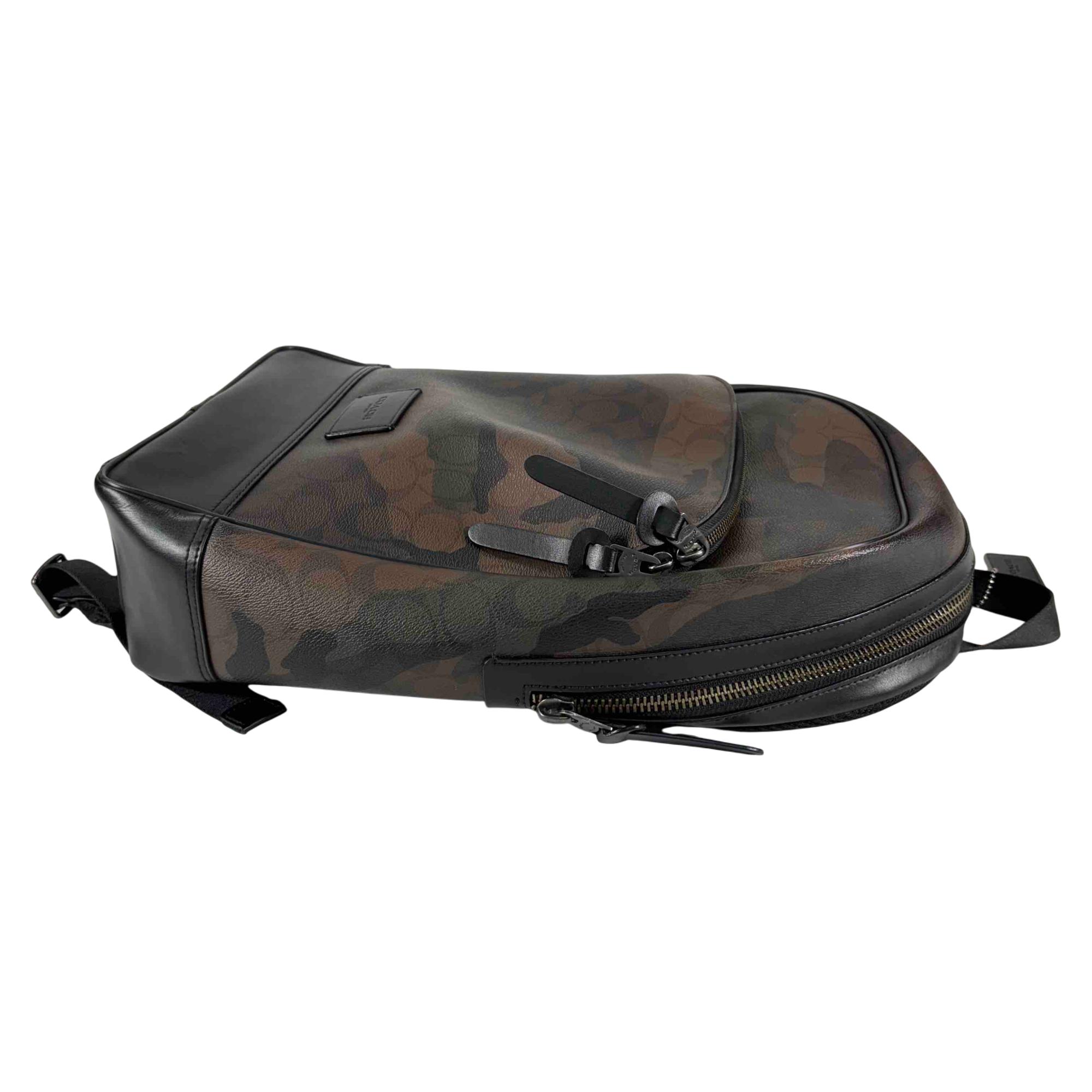 The Coach F37613 Signature Camo Print Slim Backpack features a sleek, unisex design with the brand’s signature pattern and bold camo detailing. Ideal for everyday use, it offers a stylish, lightweight profile with practical storage for essentials.